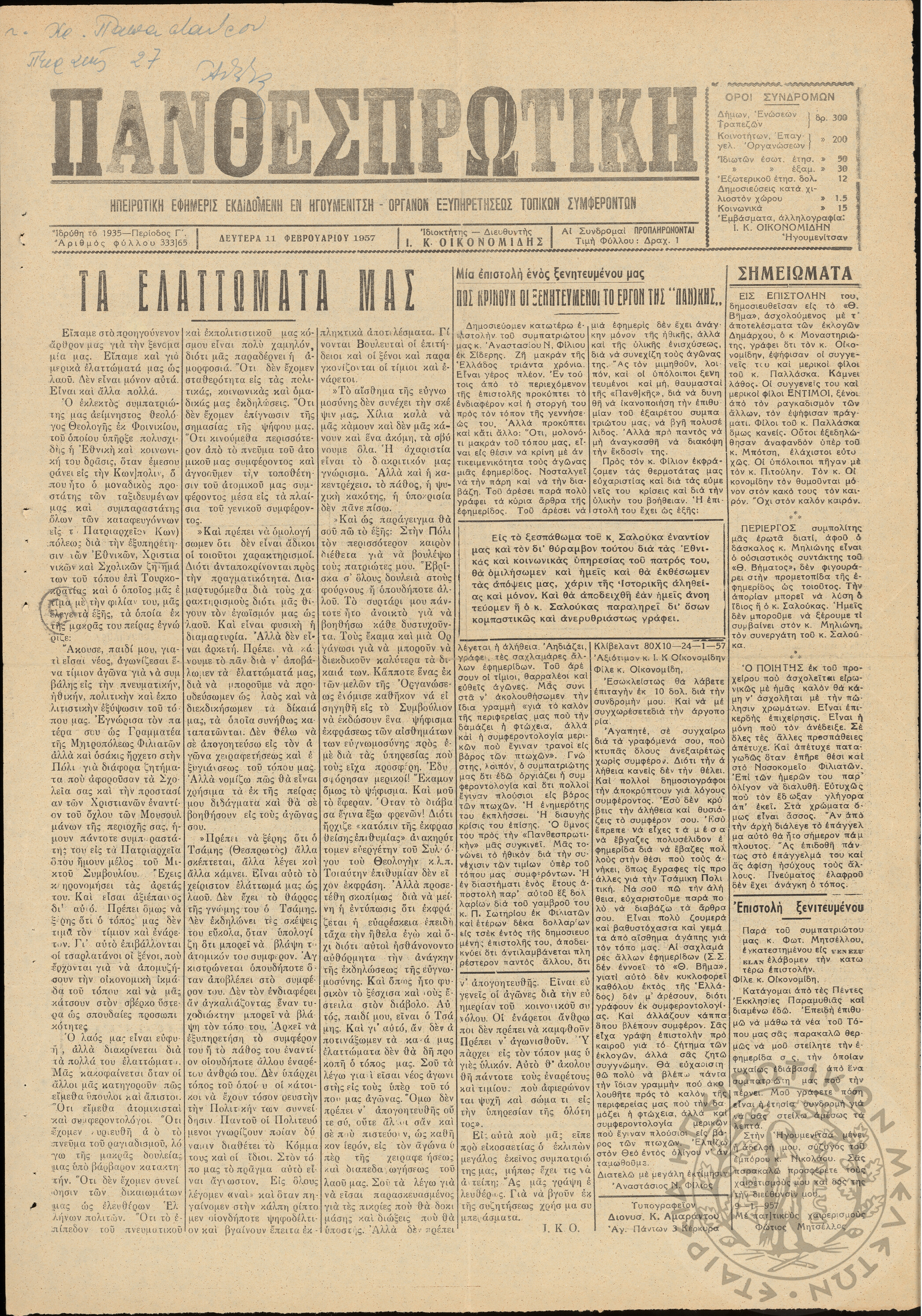 Έτος 24, τόμ. 9, τεύχ. 46... Περίοδος Γ΄, φ. 323/54... Περίοδος Γ΄, φ. 323/55... Έτος 24, τόμ. 9, τεύχ. 47... Περίοδος Γ΄, φ. 323/55, 3 Δεκε... Έτος 24, τόμ. 9, τεύχ. 48... Έτος 24, τόμ. 9, τεύχ. 49... Έτος 24, τόμ. 9, τεύχ. 50... Έτος 24, τόμ. 9, τεύχ. 51-52... Περίοδος Γ΄, φ. 325/57... Περίοδος Γ΄, φ. 326/58... Περίοδος Γ΄, φ. 327/59... Περίοδος Γ΄, φ. 328/60... Περίοδος Γ΄, φ. 329/61... Περίοδος Γ΄, φ. 331/63... Περίοδος Γ΄, φ. 332/64... Περίοδος Γ΄, φ. 333/65... Περίοδος Γ΄, φ. 334/66... Περίοδος Γ΄, φ. 336/68... Περίοδος Γ΄, φ. 337/69... Περίοδος Γ΄, φ. 338/70... Περίοδος Γ΄, φ. 339/71... Περίοδος Γ΄, φ. 340/72...