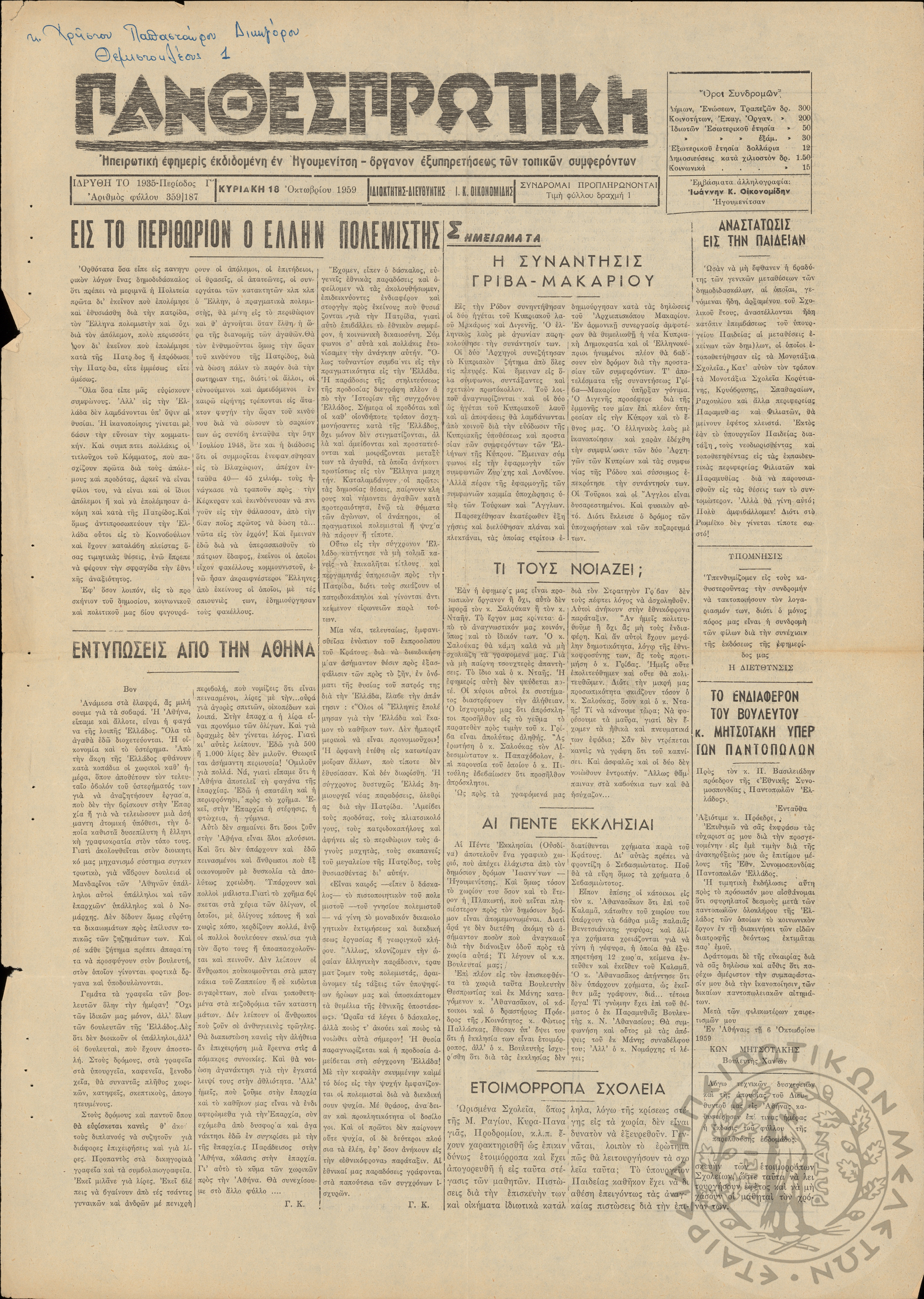 - Ψηφιακό Αποθετήριο Ανάδειξης και προβολής των ιστορικών τεκμηρίων της Εταιρείας Ηπειρωτικών Μελετών