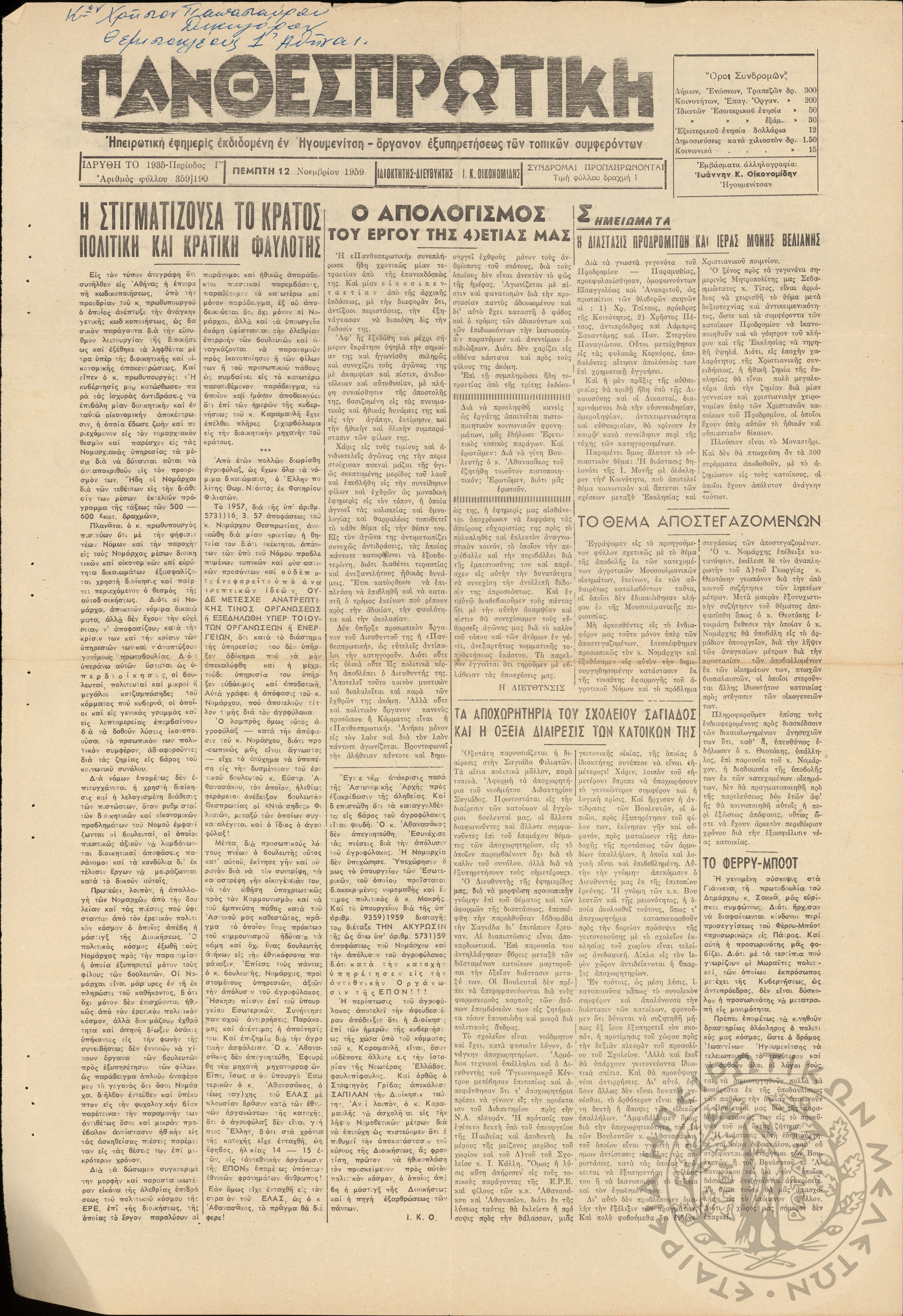 Έτος 25, τόμ. 10, τεύχ. 26... Περίοδος Γ΄, φ. 359/183... Έτος 25, τόμ. 10, τεύχ. 27... Περίοδος Γ΄, φ. 359/184... Έτος 25, τόμ. 10, τεύχ. 28... Περίοδος Γ΄, φ. 359/185... Περίοδος Γ΄, φ. 359/186... Περίοδος Γ΄, φ. 359/187... Έτος 25, τόμ. 10, τεύχ. 29... Έτος 25, τόμ. 10, τεύχ. 30... Περίοδος Γ΄, φ. 359/188... Έτος 25, τόμ. 10, τεύχ. 31... Περίοδος Γ΄, φ. 359/190... Περίοδος Γ΄, φ. 359/191... Περίοδος Γ΄, φ. 359/192... Έτος 25, τόμ. 10, τεύχ. 32... Έτος 25, τόμ. 10, τεύχ. 33... Περίοδος Δ΄, φ. 359/194... Περίοδος Δ΄, φ. 359/195... Περίοδος Δ΄, φ. 359/196... Περίοδος Δ΄, φ. 359/197... Περίοδος Δ΄, φ. 359/198... Περίοδος Δ΄, φ. 359/199... Έτος 25, τόμ. 10, τεύχ. 34... Περίοδος Δ΄, φ. 359/200... Περίοδος Δ΄, φ. 359/204...