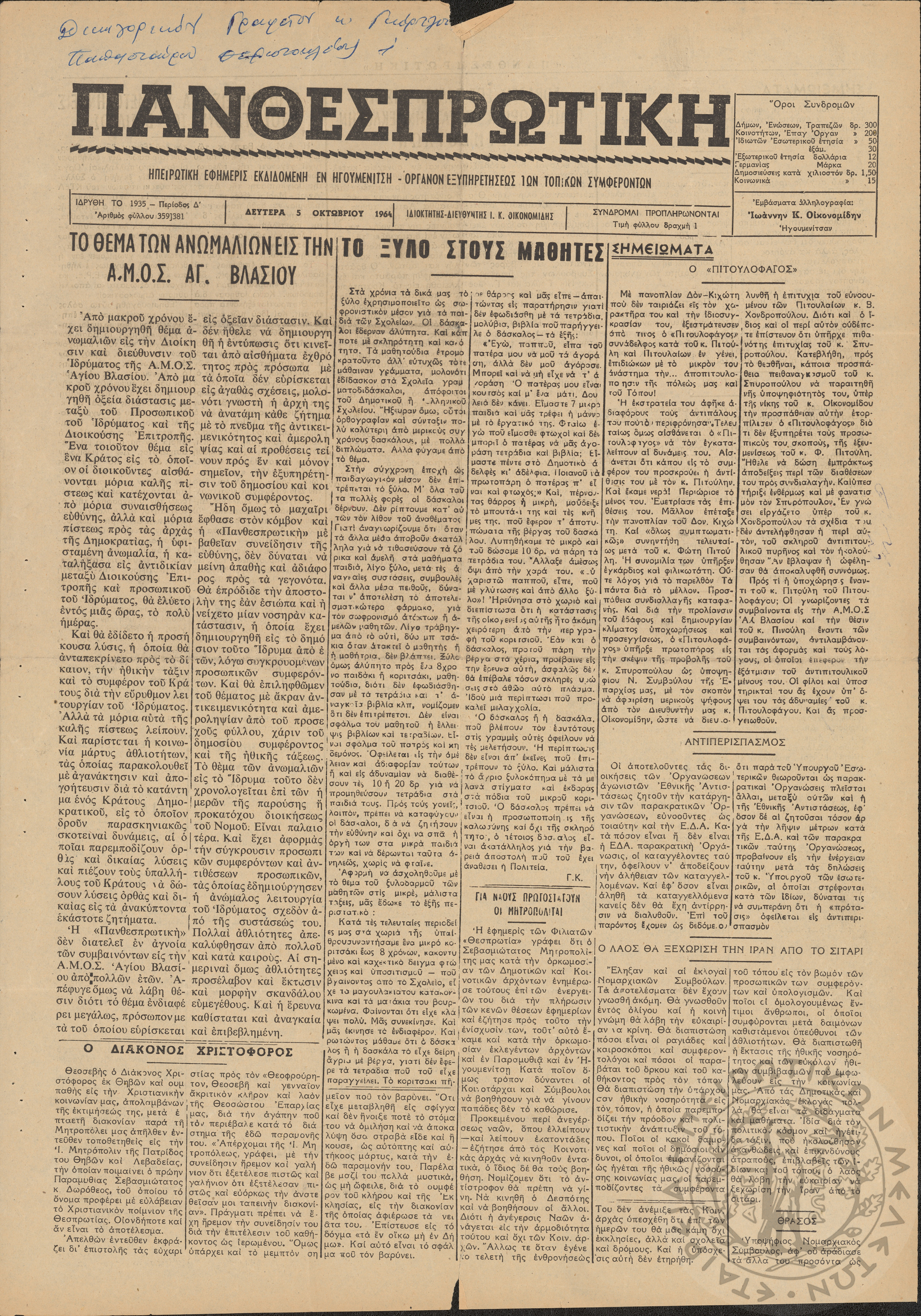 Έτος 26, τόμ. 11, τεύχ. 51-52... Περίοδος Δ΄, φ. 359/374... Περίοδος Δ΄, φ. 359/377... Περίοδος Δ΄, φ. 359/378... Περίοδος Δ΄, φ. 359/379... Περίοδος Δ΄, φ. 359/380... Περίοδος Δ΄, φ. 359/381... Περίοδος Δ΄, φ. 359/383... Περίοδος Δ΄, φ. 359/384... Περίοδος Δ΄, φ. 359/385... Περίοδος Δ΄, φ. 359/386... Περίοδος Δ΄, φ. 359/387... Περίοδος Δ΄, φ. 359/388... Έτος ΙA', φ. 25 Δεκεμβρίου 193... Περίοδος Ε΄, φ. 359/390... Περίοδος Ε΄, φ. 359/391... Περίοδος Ε΄, φ. 359/392... Περίοδος Ε΄, φ. 359/393... Περίοδος Ε΄, φ. 359/395... Περίοδος Ε΄, φ. 359/396... Περίοδος Ε΄, φ. 359/398...