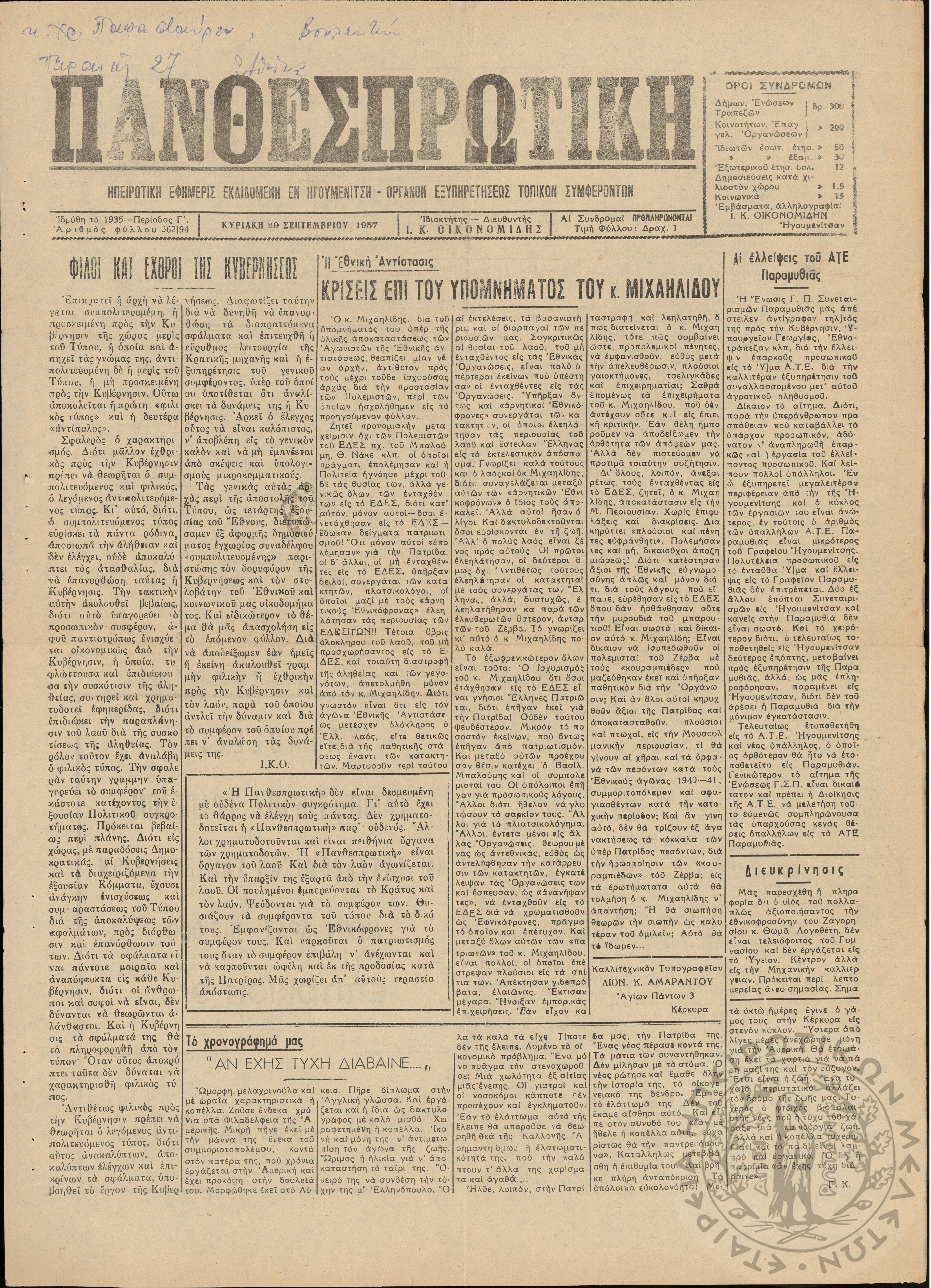 - Ψηφιακό Αποθετήριο Ανάδειξης και προβολής των ιστορικών τεκμηρίων της Εταιρείας Ηπειρωτικών Μελετών