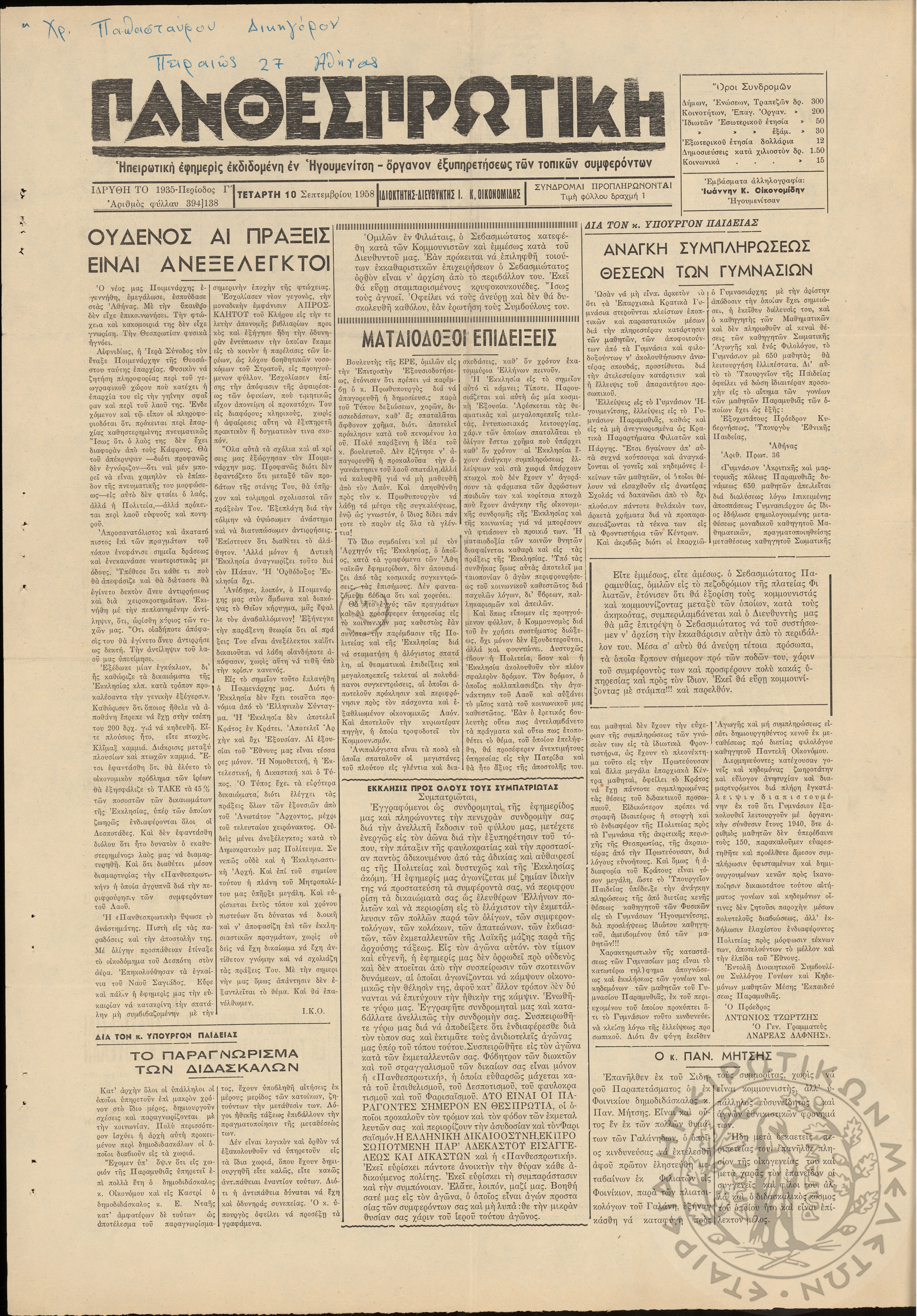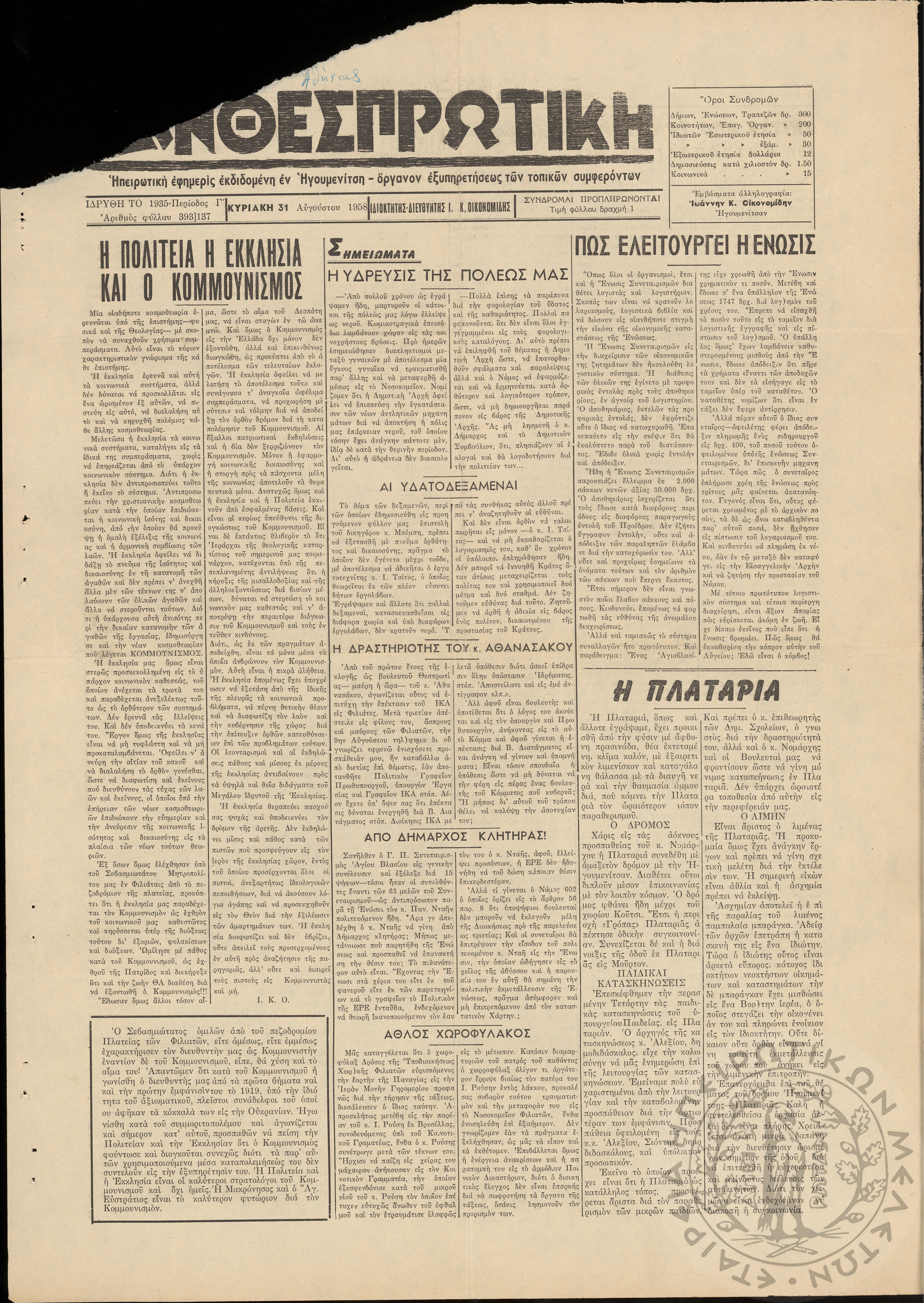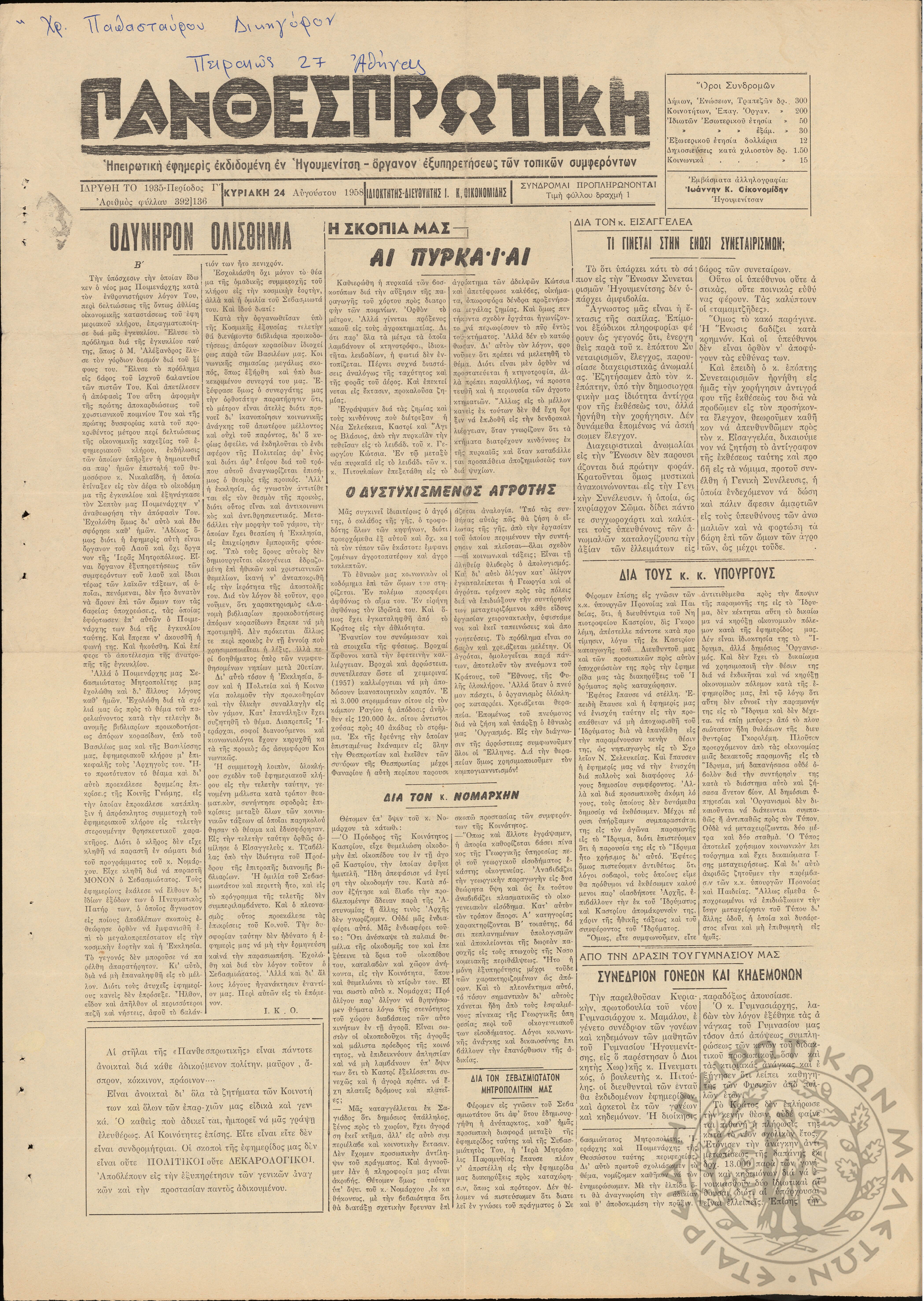- Ψηφιακό Αποθετήριο Ανάδειξης και προβολής των ιστορικών τεκμηρίων της Εταιρείας Ηπειρωτικών Μελετών