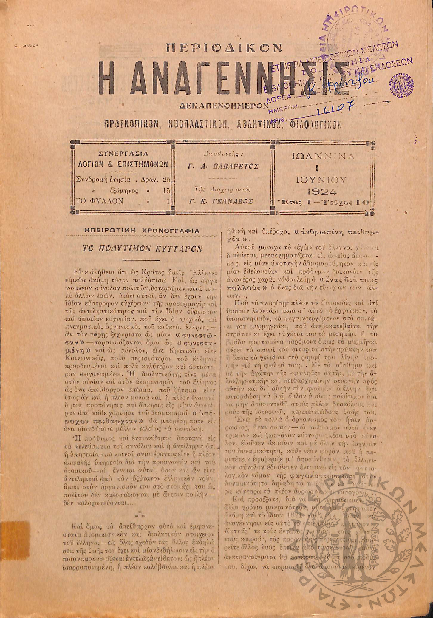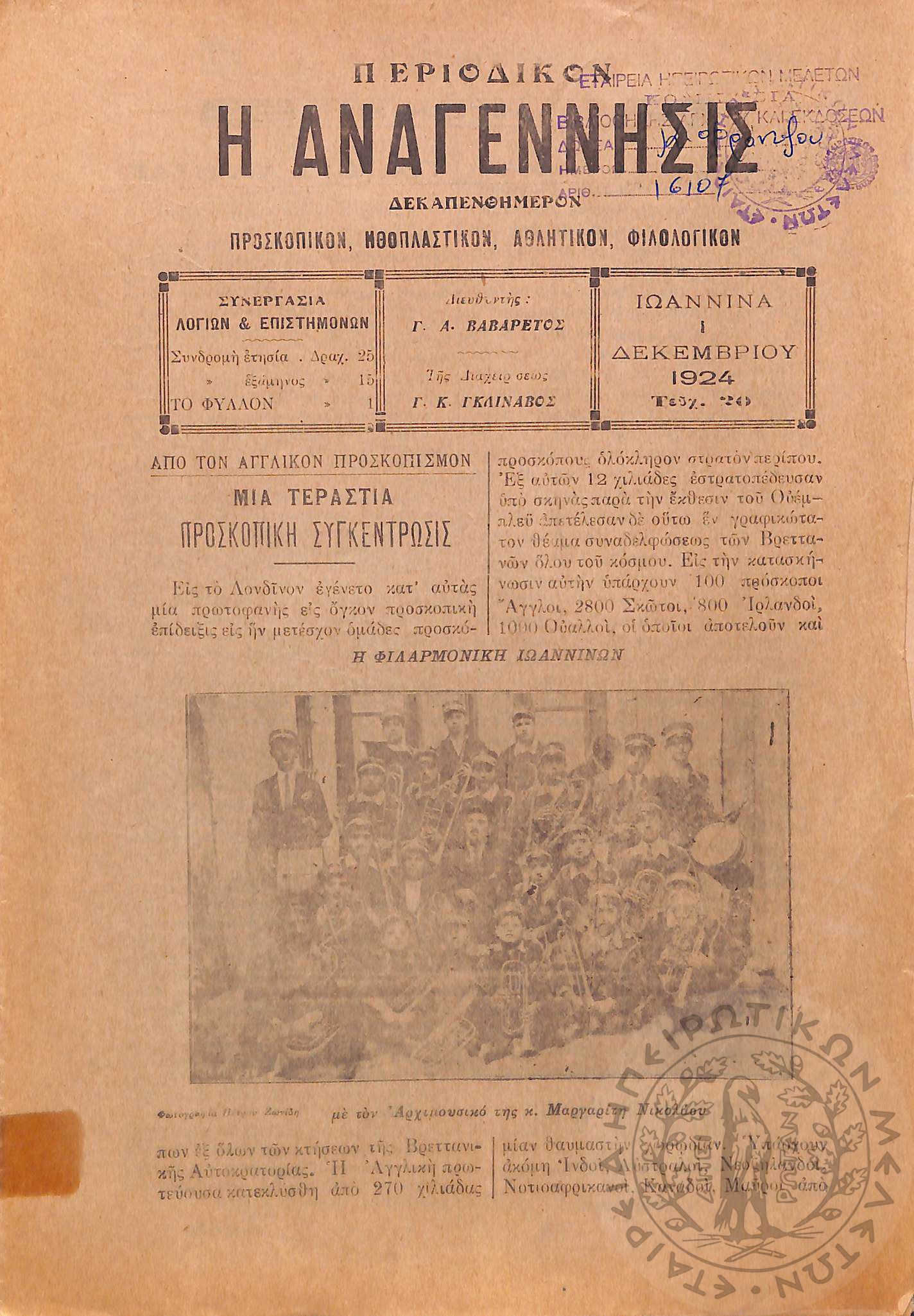 Η Αναγέννησις: δεκαπενθήμερον, προσκοπικόν, ηθοπλαστικόν, αθλητικόν, φιλολογικόν (τεύχ. 16)Έτος 1, τεύχ. 16...