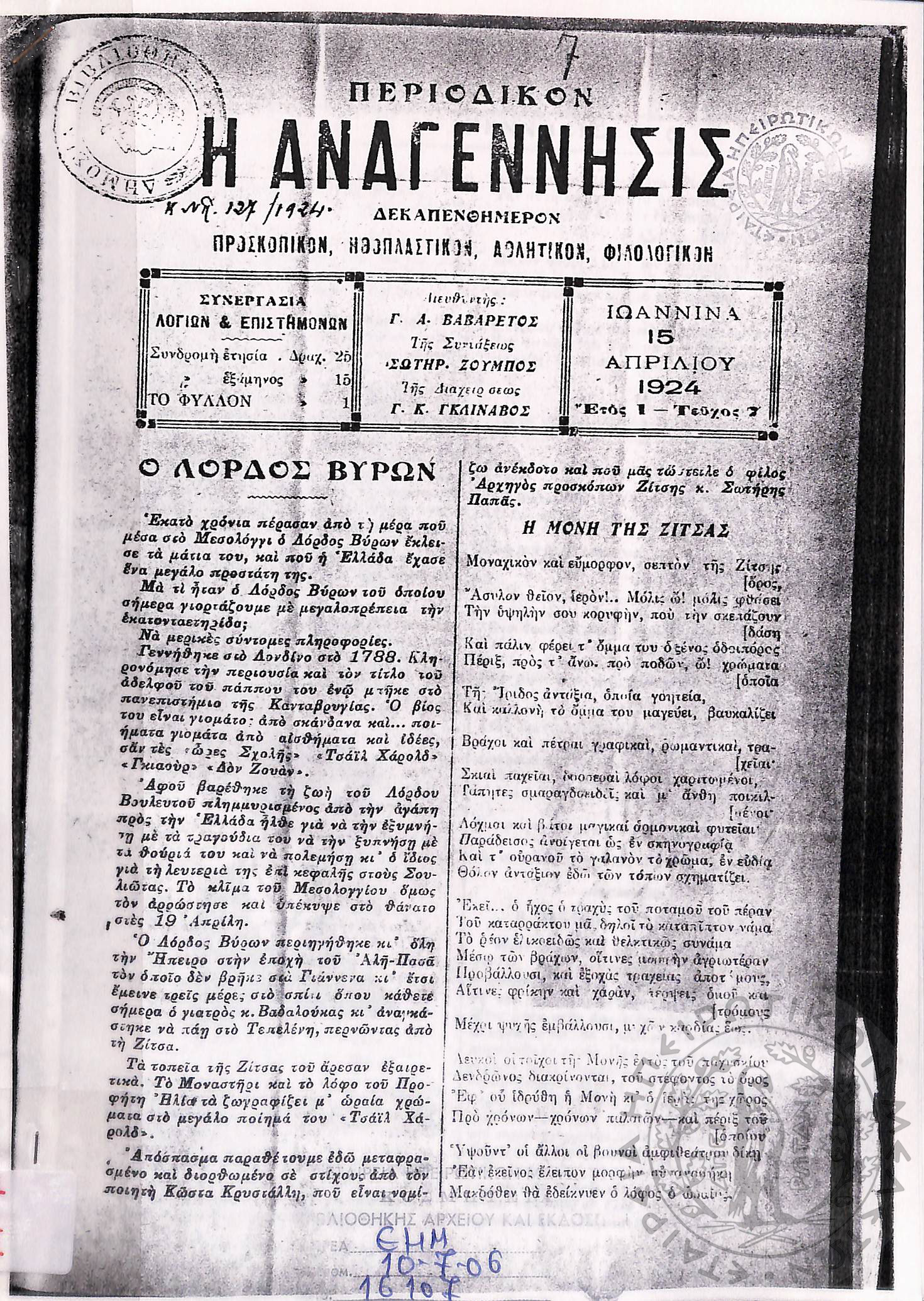Η Αναγέννησις: δεκαπενθήμερον, προσκοπικόν, ηθοπλαστικόν, αθλητικόν, φιλολογικόν (τεύχ. 7)Έτος 1, τεύχ. 7...