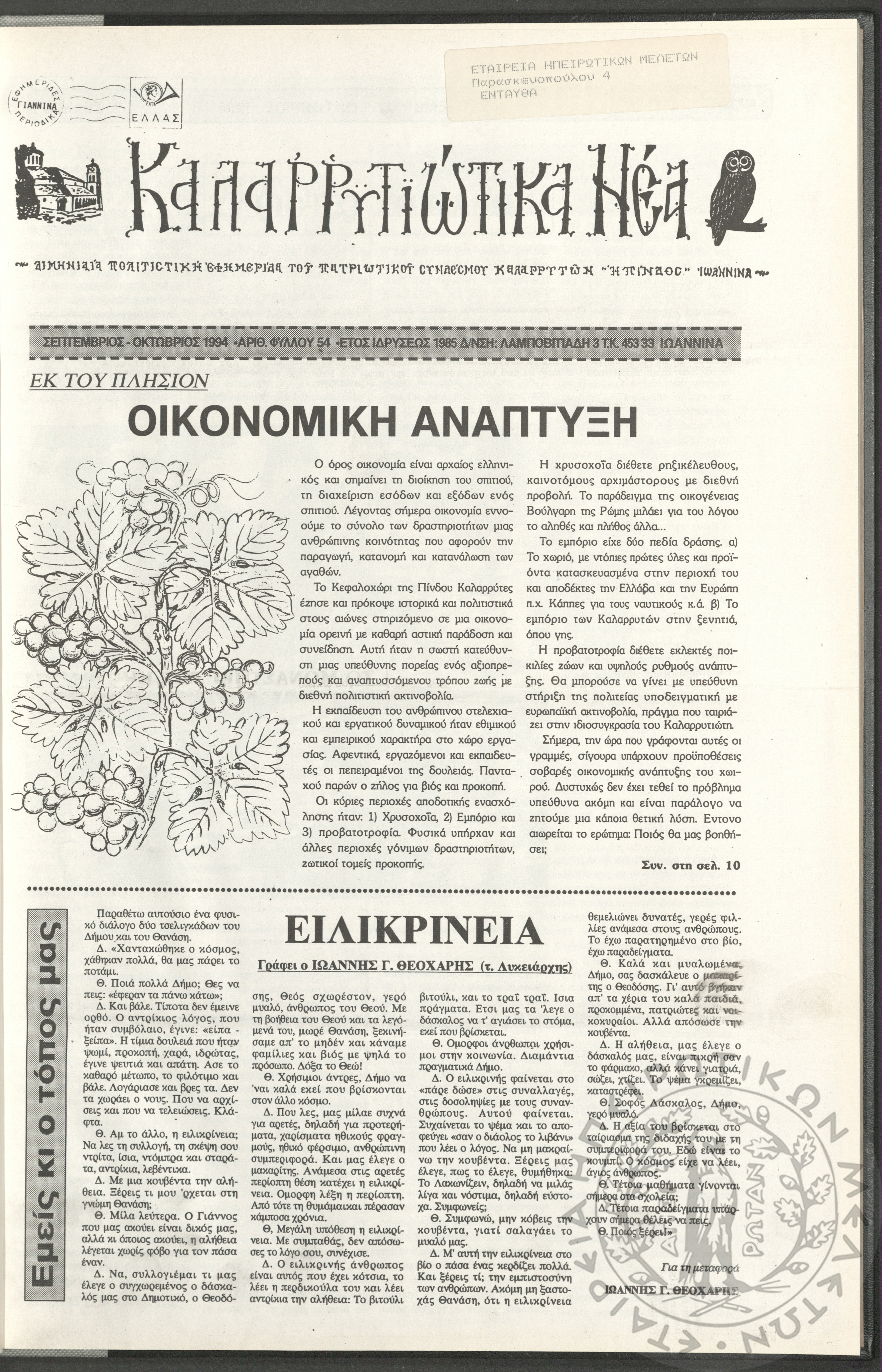 - Ψηφιακό Αποθετήριο Ανάδειξης και προβολής των ιστορικών τεκμηρίων της Εταιρείας Ηπειρωτικών Μελετών