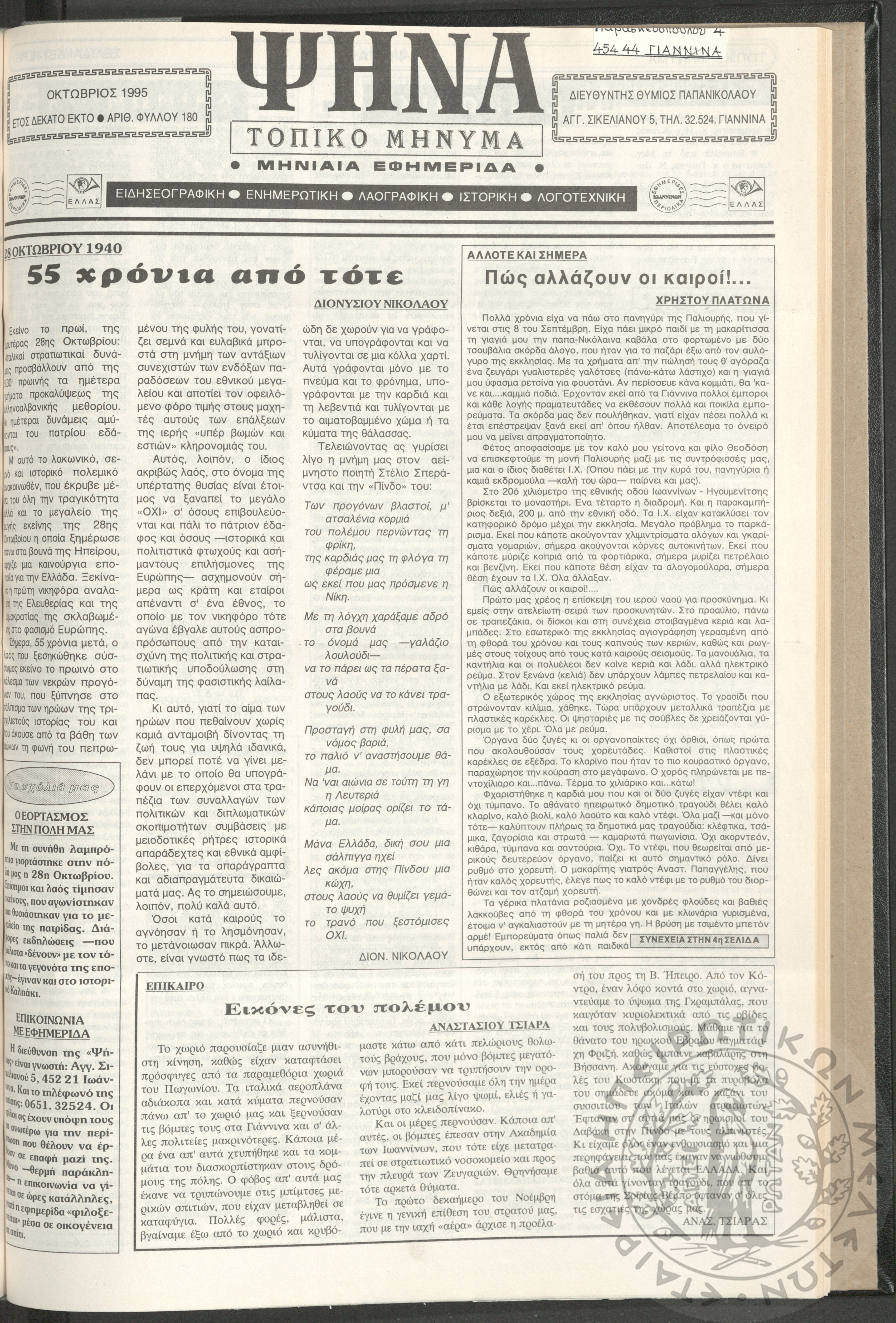 Ψήνα, τοπικό μήνυμα: μηνιαία εφημερίδα, 1995, φ. 180