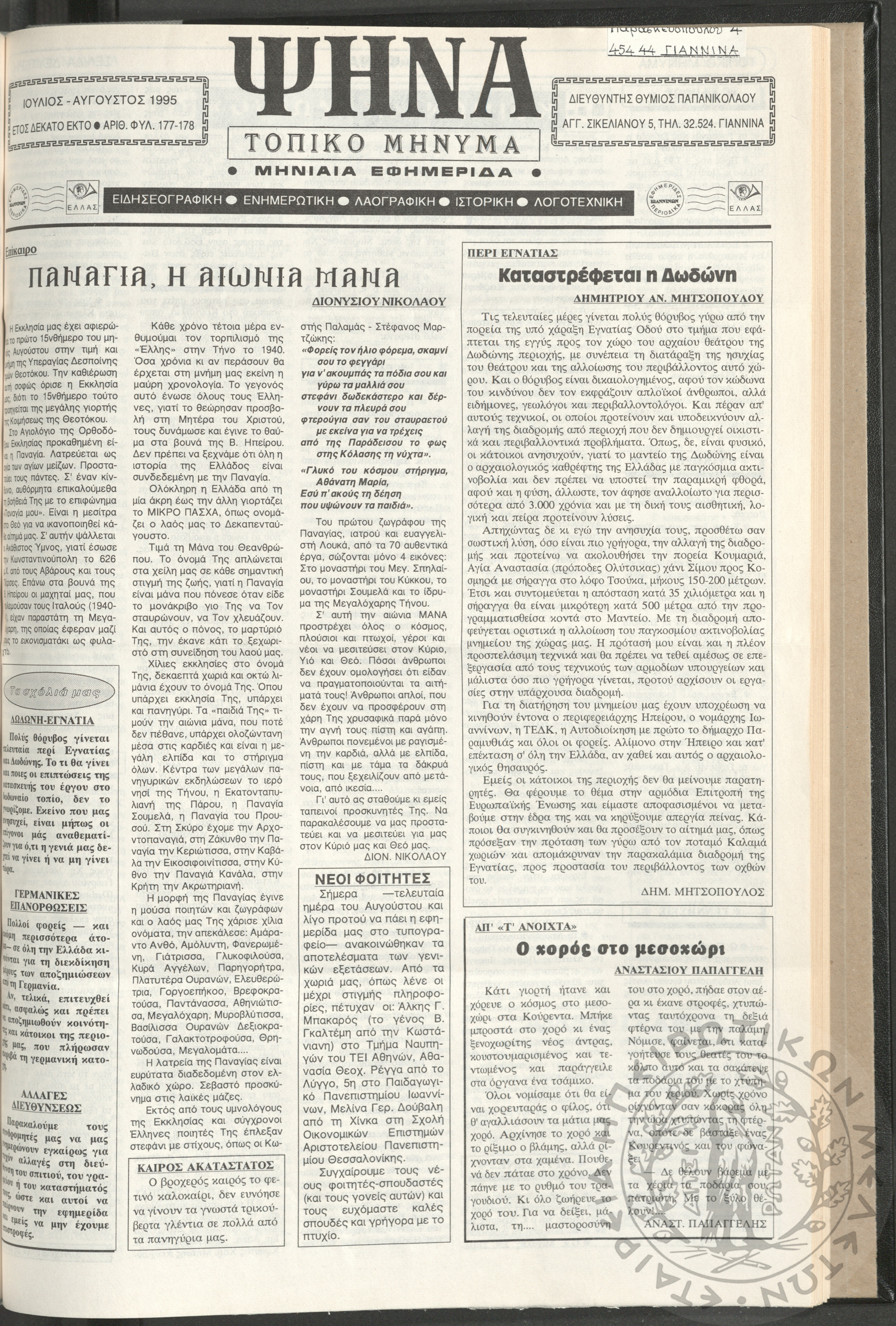 Ψήνα, τοπικό μήνυμα: μηνιαία εφημερίδα, 1995, φ. 177-178