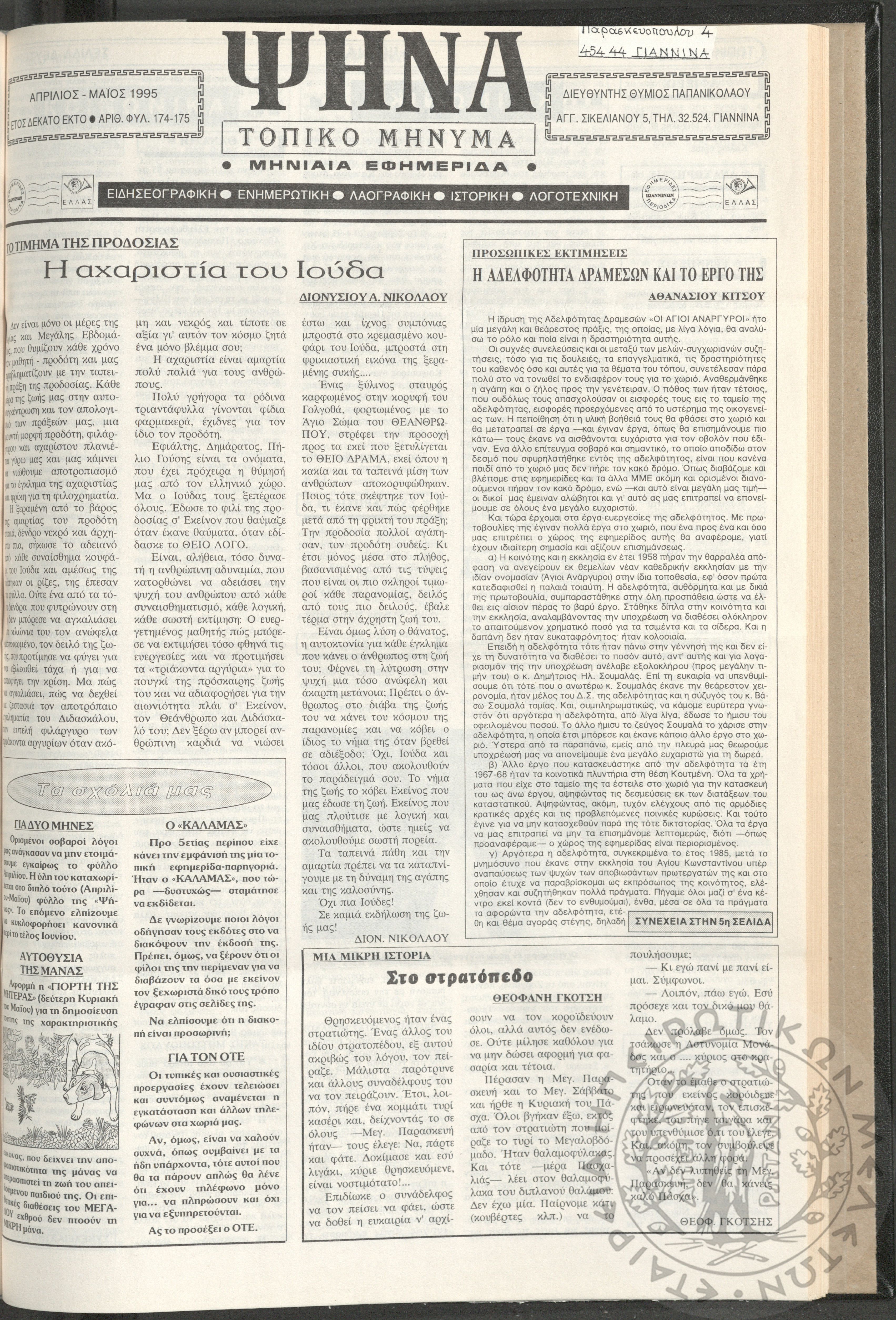 Ψήνα, τοπικό μήνυμα: μηνιαία εφημερίδα, 1995, φ. 174-175