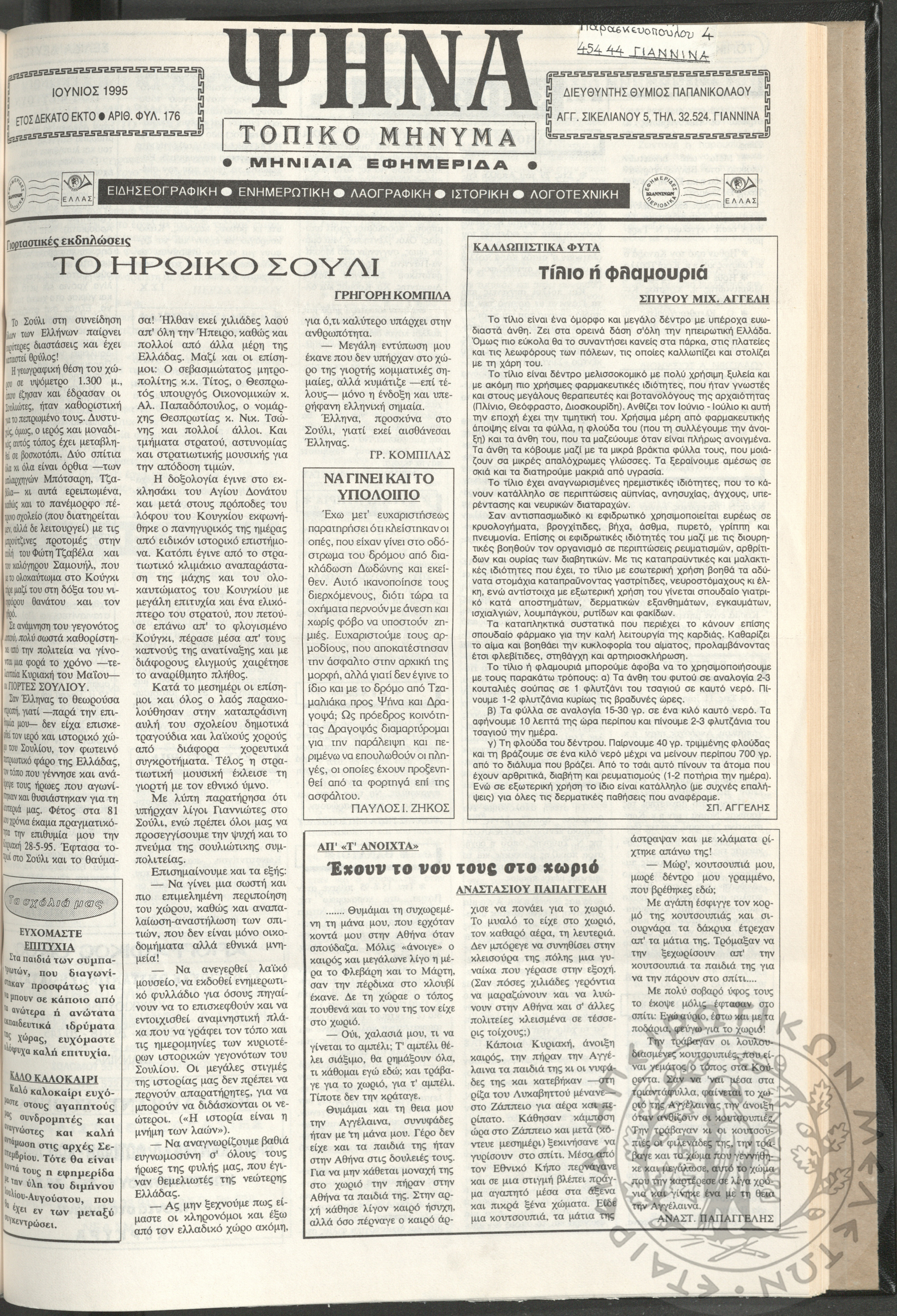 Ψήνα, τοπικό μήνυμα: μηνιαία εφημερίδα, 1995, φ. 176