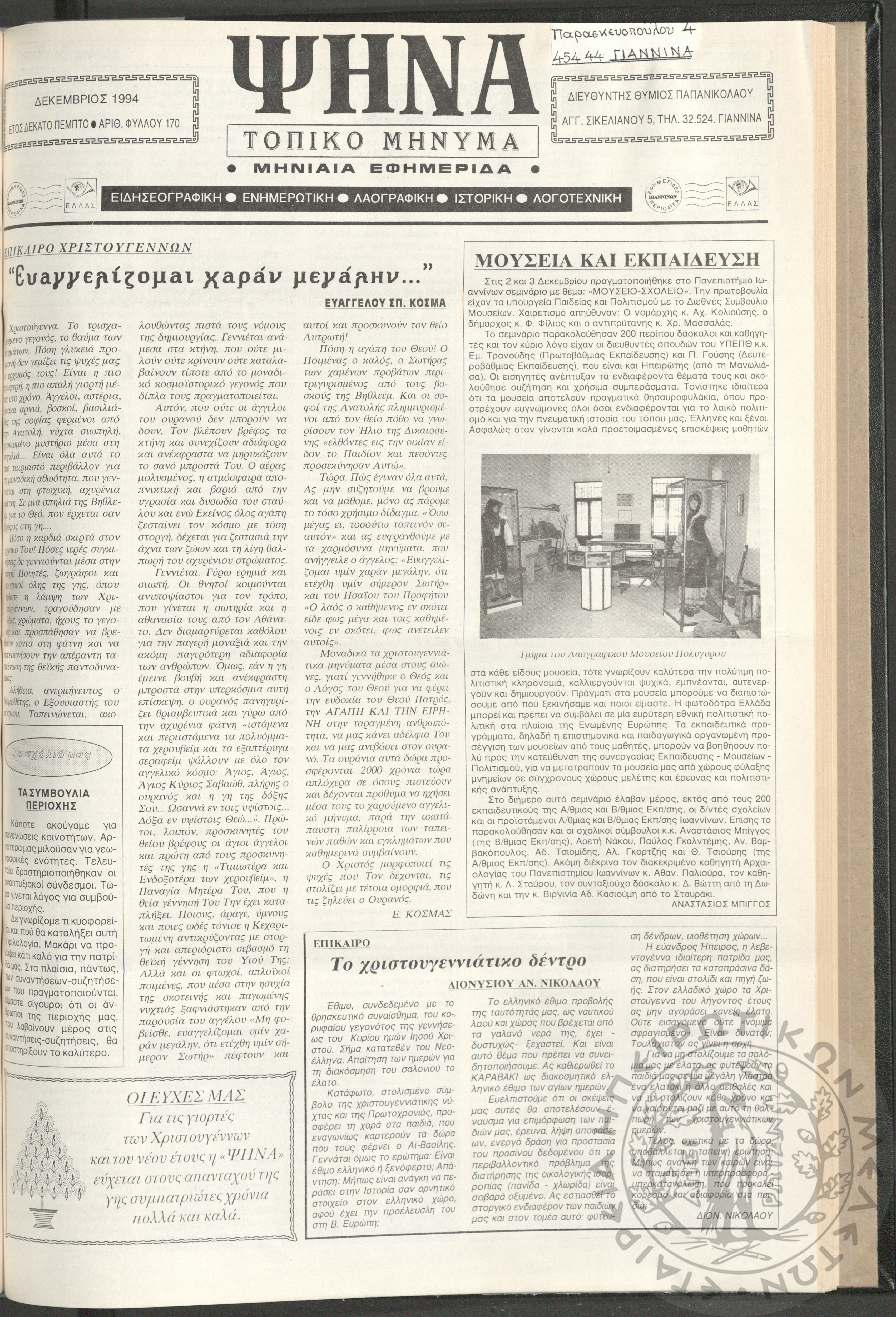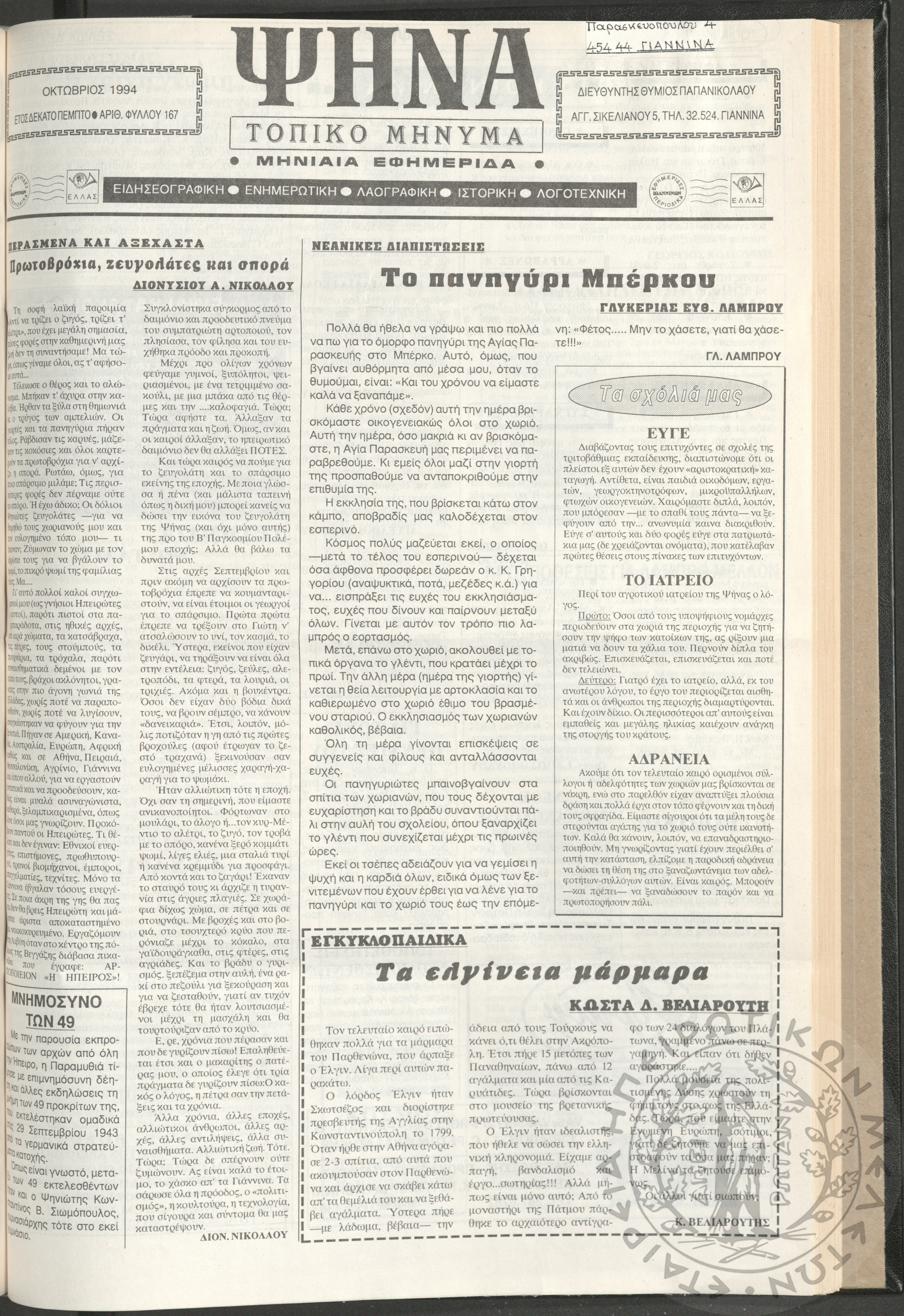 Ψήνα, τοπικό μήνυμα: μηνιαία εφημερίδα, 1994, φ. 167