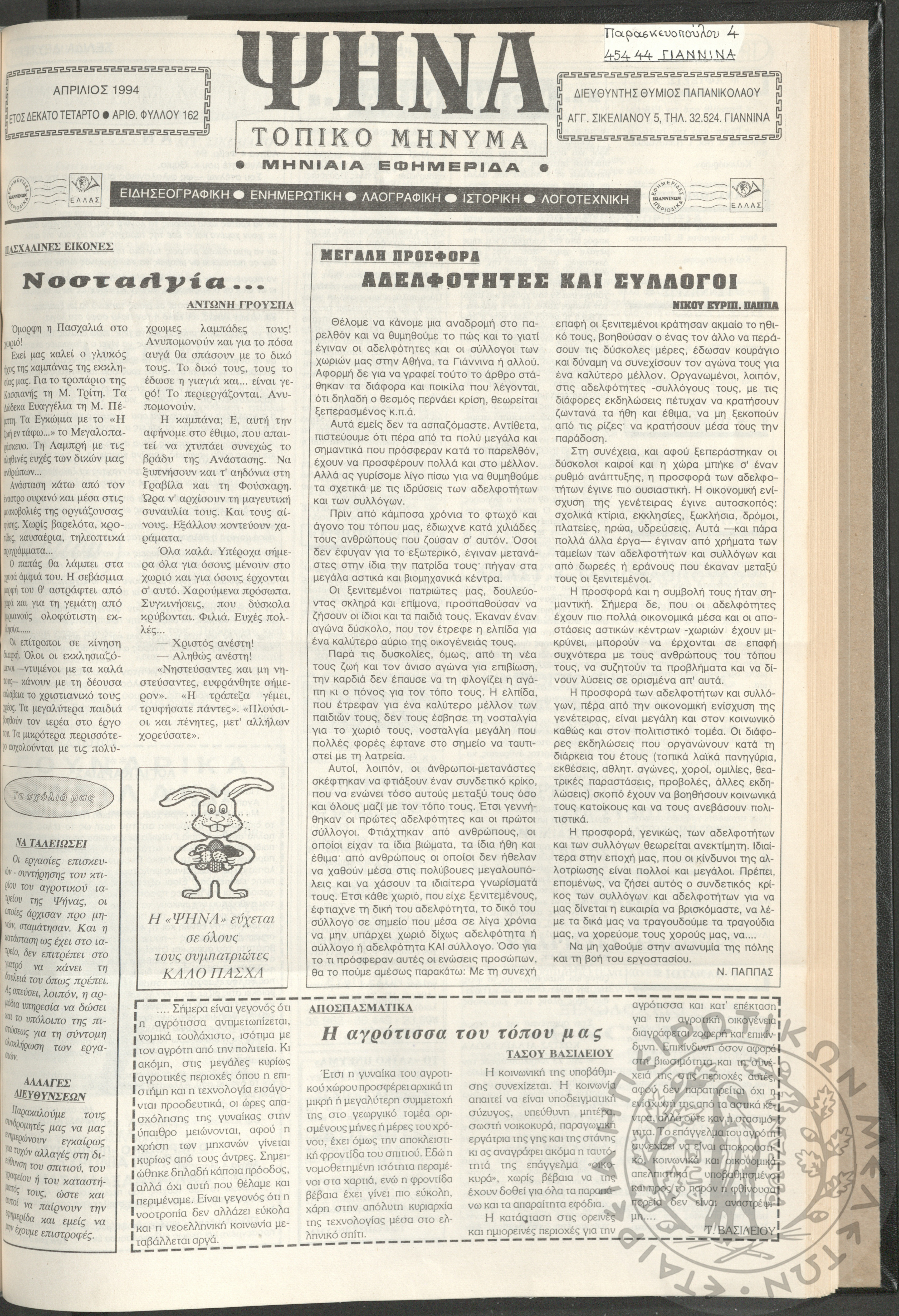 Ψήνα, τοπικό μήνυμα: μηνιαία εφημερίδα, 1994, φ. 162