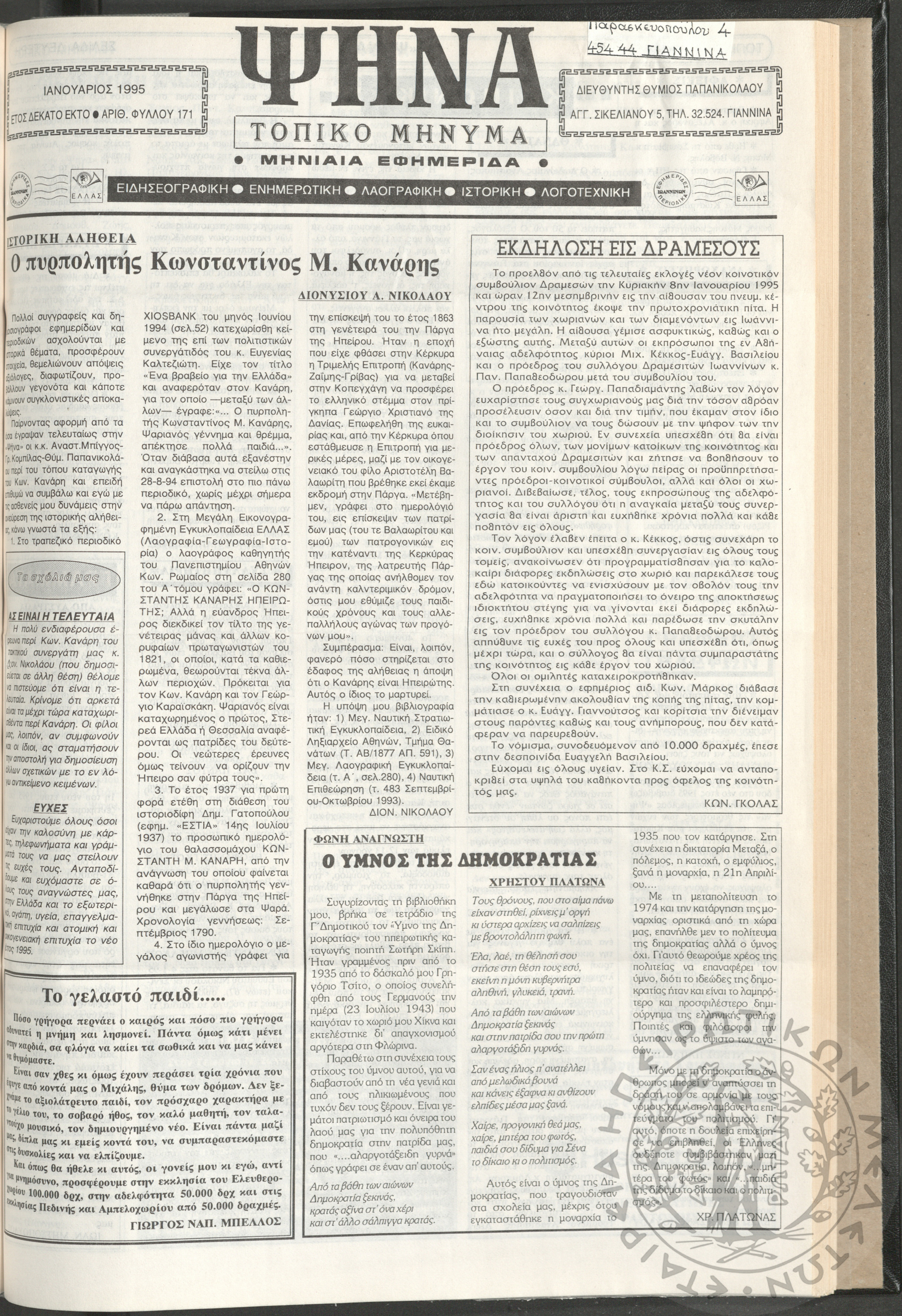 Ψήνα, τοπικό μήνυμα: μηνιαία εφημερίδα, 1995, φ. 171