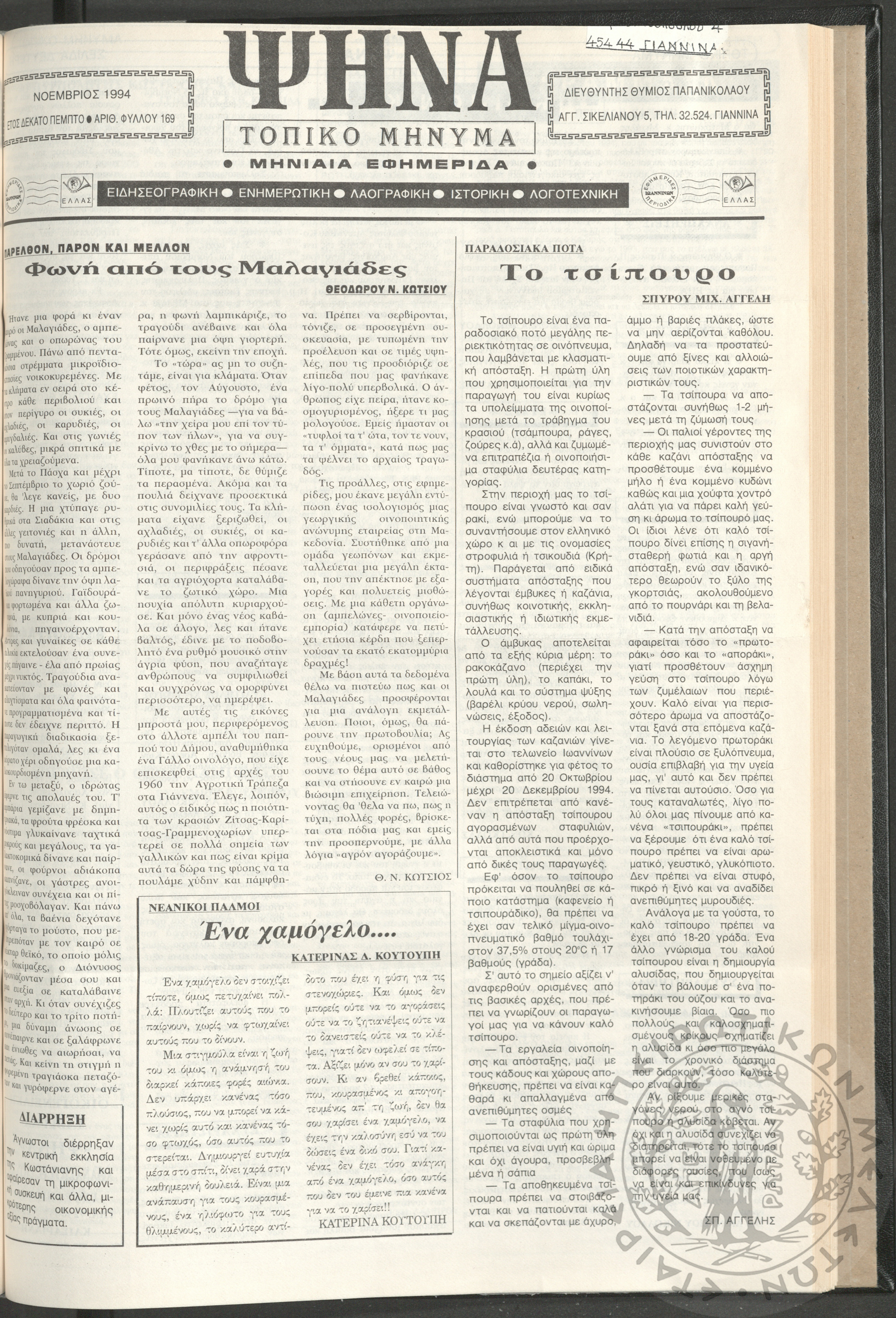 Ψήνα, τοπικό μήνυμα: μηνιαία εφημερίδα, 1994, φ. 169