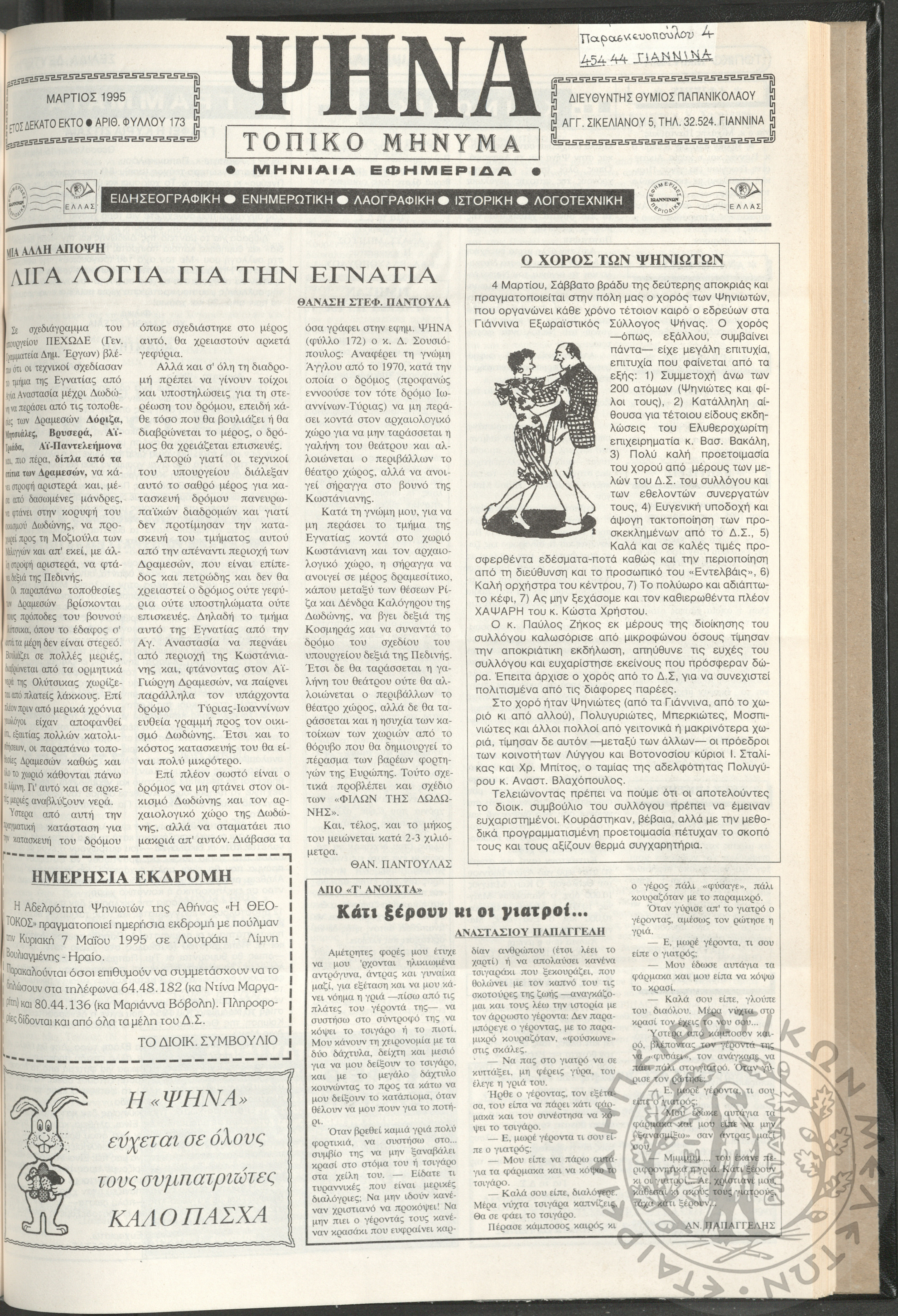 Ψήνα, τοπικό μήνυμα: μηνιαία εφημερίδα, 1995, φ. 173