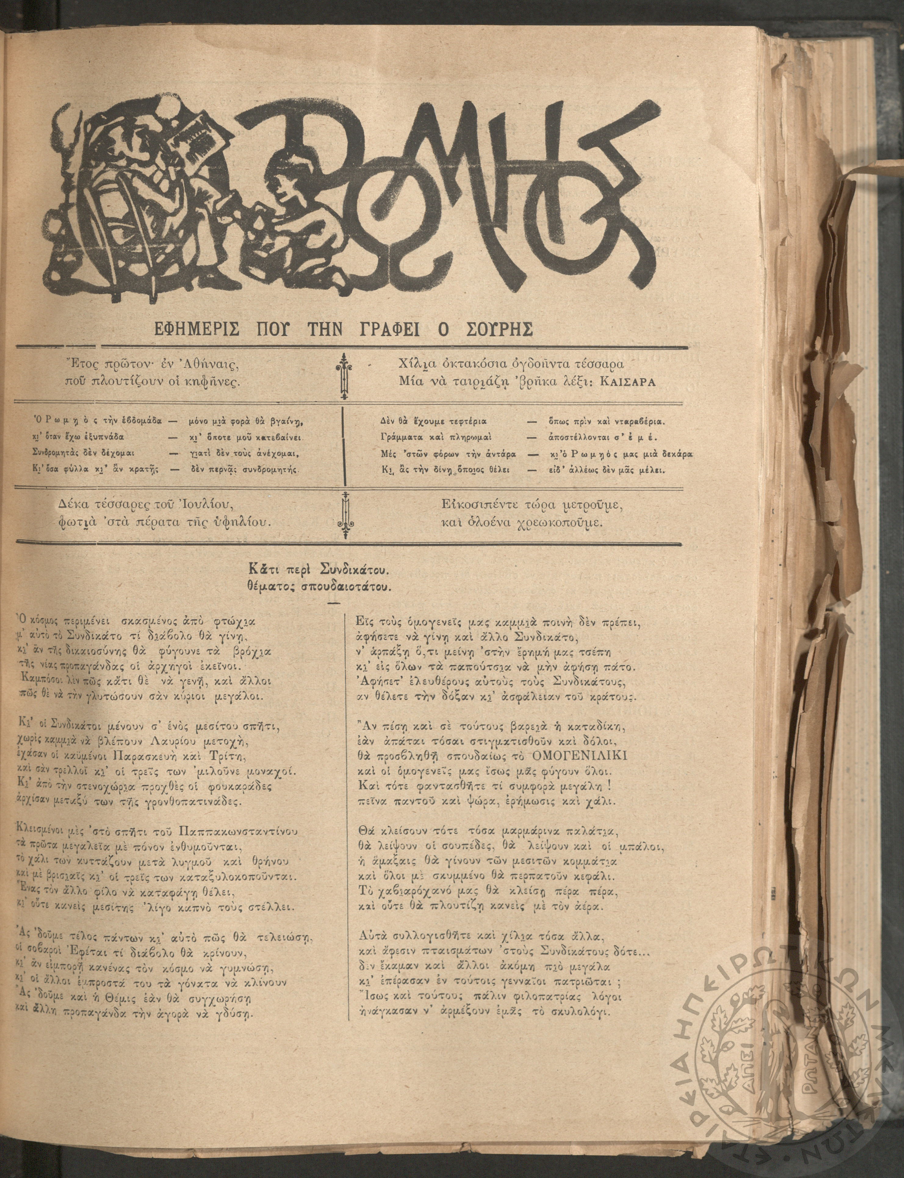 Ο Ρωμηός: Εφημερίς που την γράφει ο Σουρής, 1884, φ. 26
