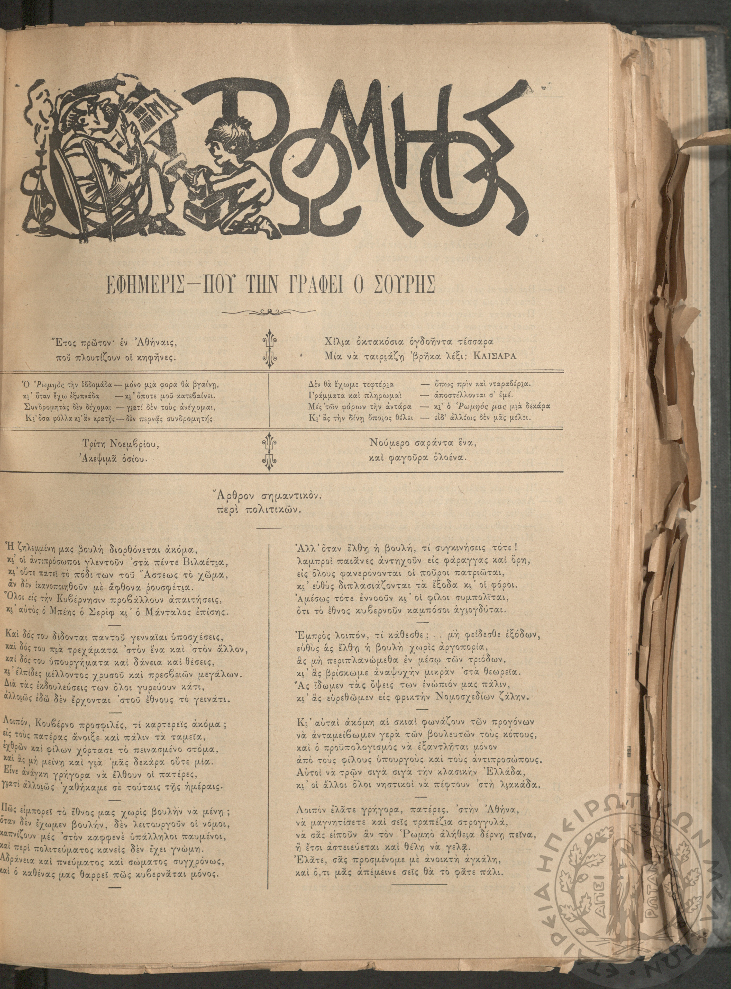 Ο Ρωμηός: Εφημερίς που την γράφει ο Σουρής, 1885, φ. 61