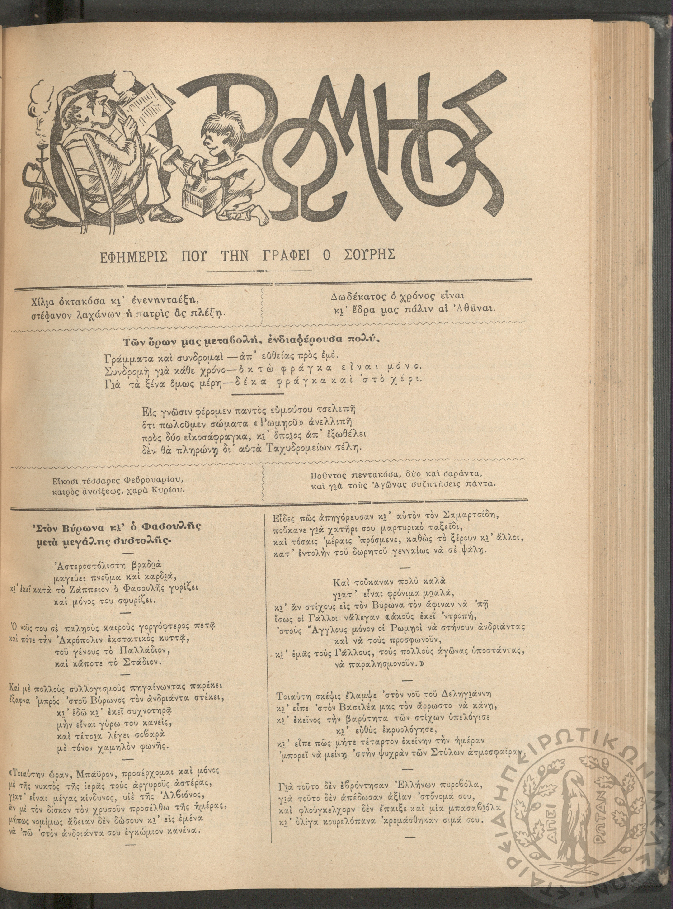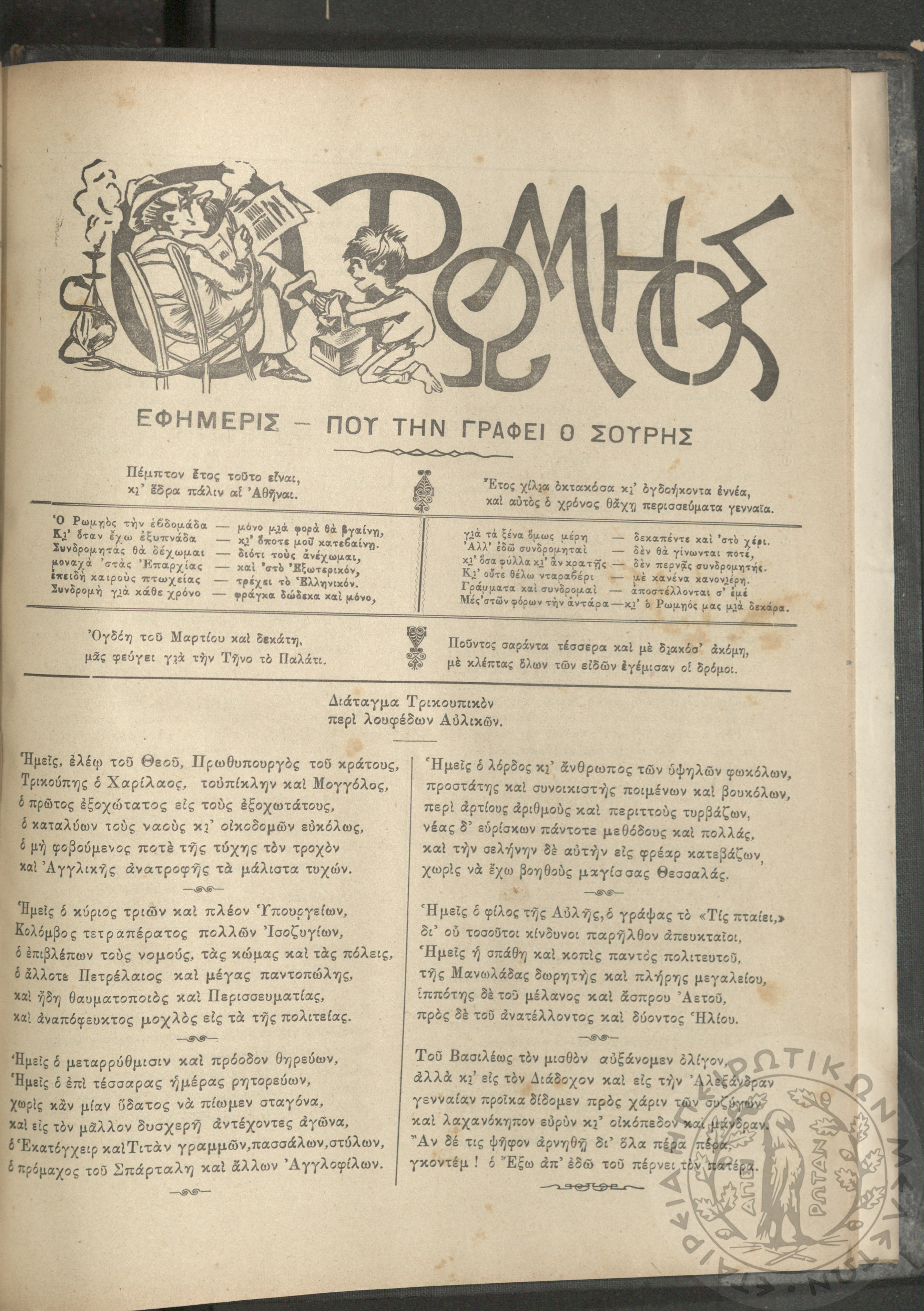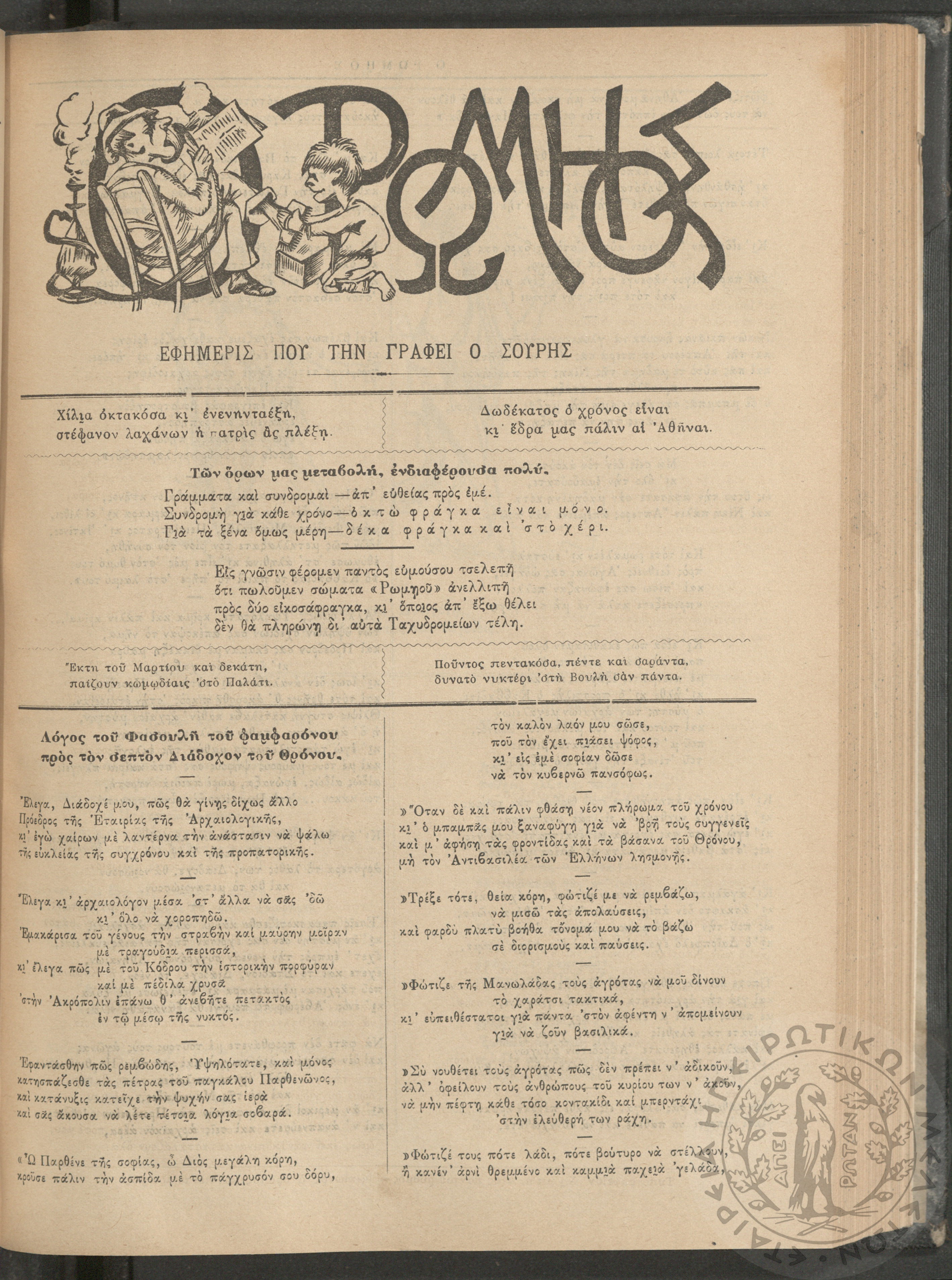 Ο Ρωμηός: Εφημερίς που την γράφει ο Σουρής, 1896, φ. 546