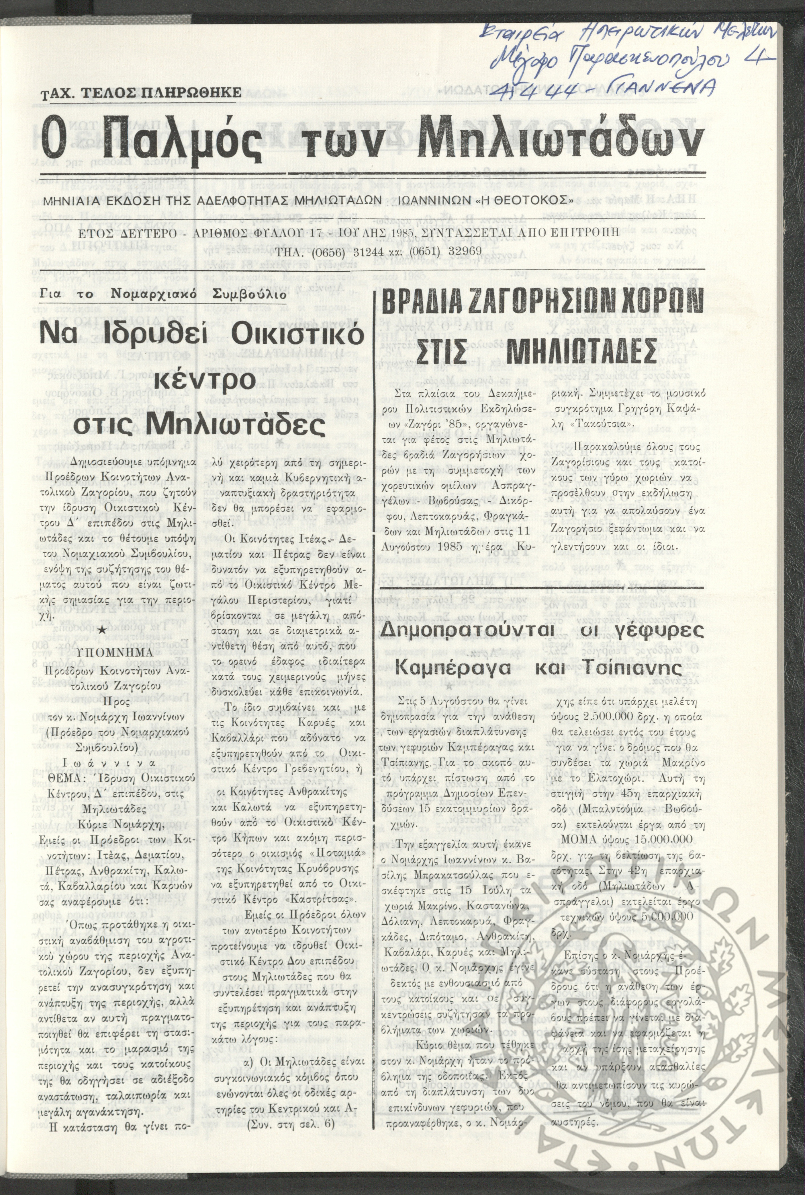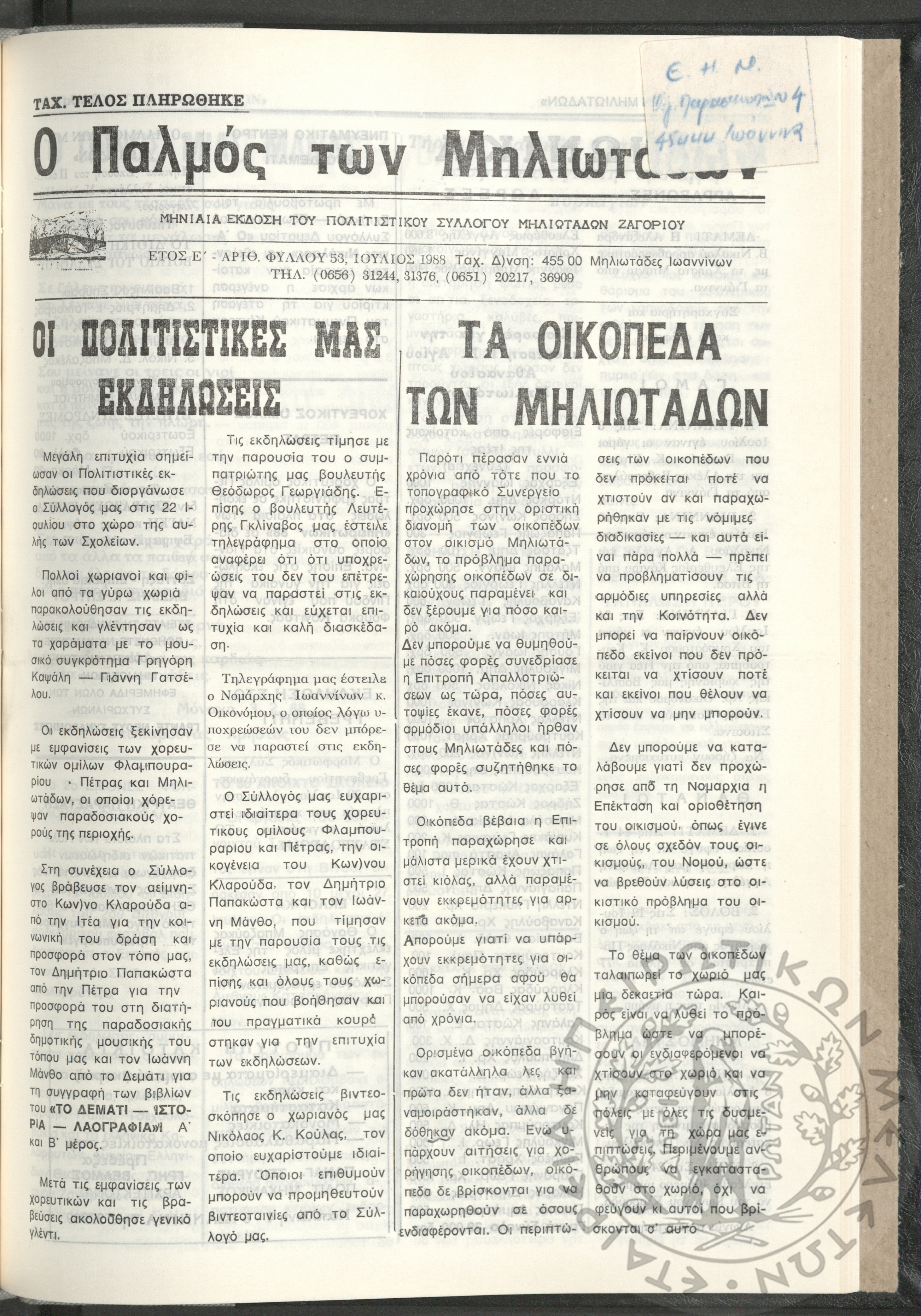 - Ψηφιακό Αποθετήριο Ανάδειξης και προβολής των ιστορικών τεκμηρίων της Εταιρείας Ηπειρωτικών Μελετών