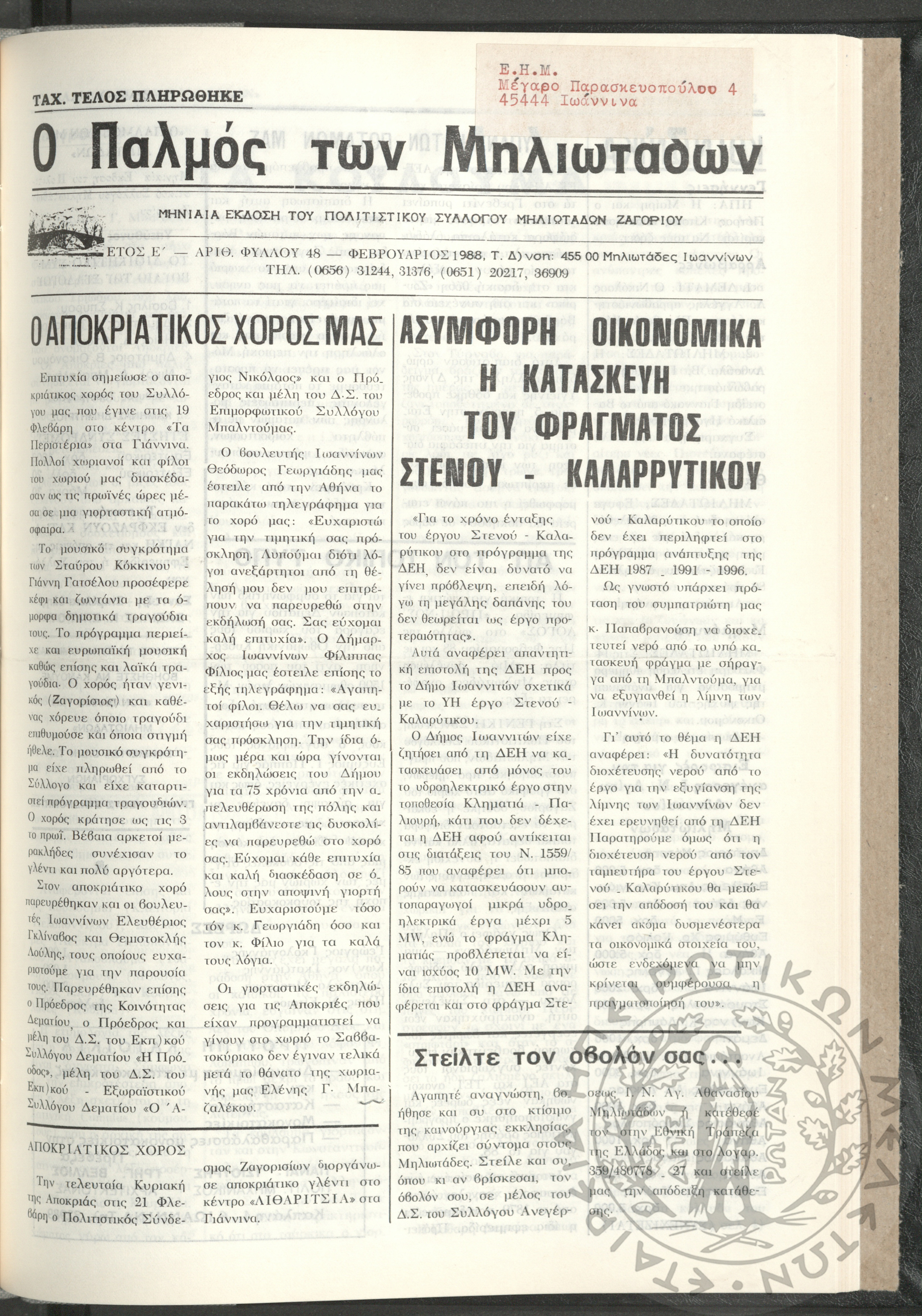 - Ψηφιακό Αποθετήριο Ανάδειξης και προβολής των ιστορικών τεκμηρίων της Εταιρείας Ηπειρωτικών Μελετών