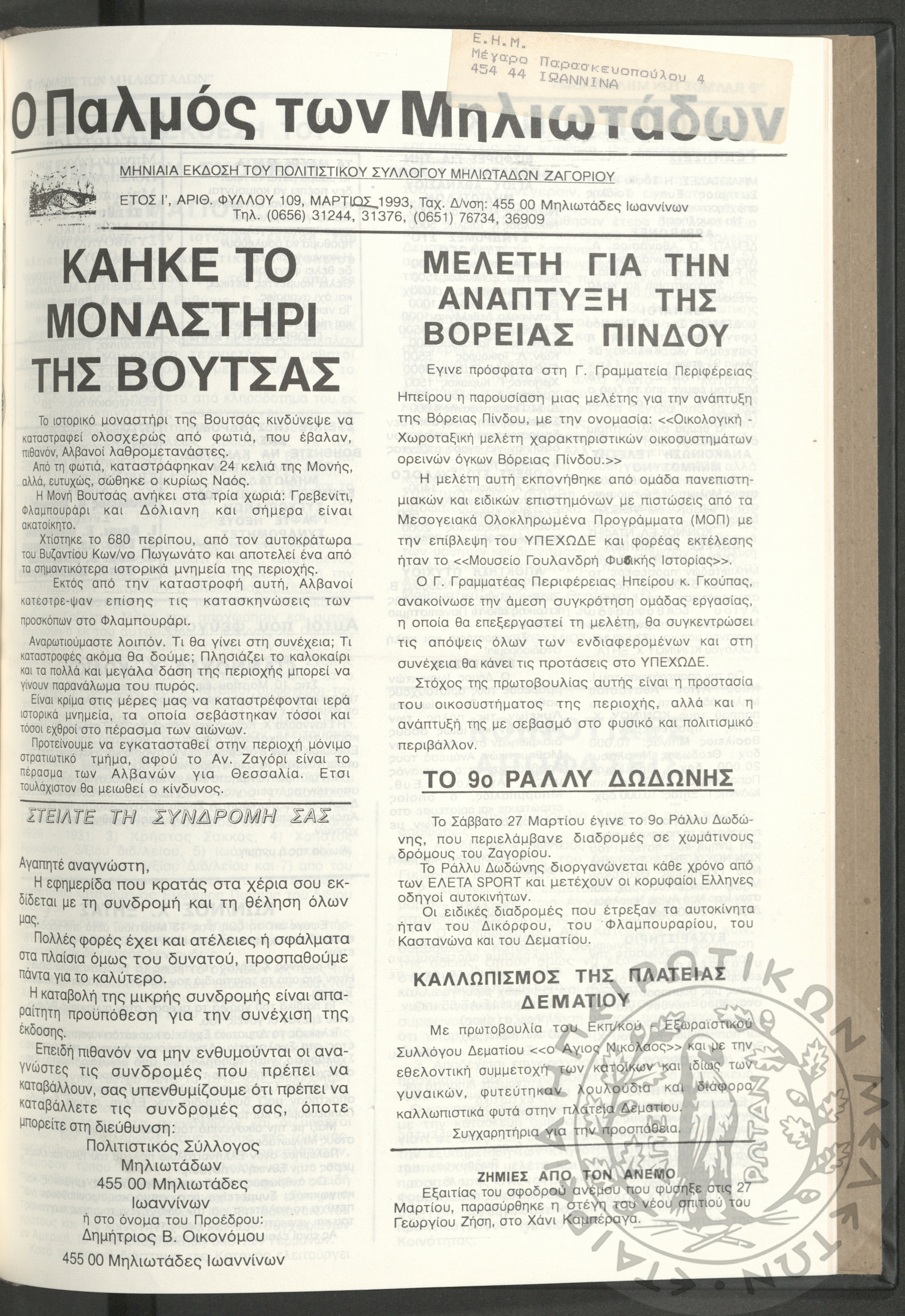- Ψηφιακό Αποθετήριο Ανάδειξης και προβολής των ιστορικών τεκμηρίων της Εταιρείας Ηπειρωτικών Μελετών