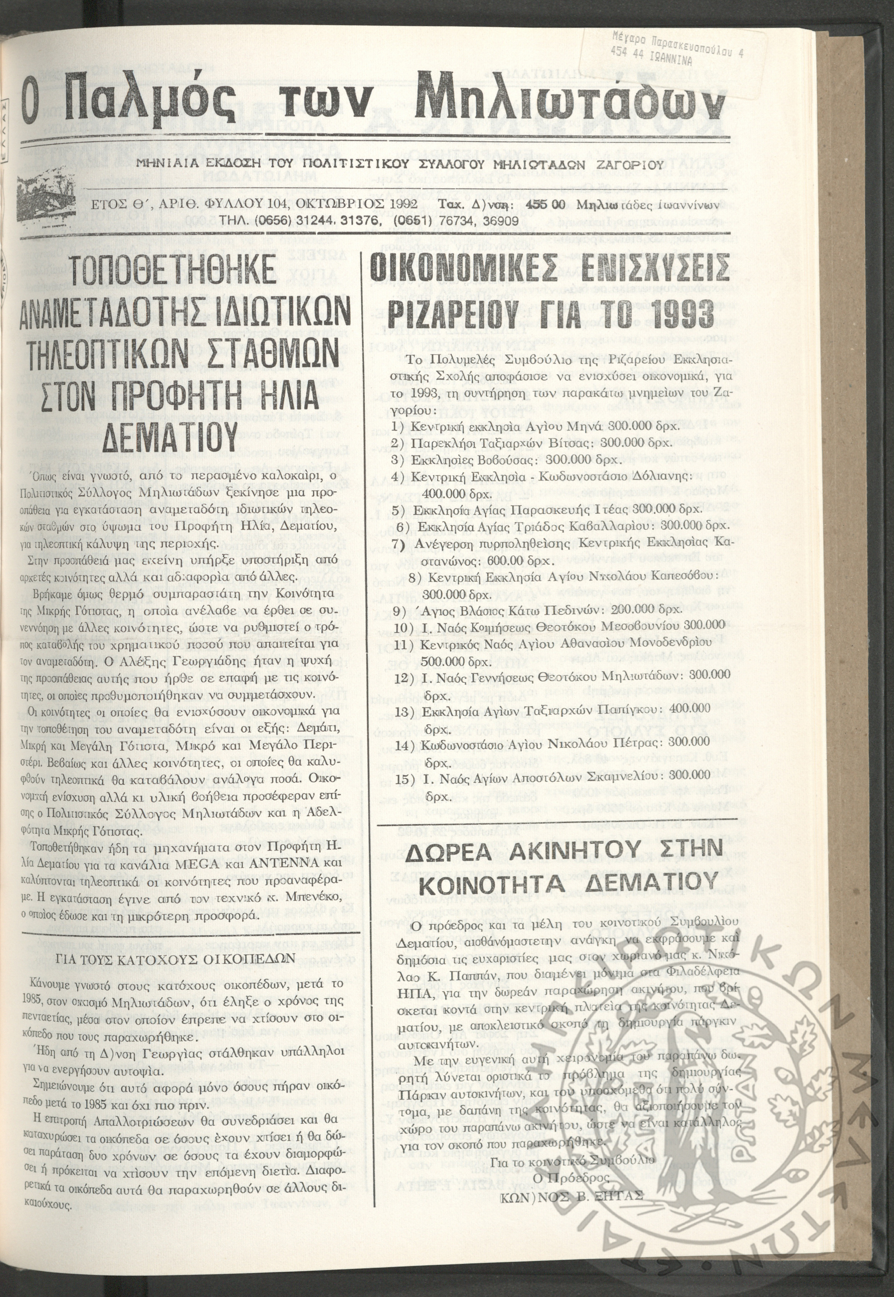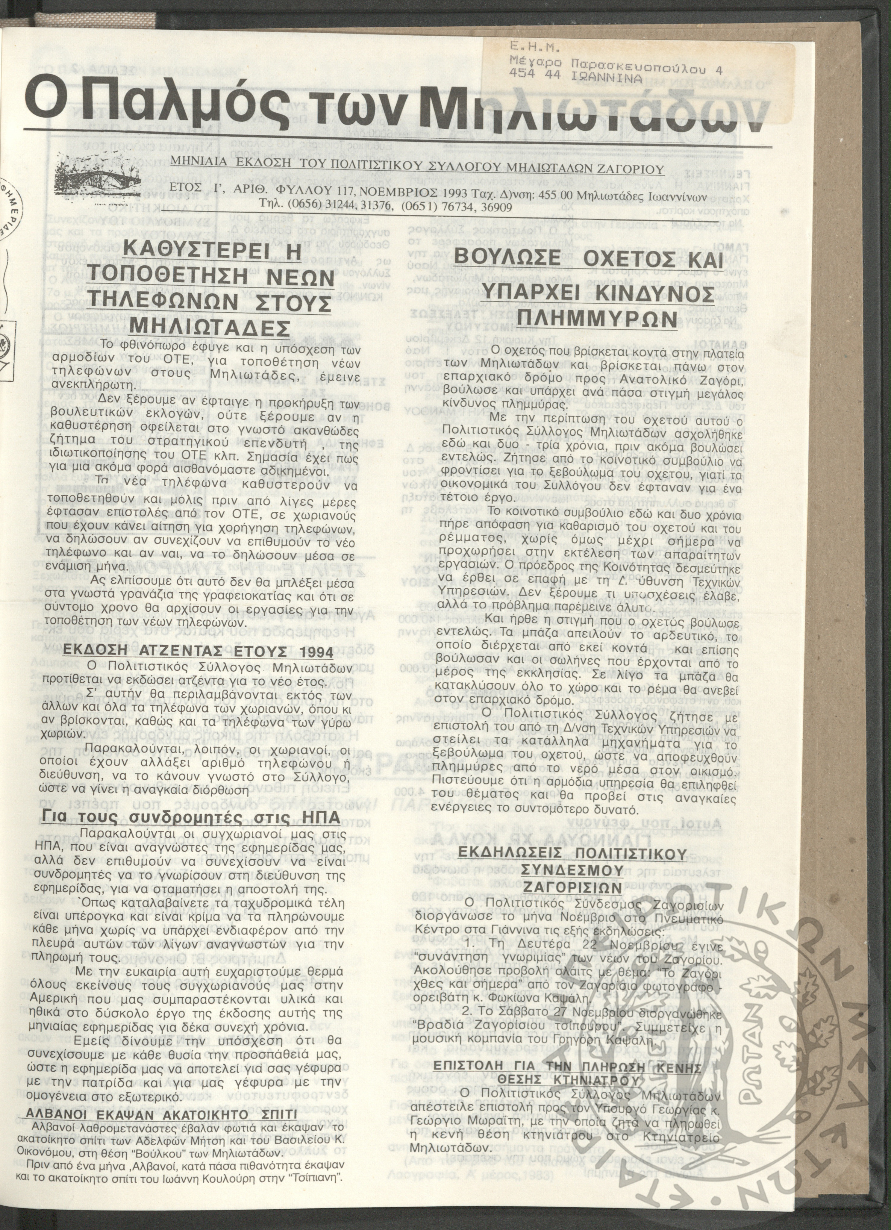 - Ψηφιακό Αποθετήριο Ανάδειξης και προβολής των ιστορικών τεκμηρίων της Εταιρείας Ηπειρωτικών Μελετών