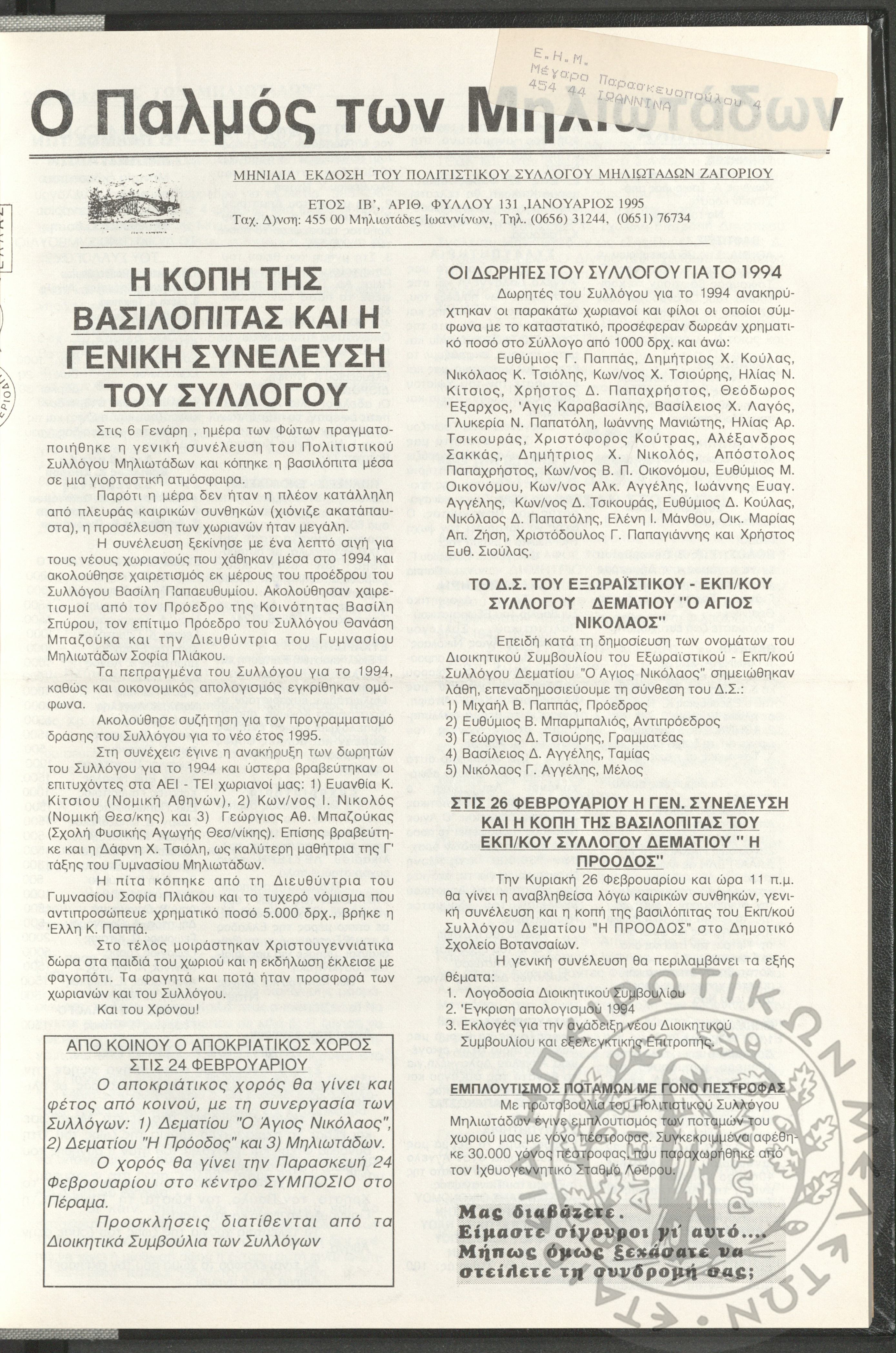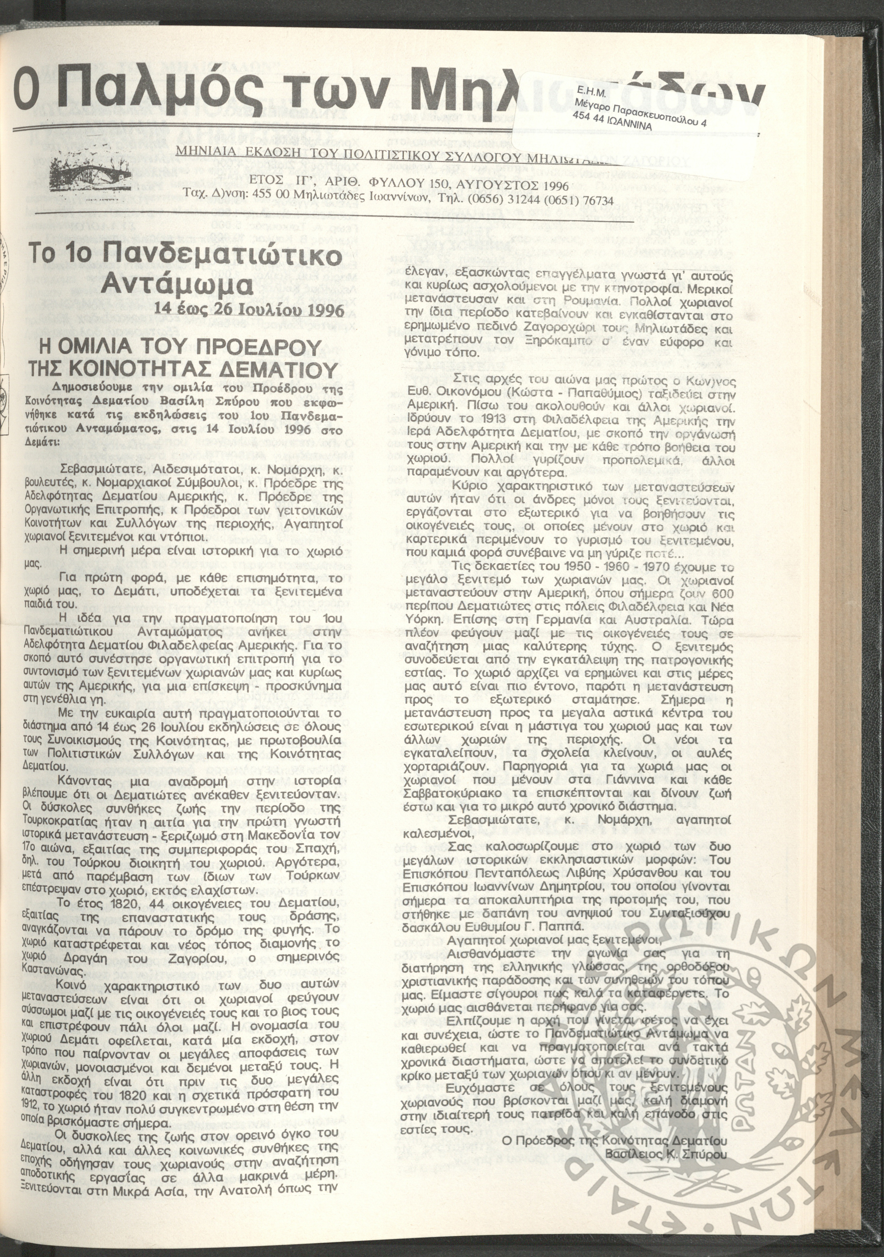 - Ψηφιακό Αποθετήριο Ανάδειξης και προβολής των ιστορικών τεκμηρίων της Εταιρείας Ηπειρωτικών Μελετών