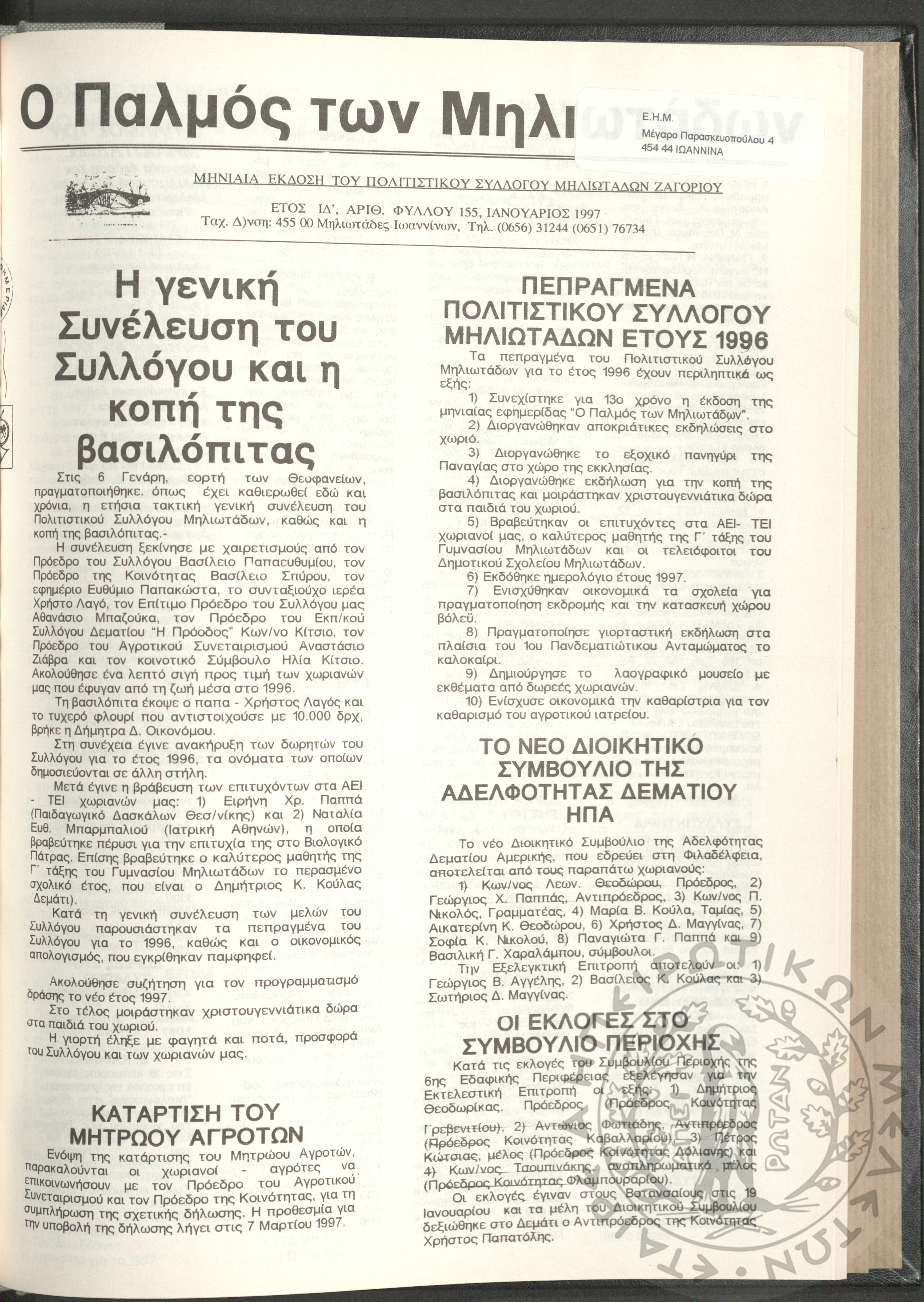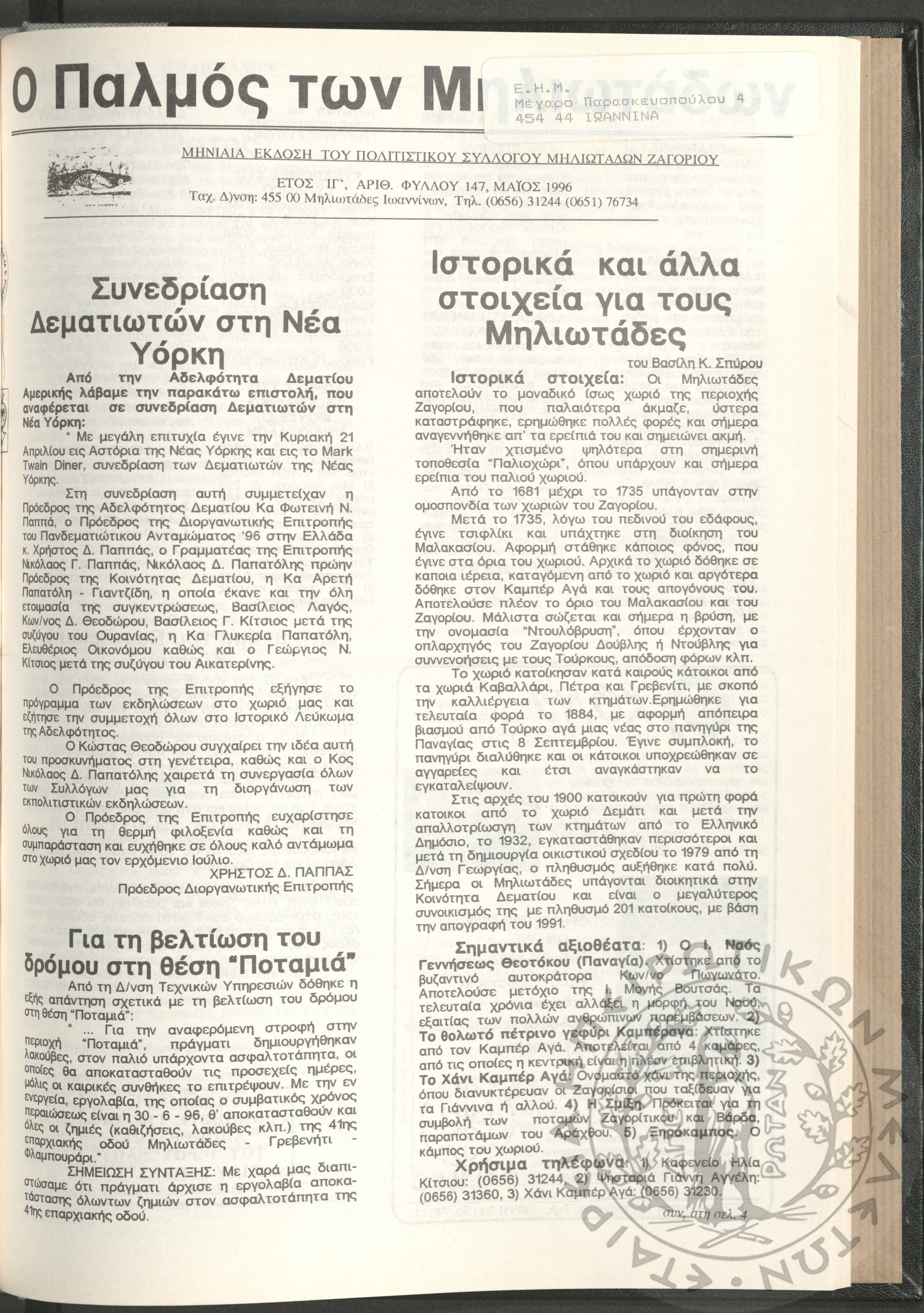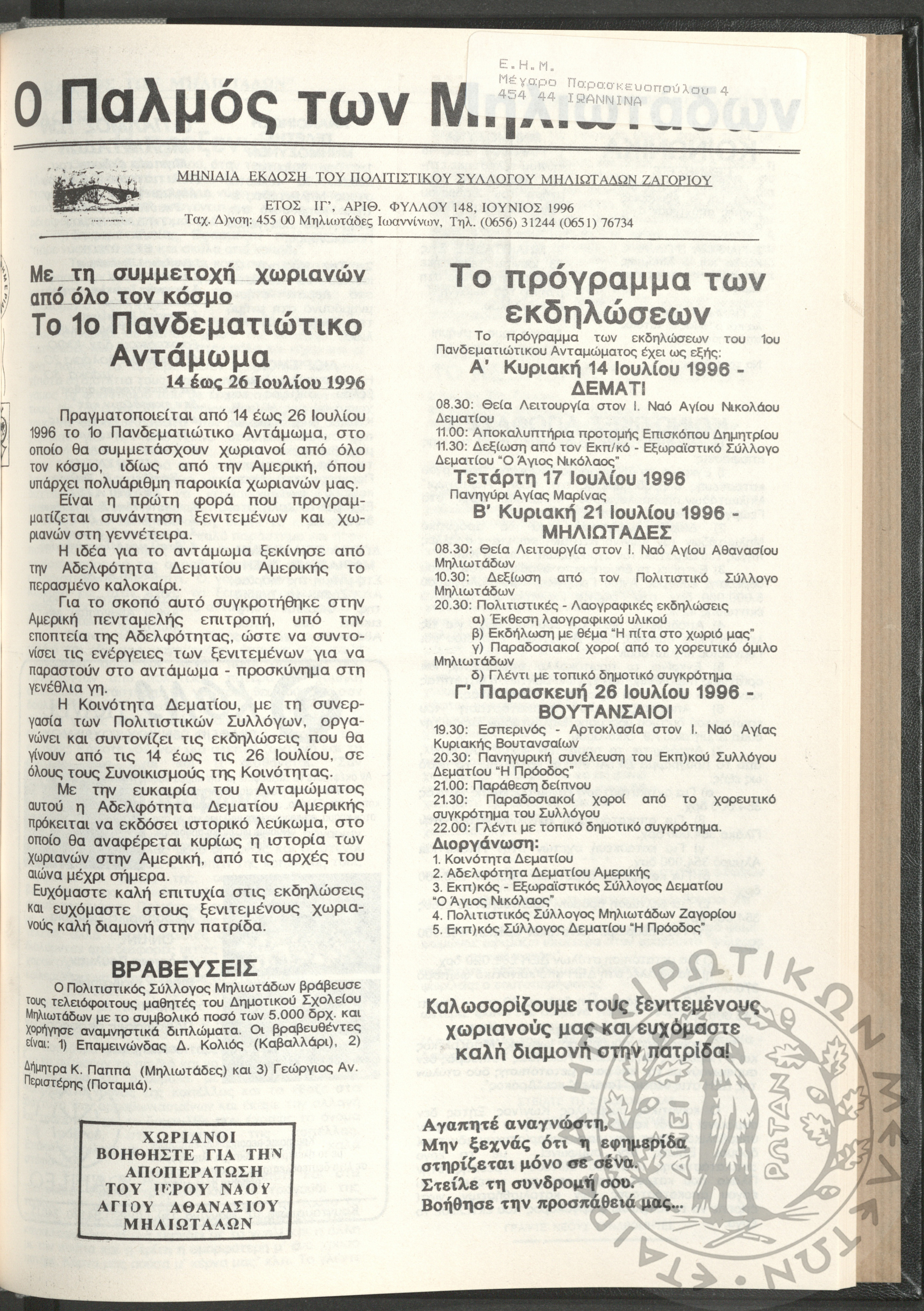 - Ψηφιακό Αποθετήριο Ανάδειξης και προβολής των ιστορικών τεκμηρίων της Εταιρείας Ηπειρωτικών Μελετών