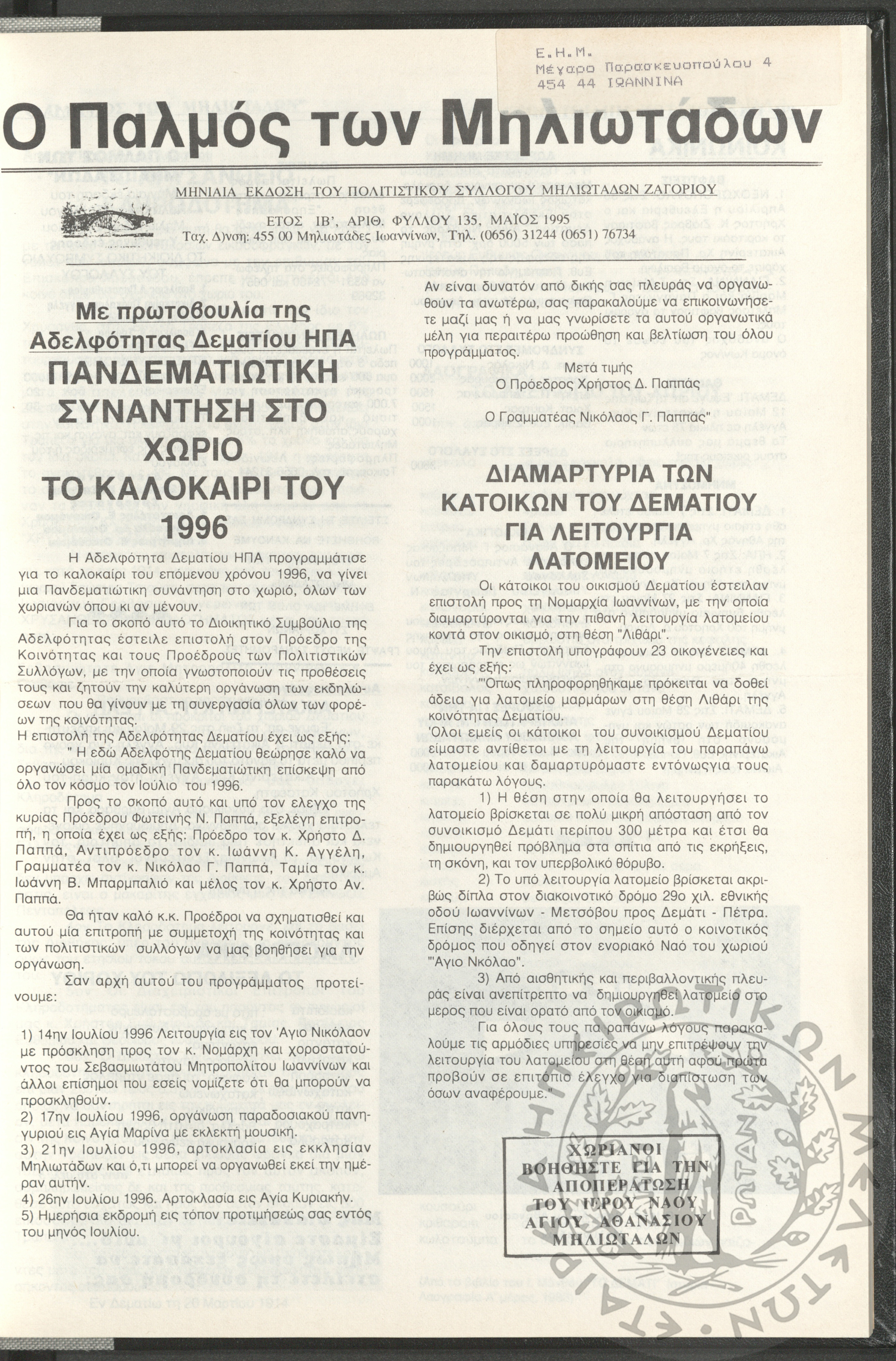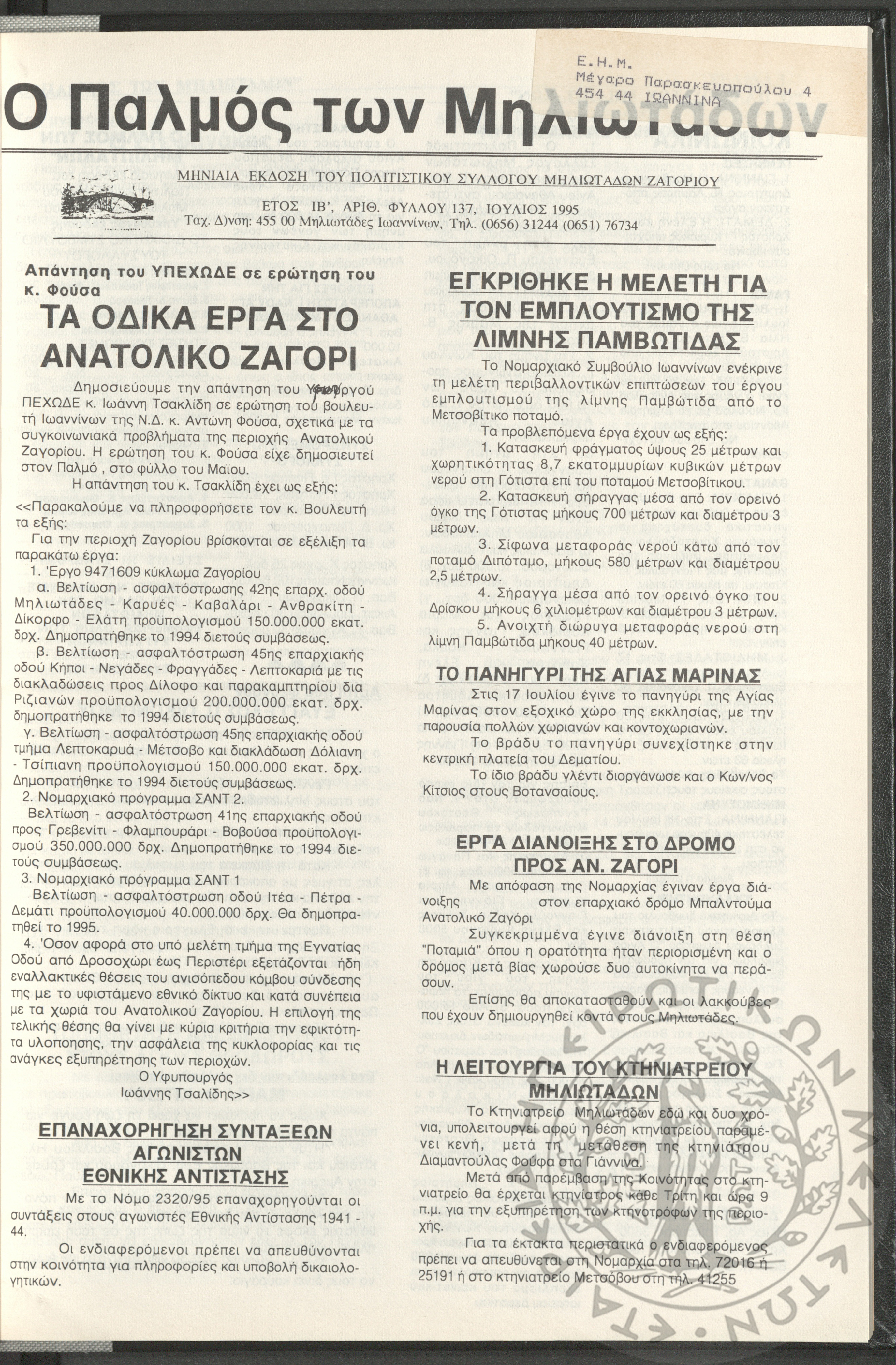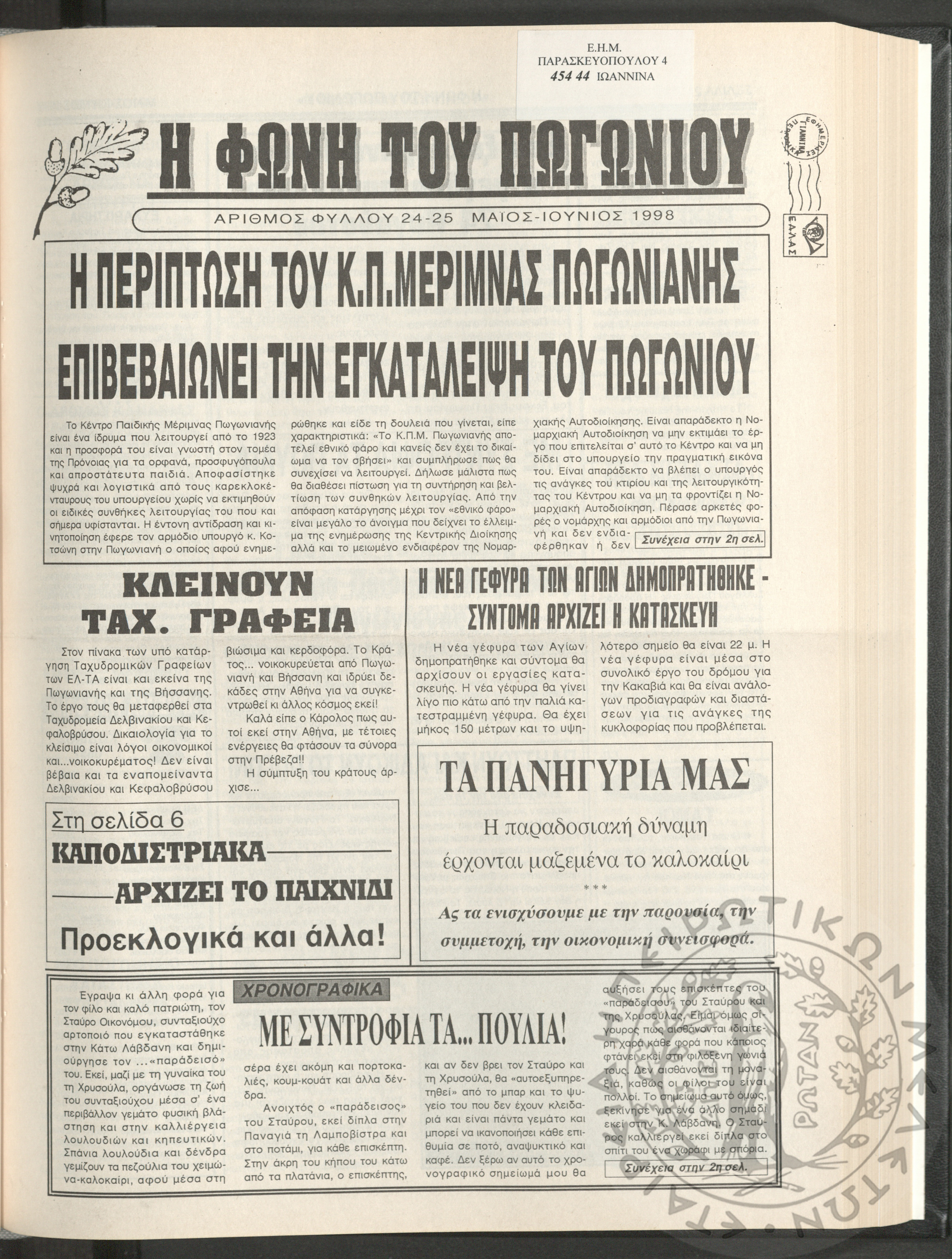 - Ψηφιακό Αποθετήριο Ανάδειξης και προβολής των ιστορικών τεκμηρίων της Εταιρείας Ηπειρωτικών Μελετών