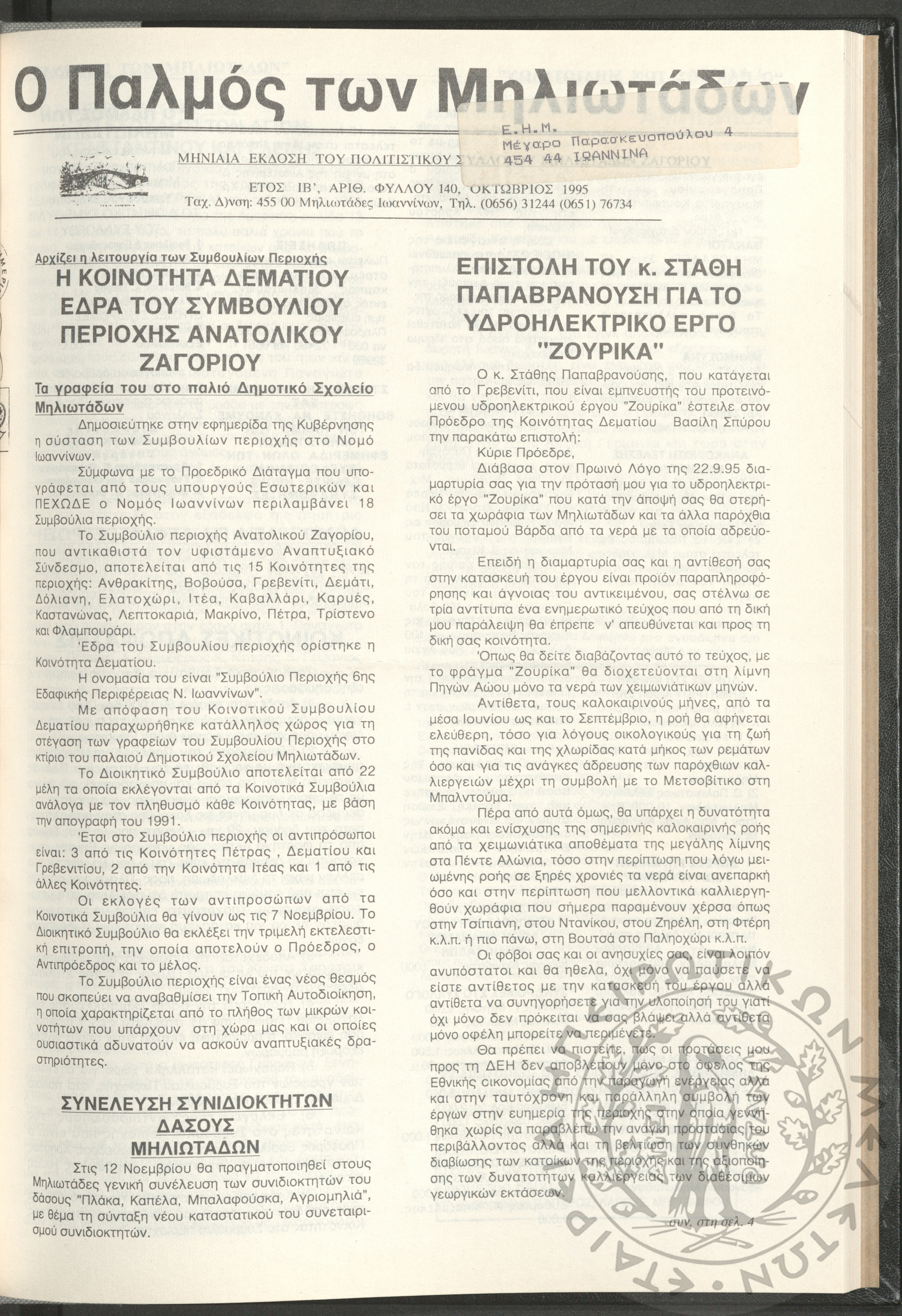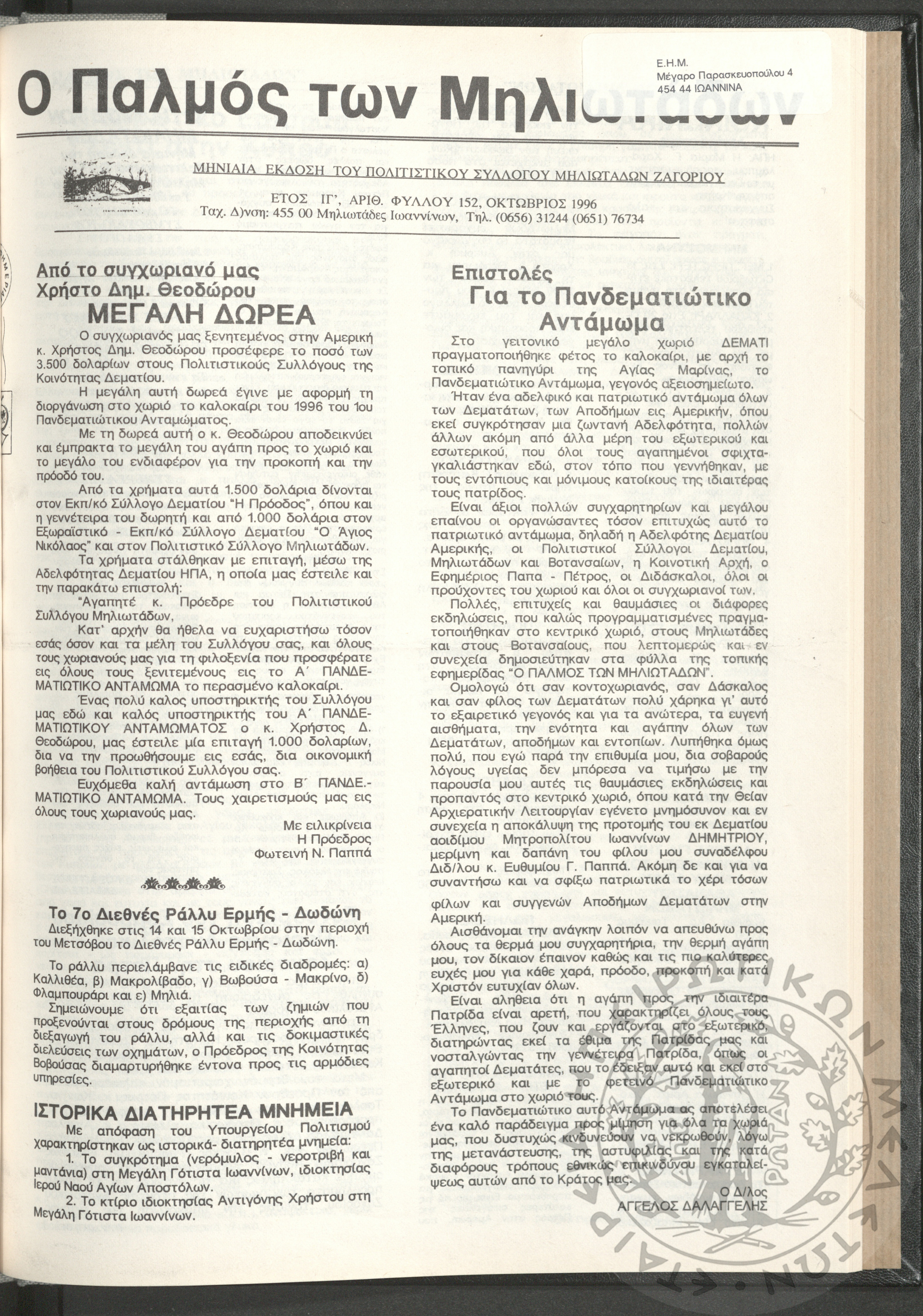 - Ψηφιακό Αποθετήριο Ανάδειξης και προβολής των ιστορικών τεκμηρίων της Εταιρείας Ηπειρωτικών Μελετών