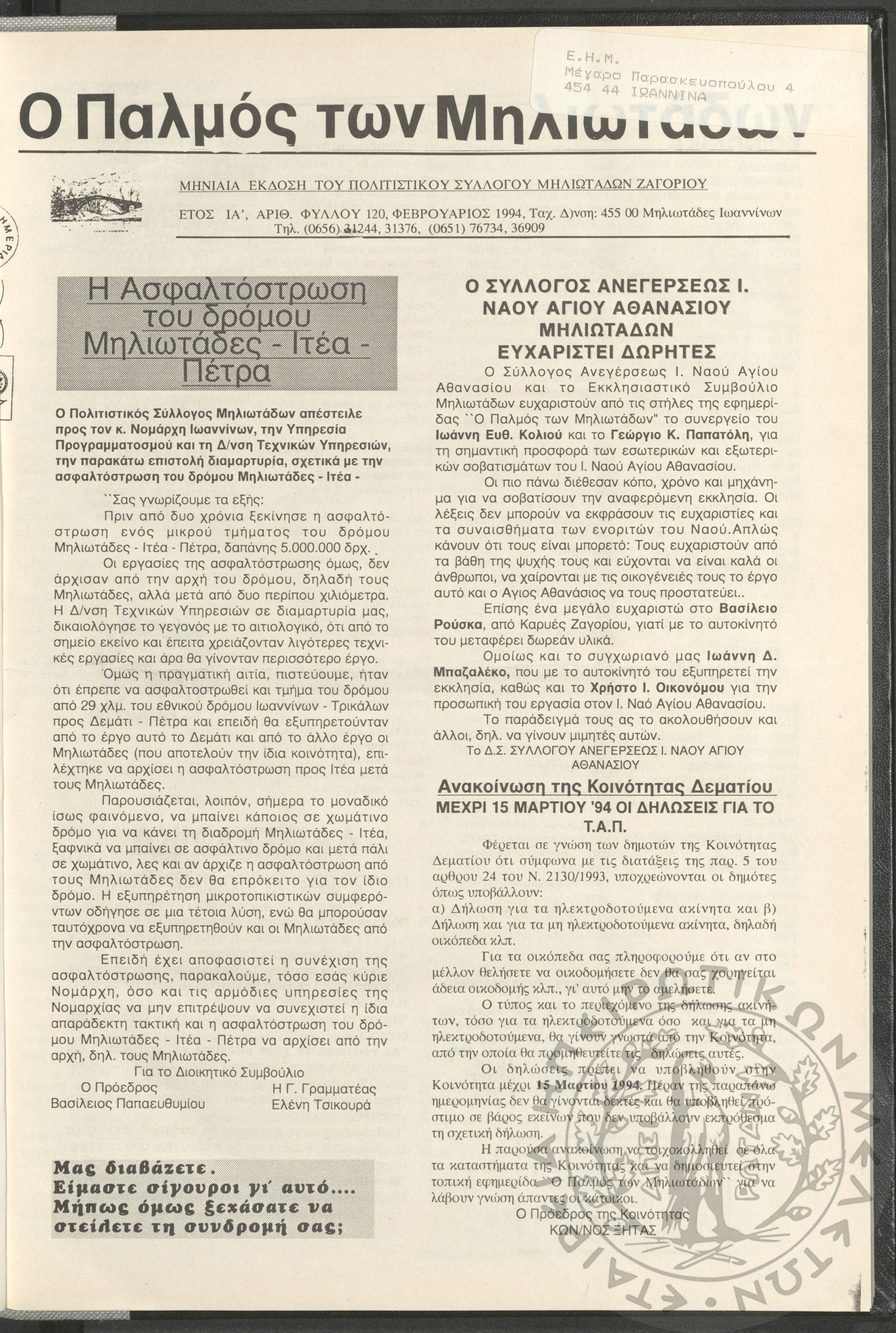 - Ψηφιακό Αποθετήριο Ανάδειξης και προβολής των ιστορικών τεκμηρίων της Εταιρείας Ηπειρωτικών Μελετών