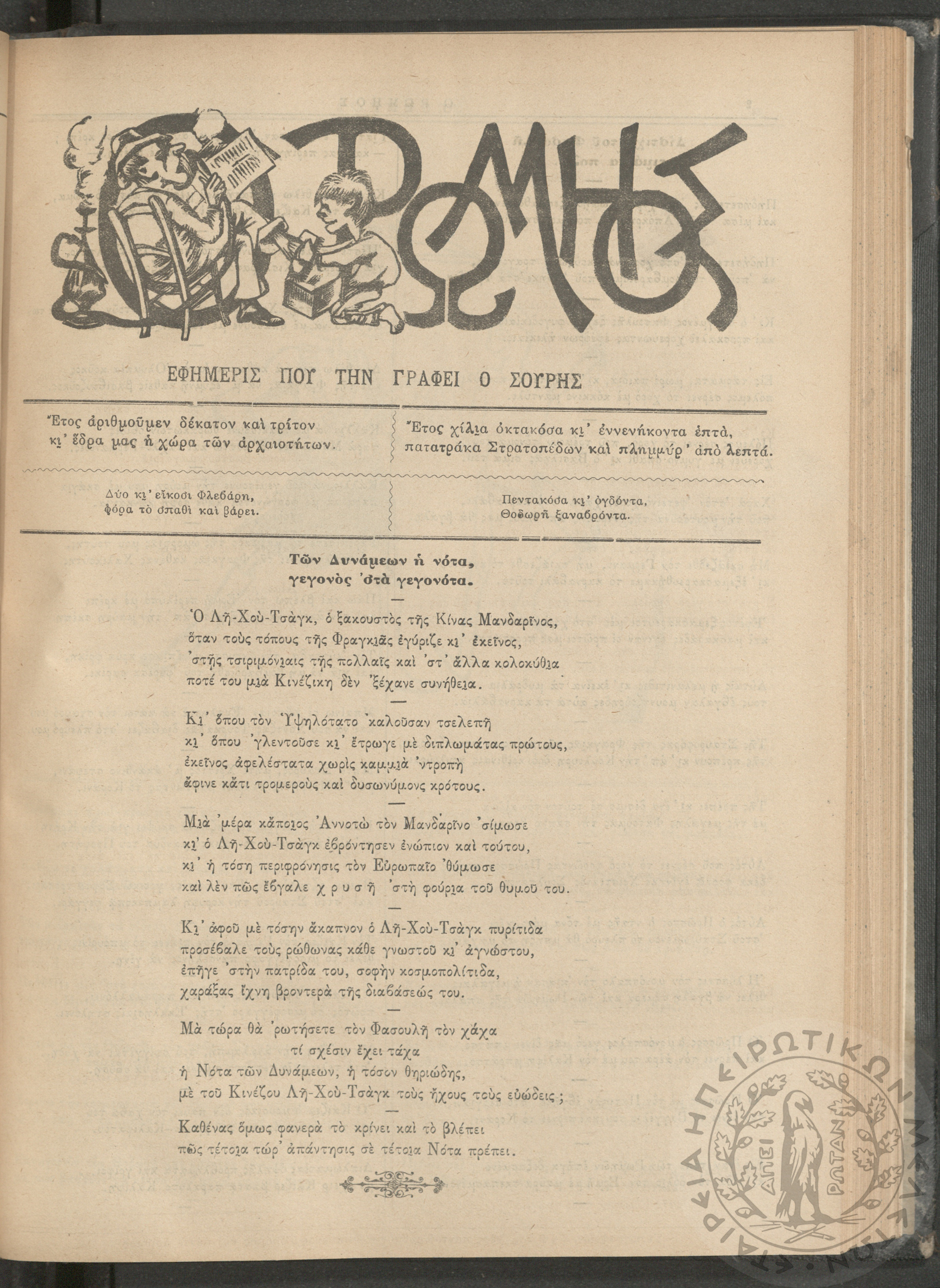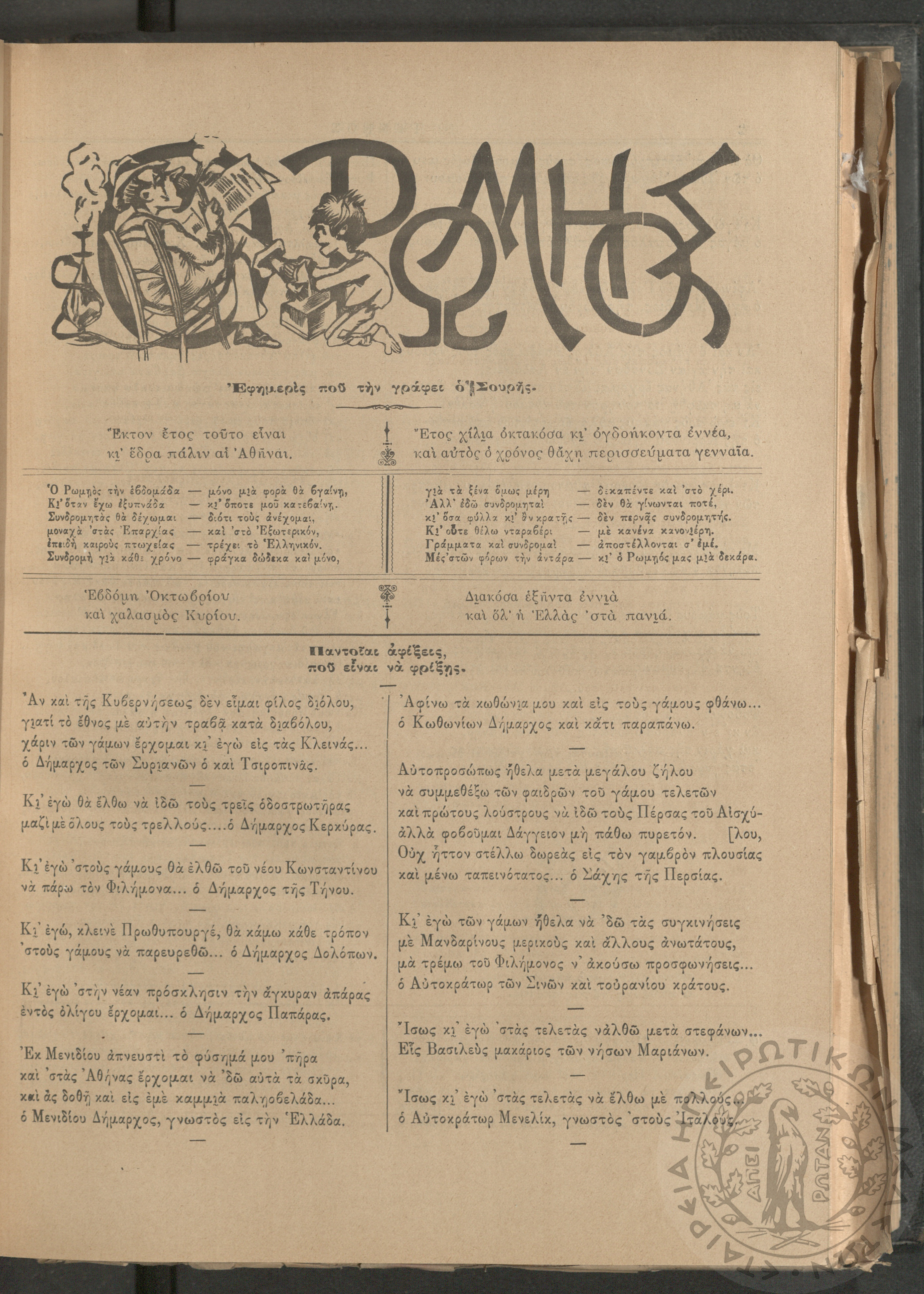 Ο Ρωμηός: Εφημερίς που την γράφει ο Σουρής, 1897, φ. 586