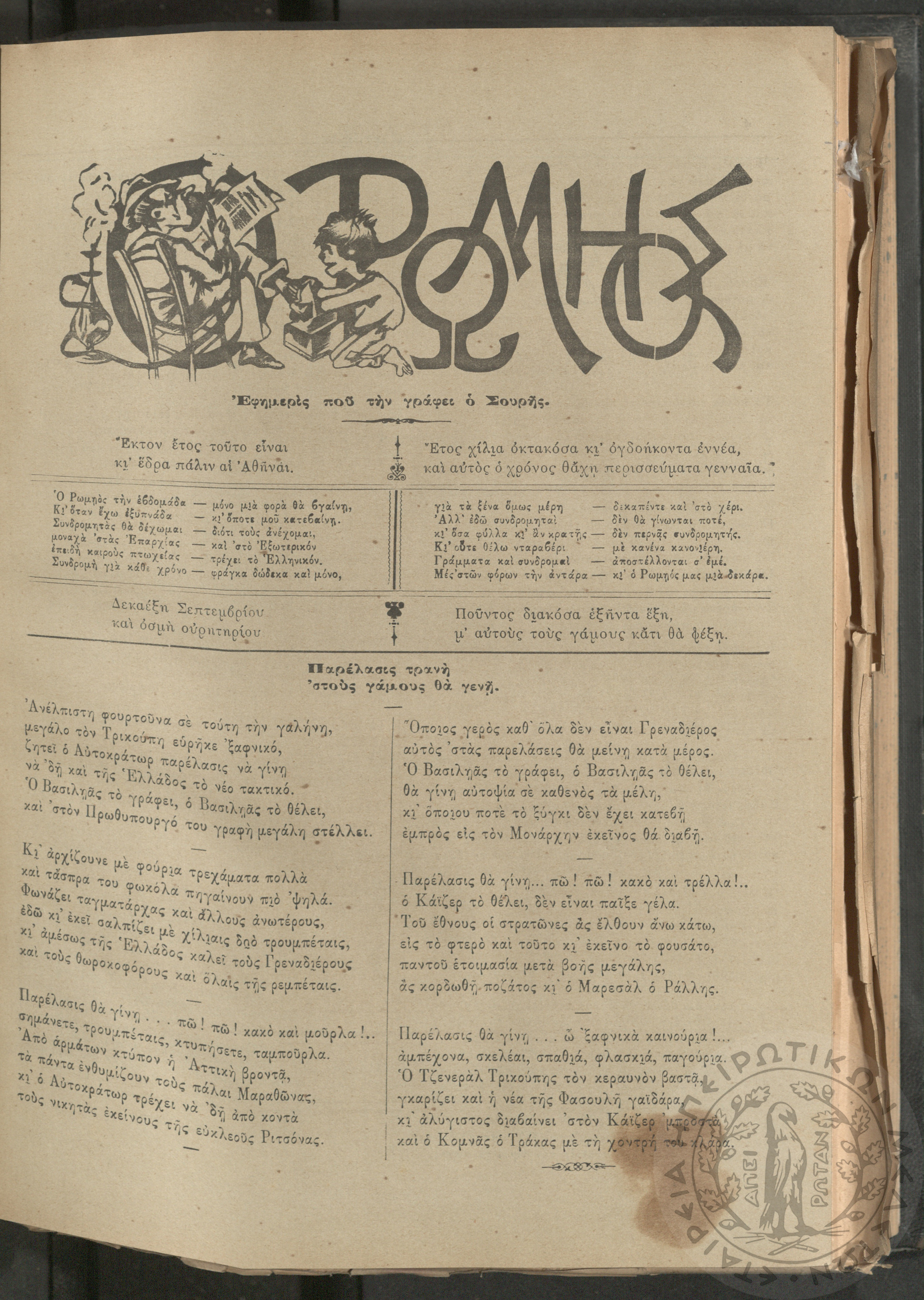 Ο Ρωμηός: Εφημερίς που την γράφει ο Σουρής, 1897, φ. 579
