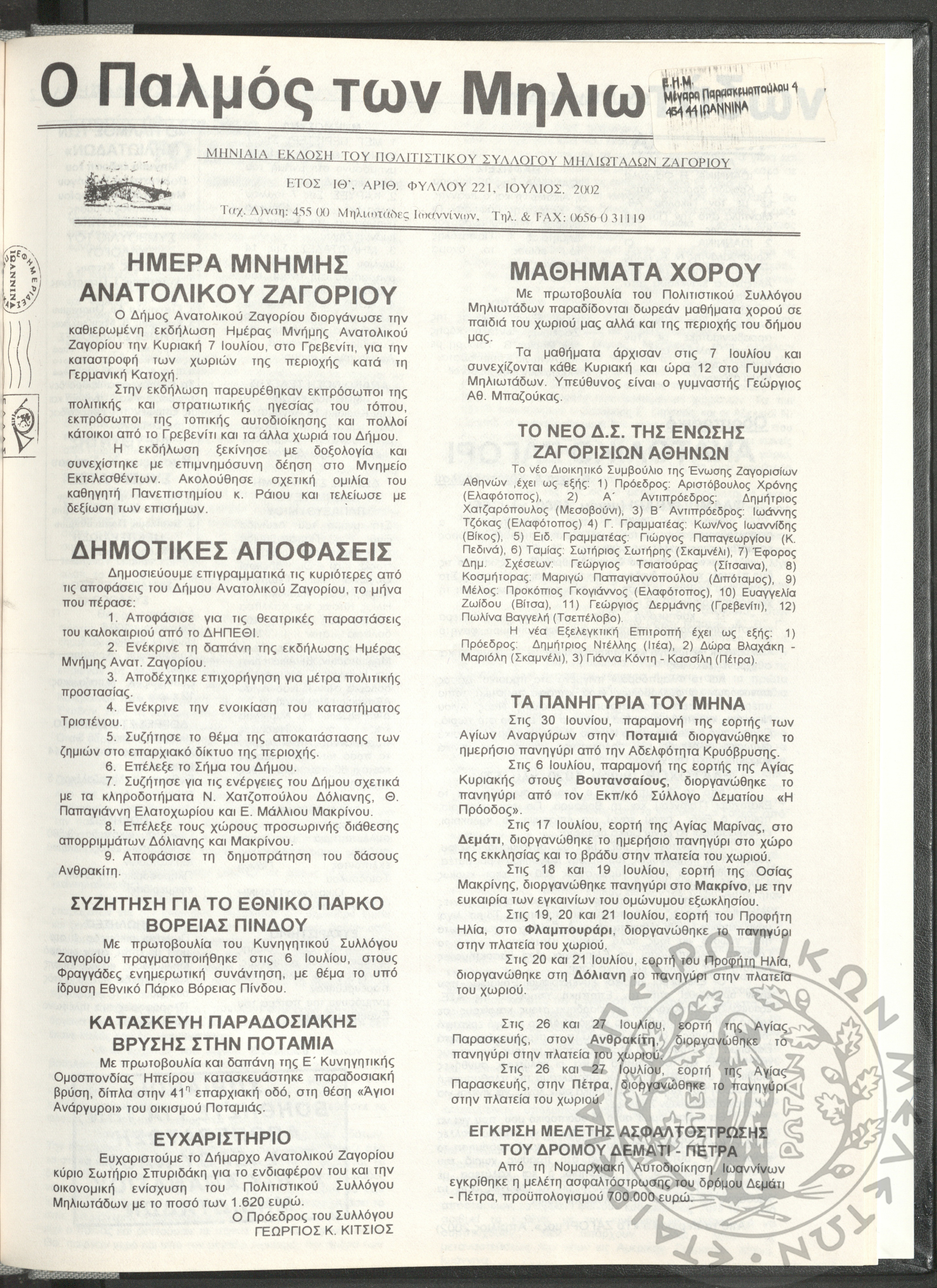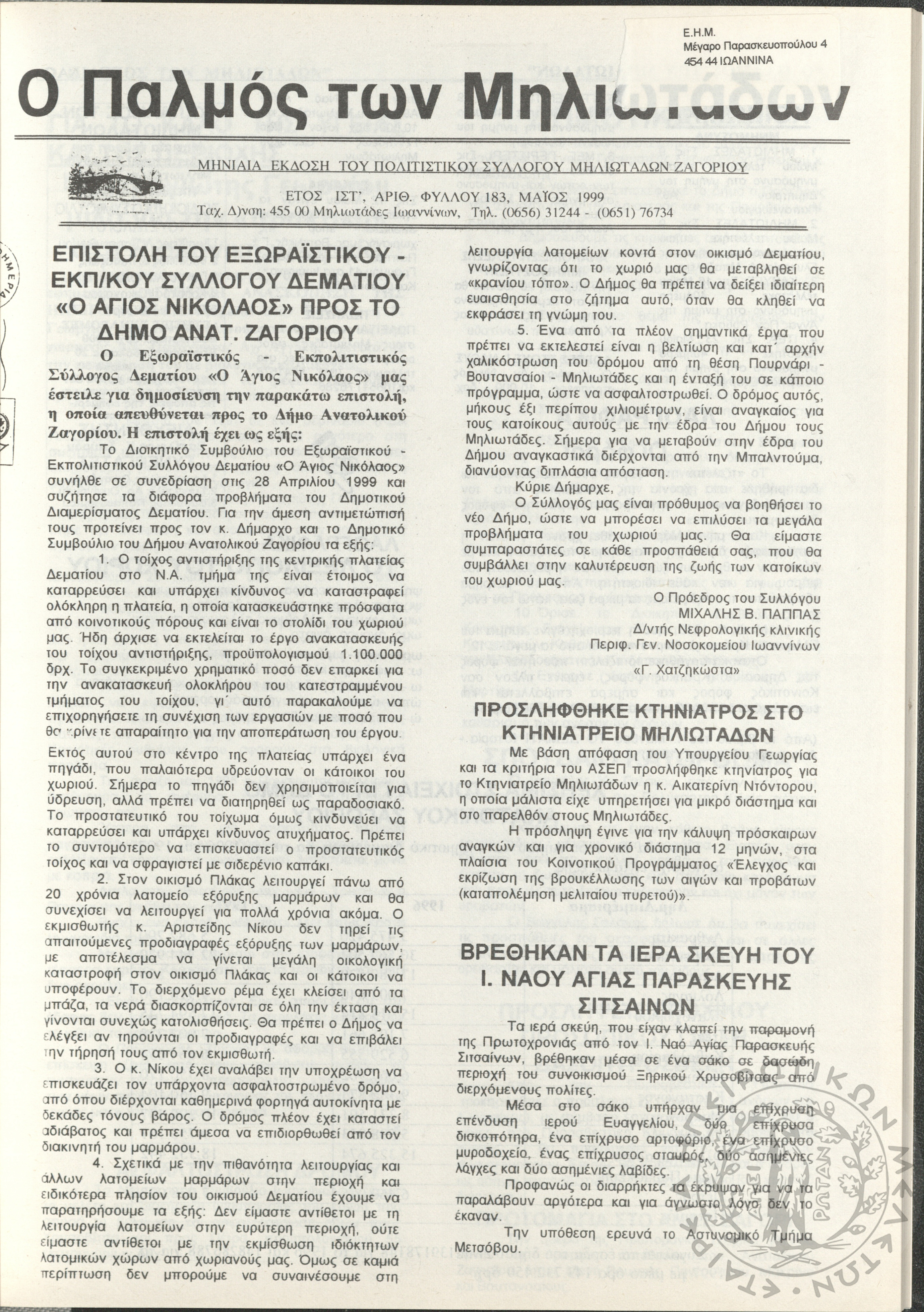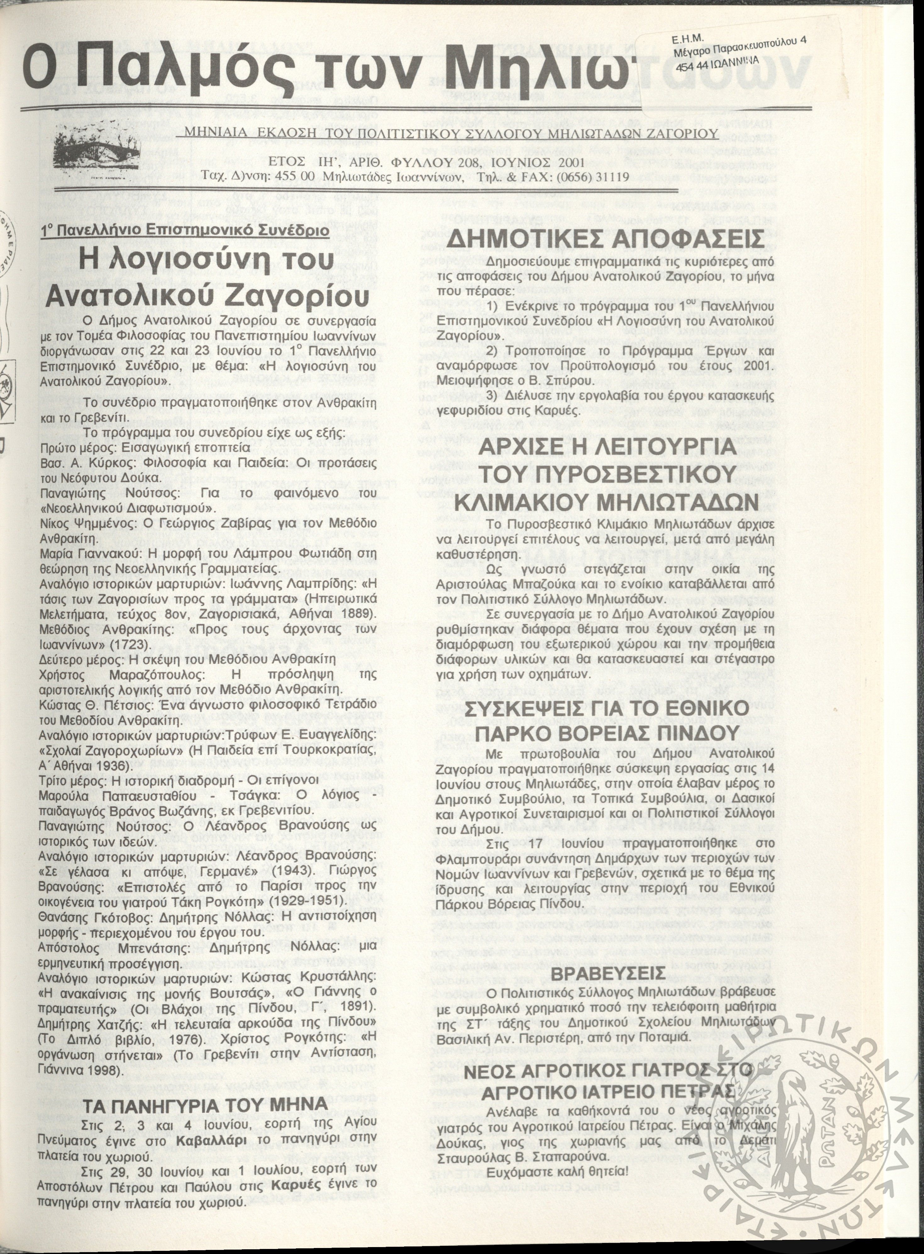 - Ψηφιακό Αποθετήριο Ανάδειξης και προβολής των ιστορικών τεκμηρίων της Εταιρείας Ηπειρωτικών Μελετών