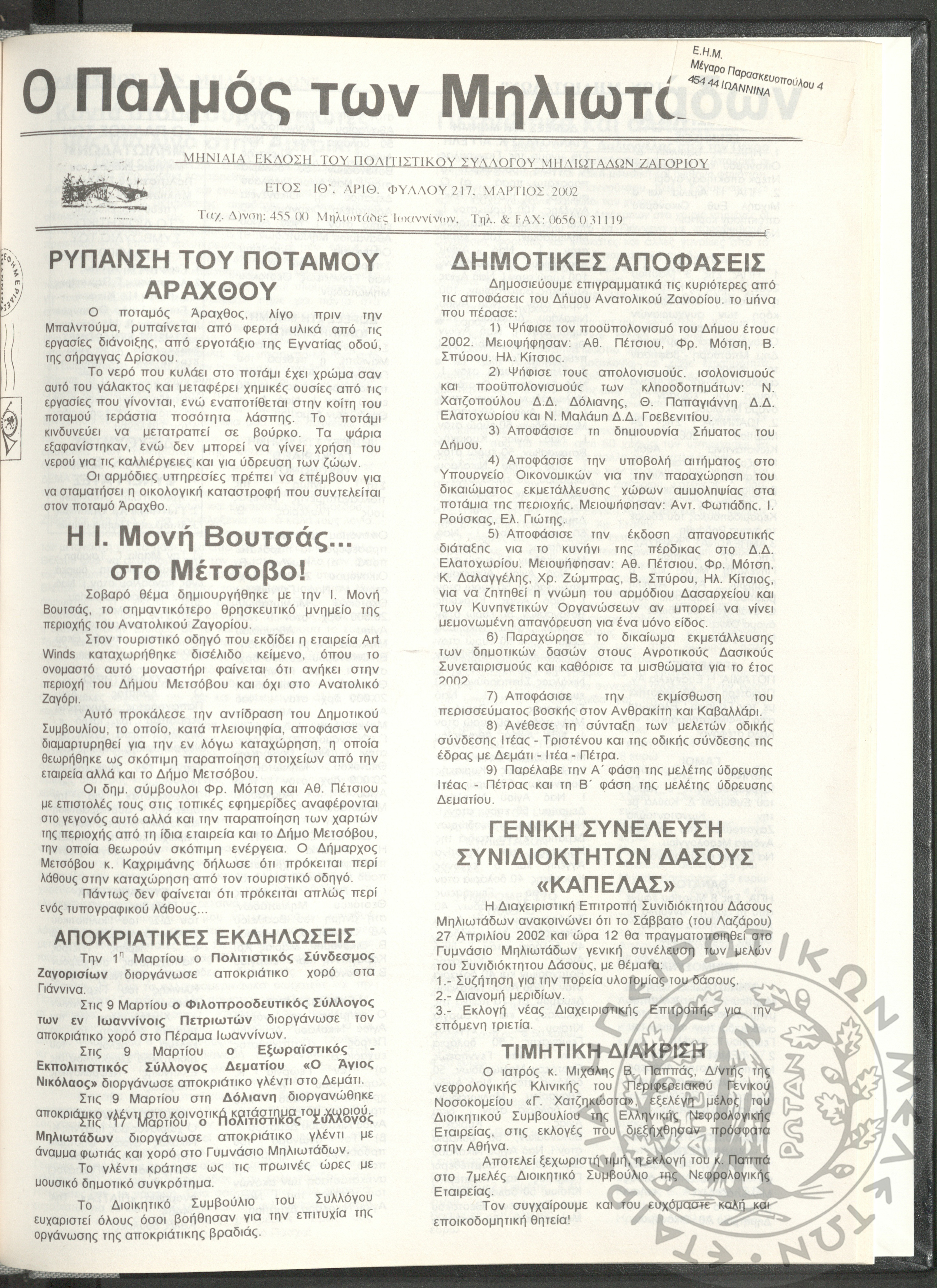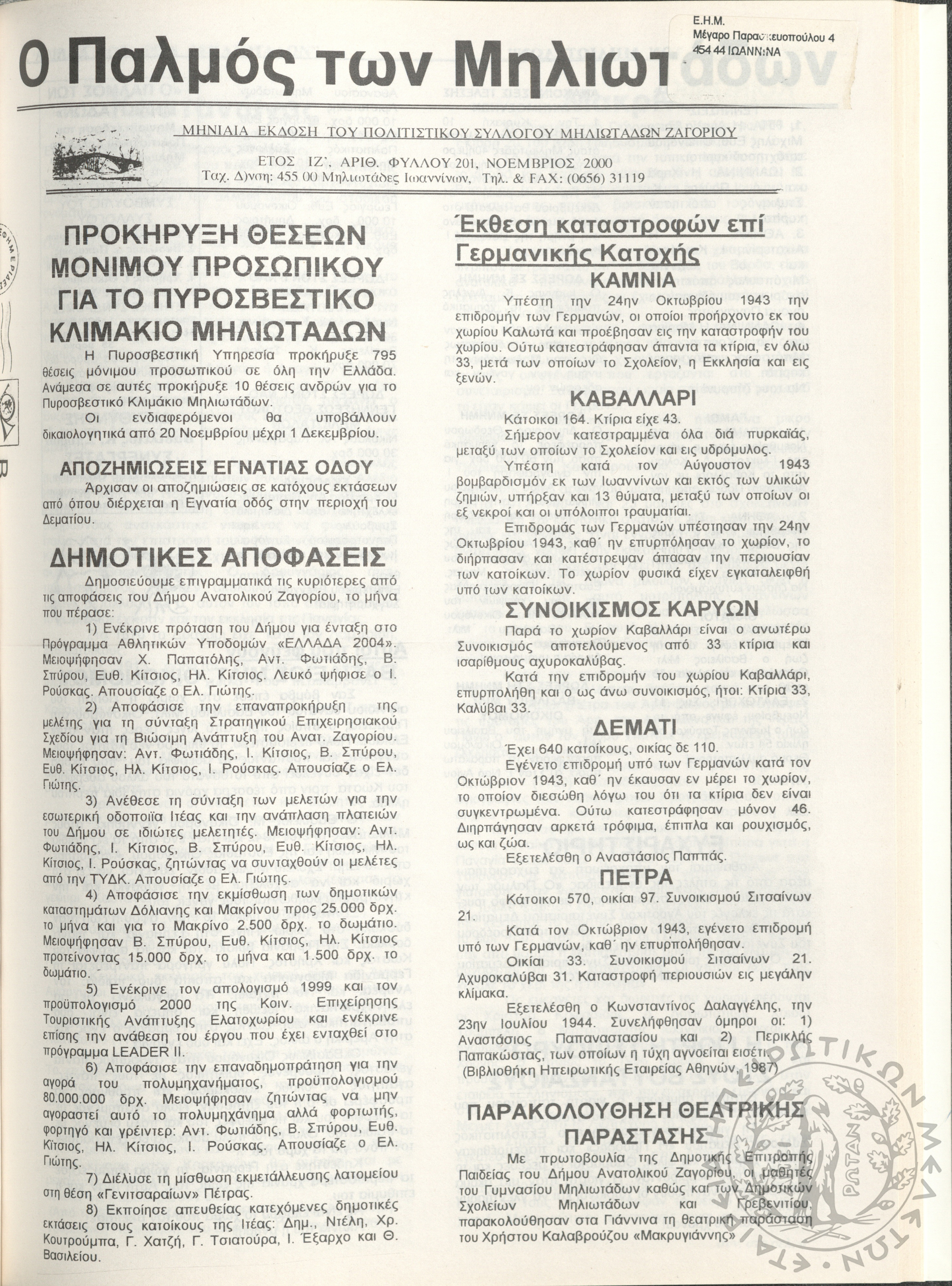 - Ψηφιακό Αποθετήριο Ανάδειξης και προβολής των ιστορικών τεκμηρίων της Εταιρείας Ηπειρωτικών Μελετών