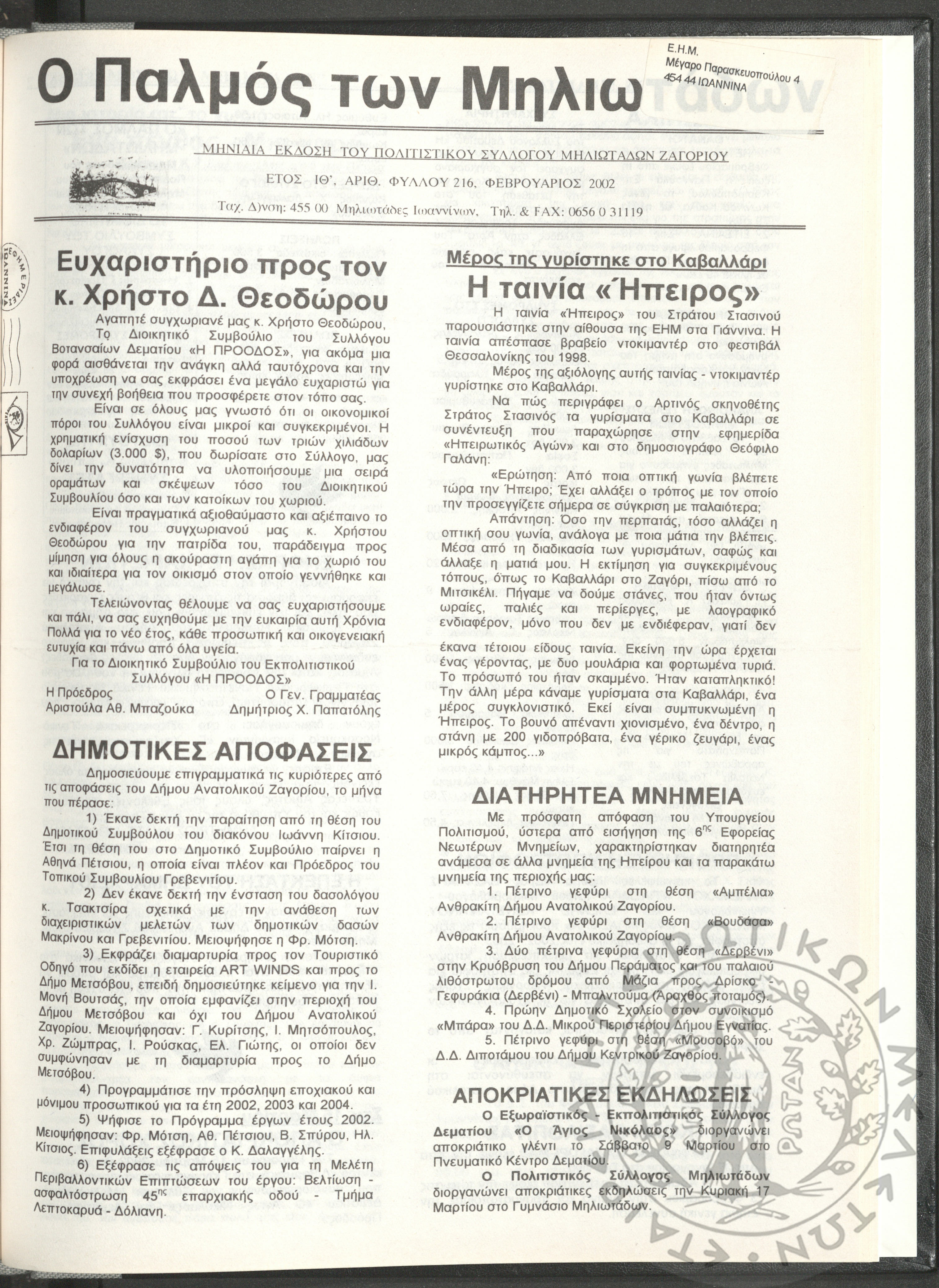 - Ψηφιακό Αποθετήριο Ανάδειξης και προβολής των ιστορικών τεκμηρίων της Εταιρείας Ηπειρωτικών Μελετών