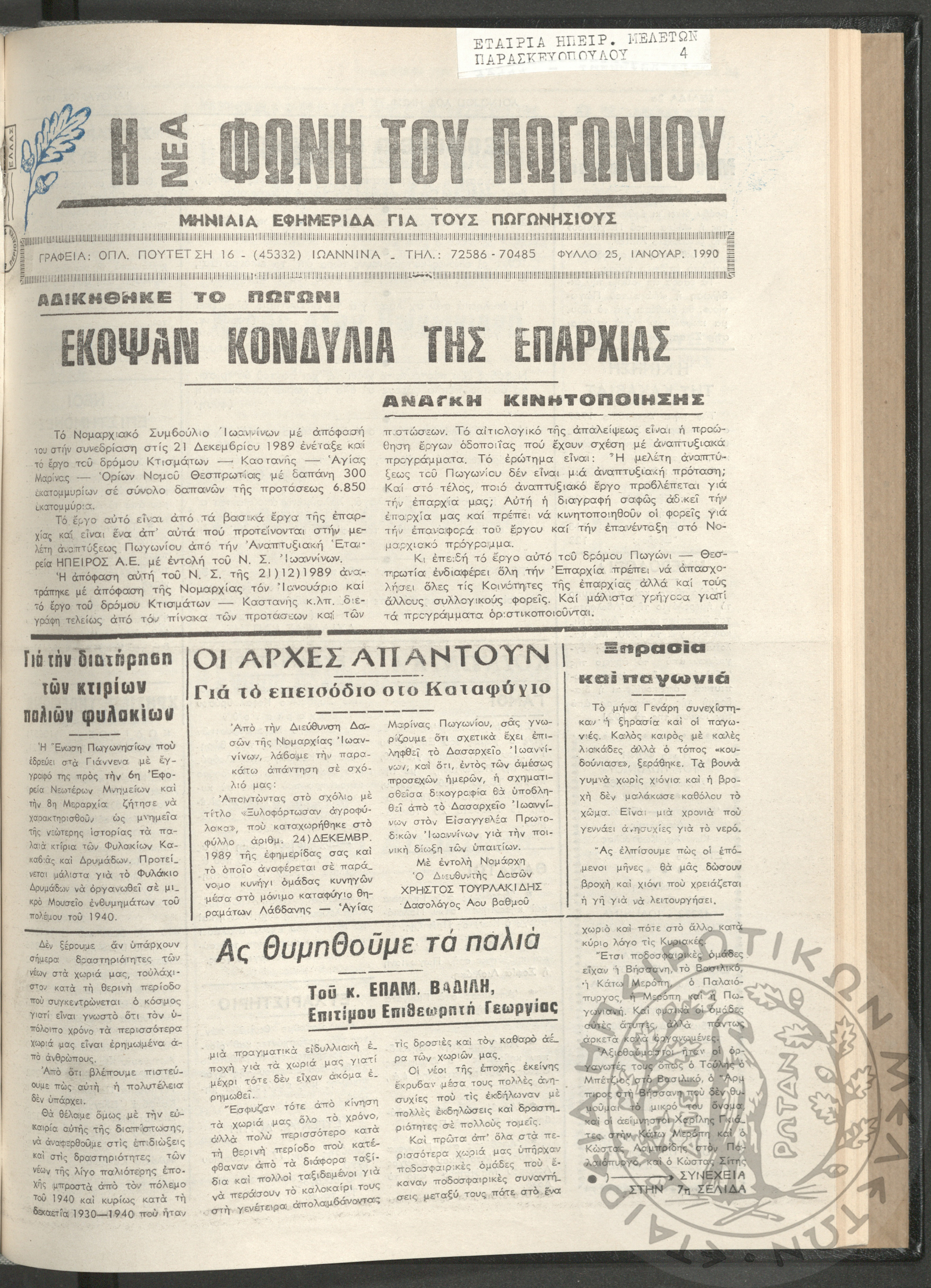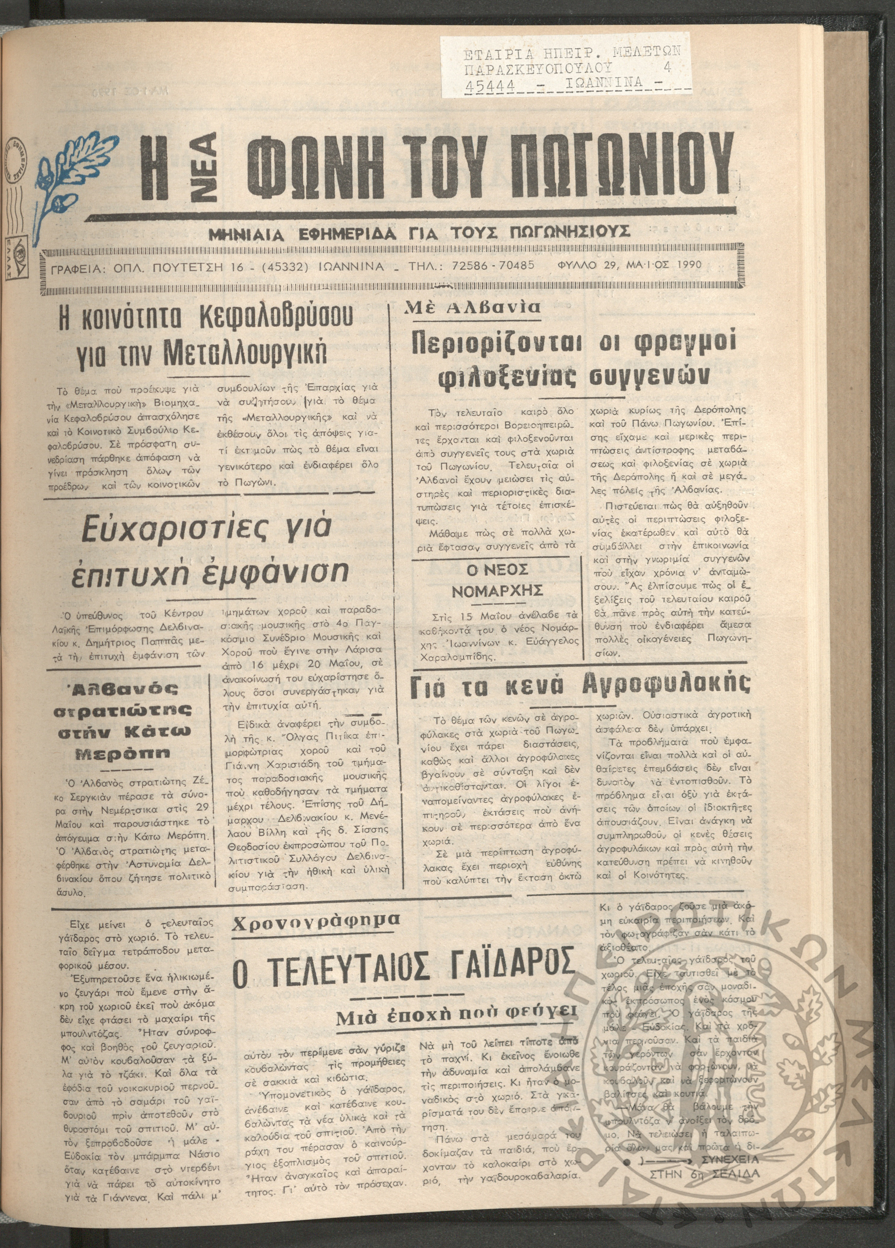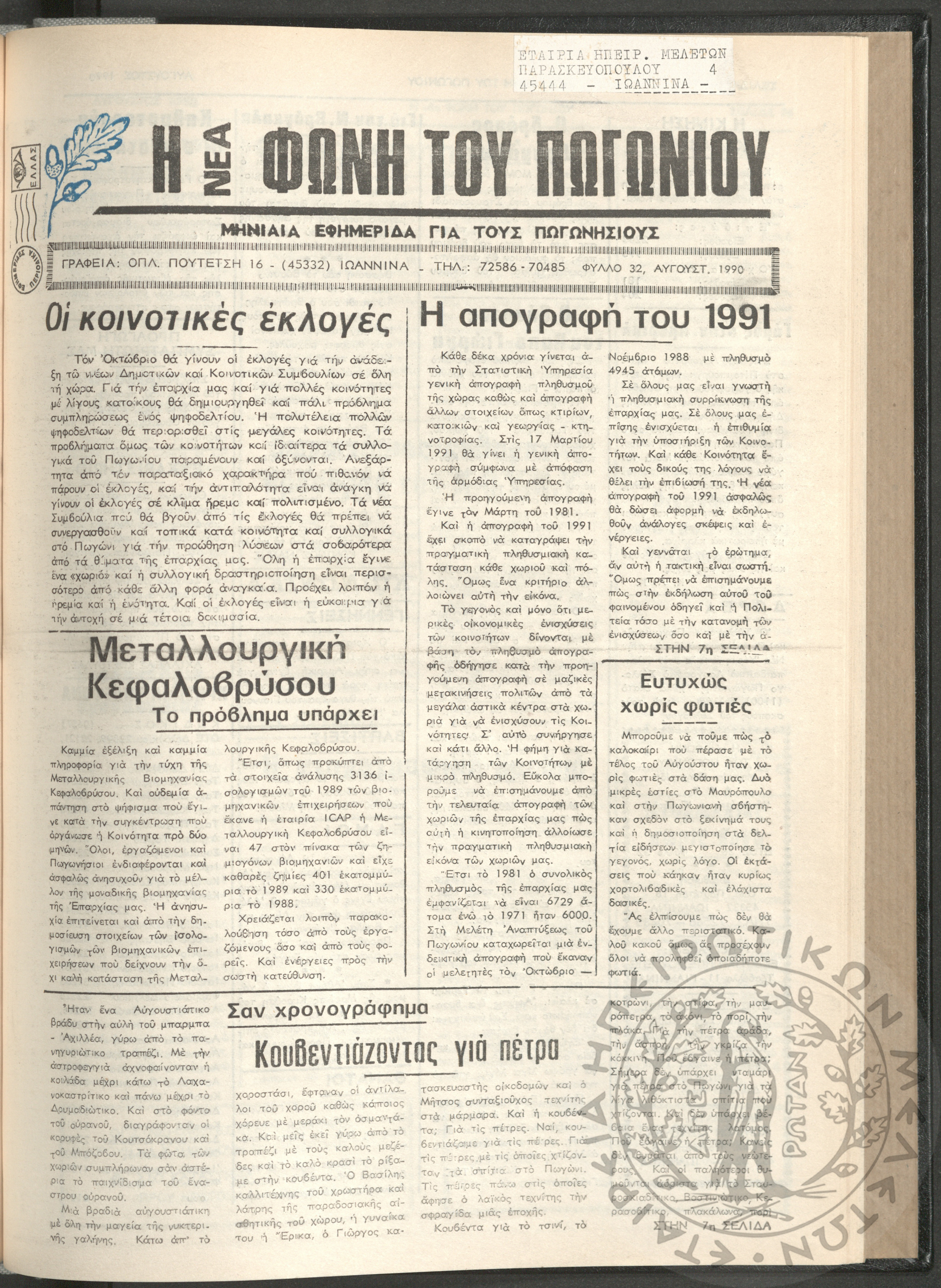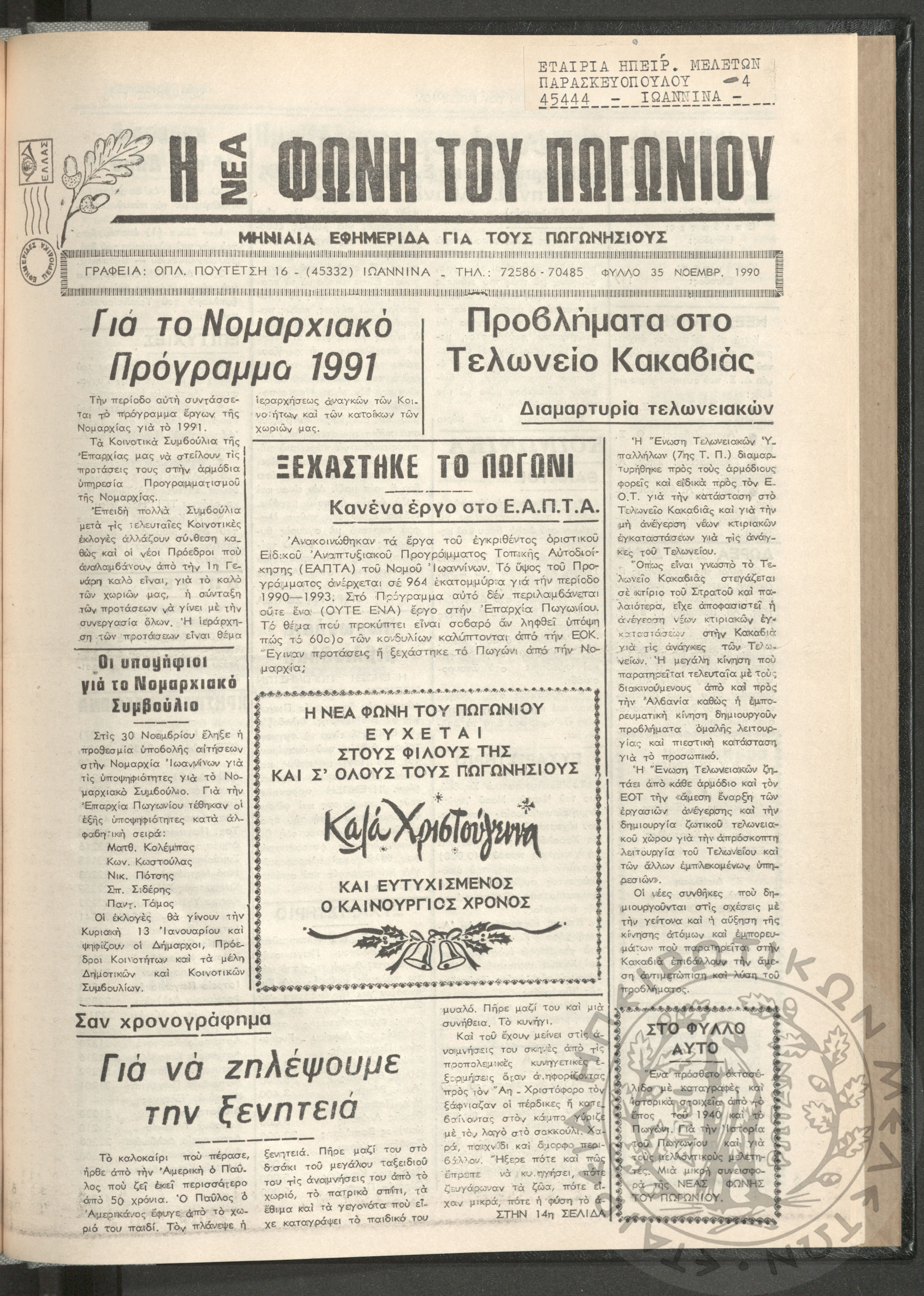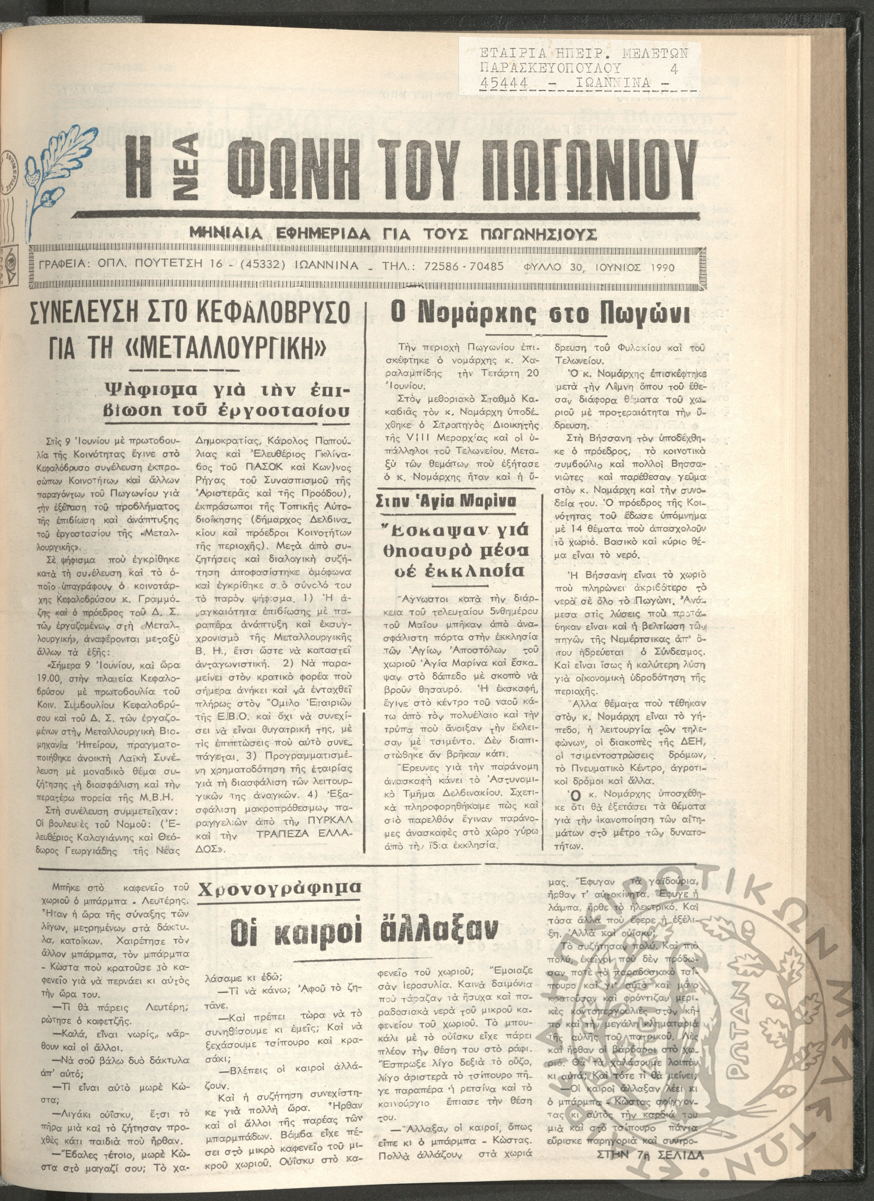 Η νέα φωνή του Πωγωνίου: μηνιαία εφημερίδα για τους Πωγωνησίους, 1990, φ. 30Κωστούλας, Κωνσταντίνος Χρ. (ε...