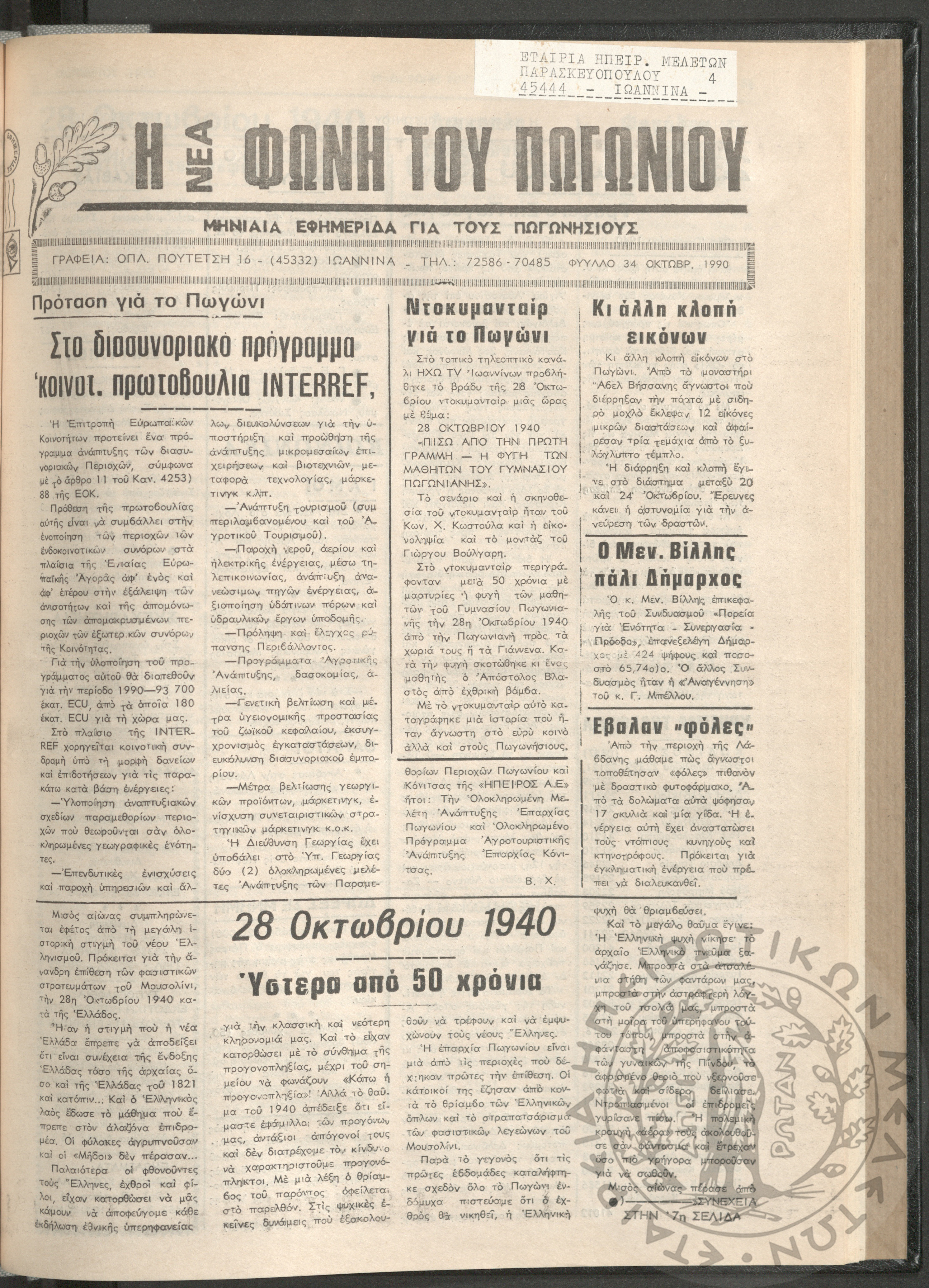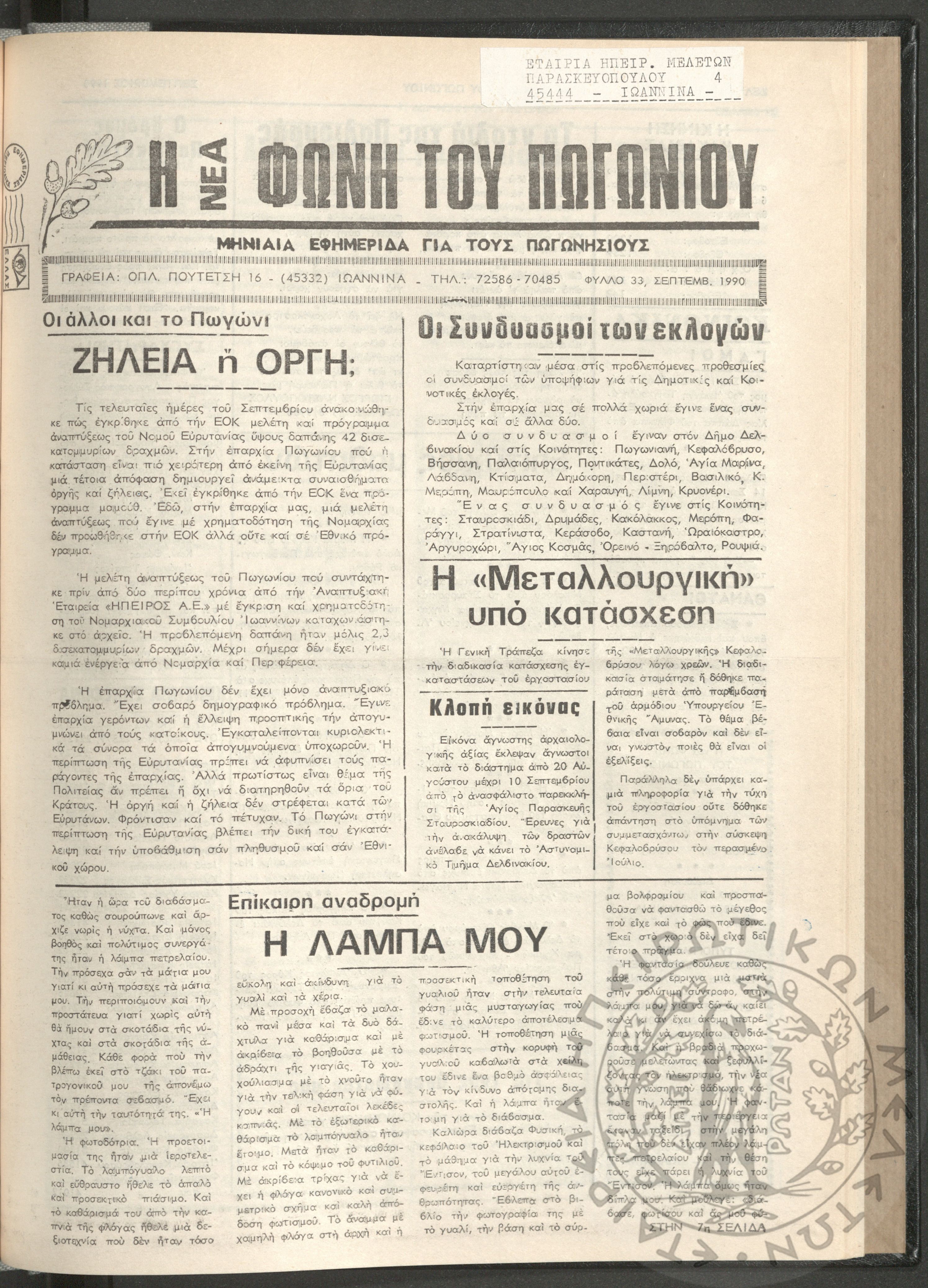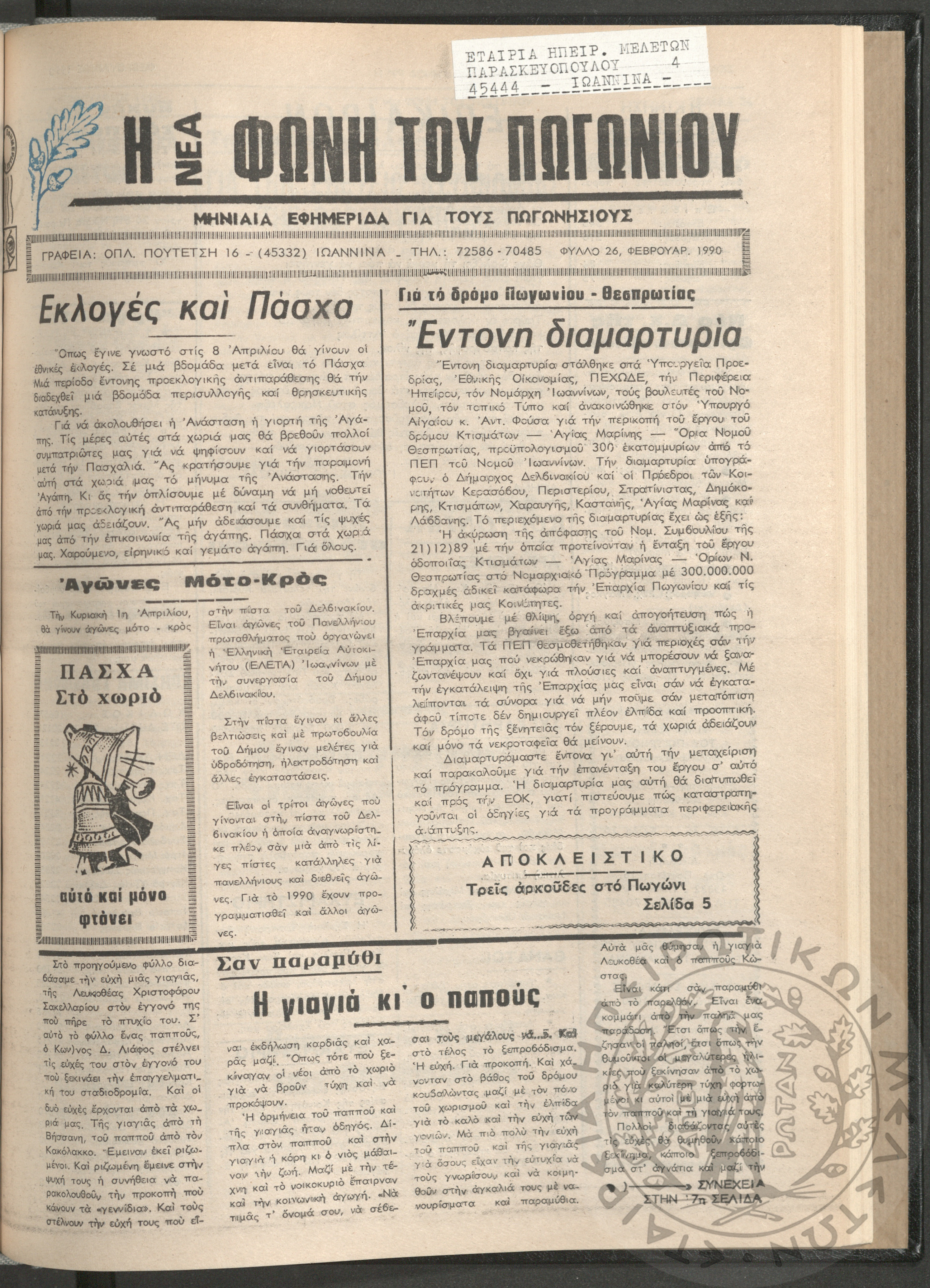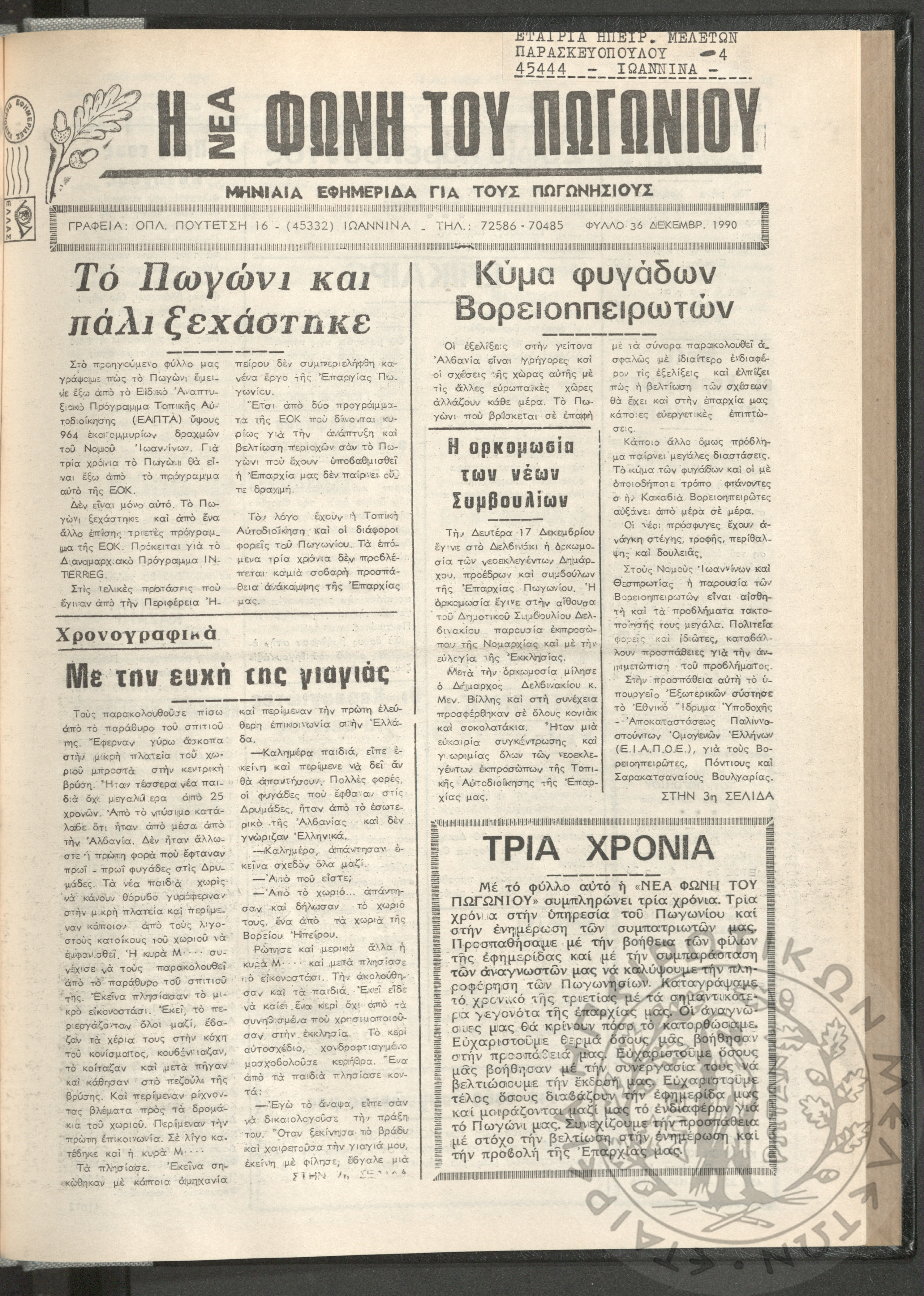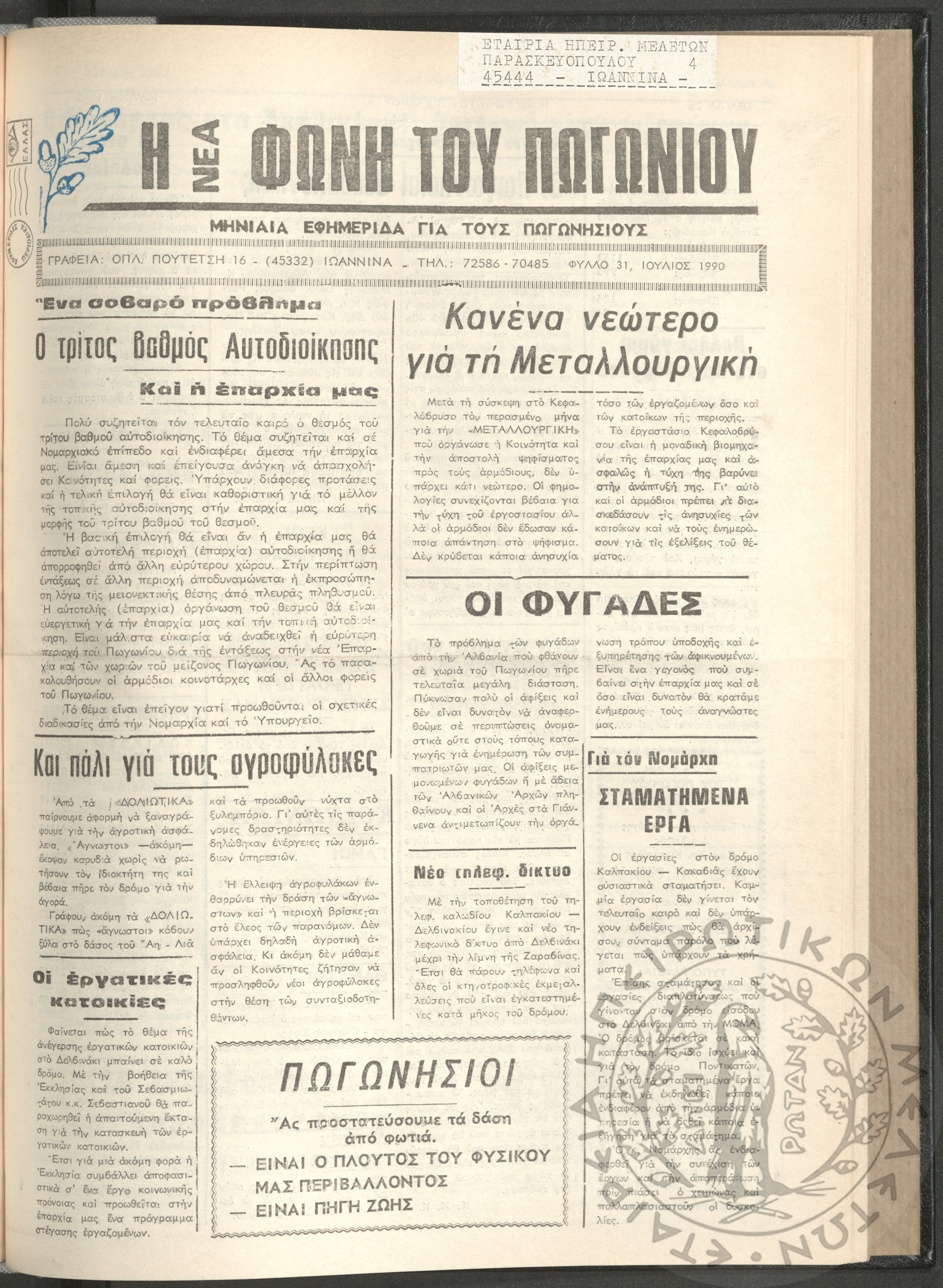 Η νέα φωνή του Πωγωνίου: μηνιαία εφημερίδα για τους Πωγωνησίους, 1990, φ. 30Κωστούλας, Κωνσταντίνος Χρ. (ε...