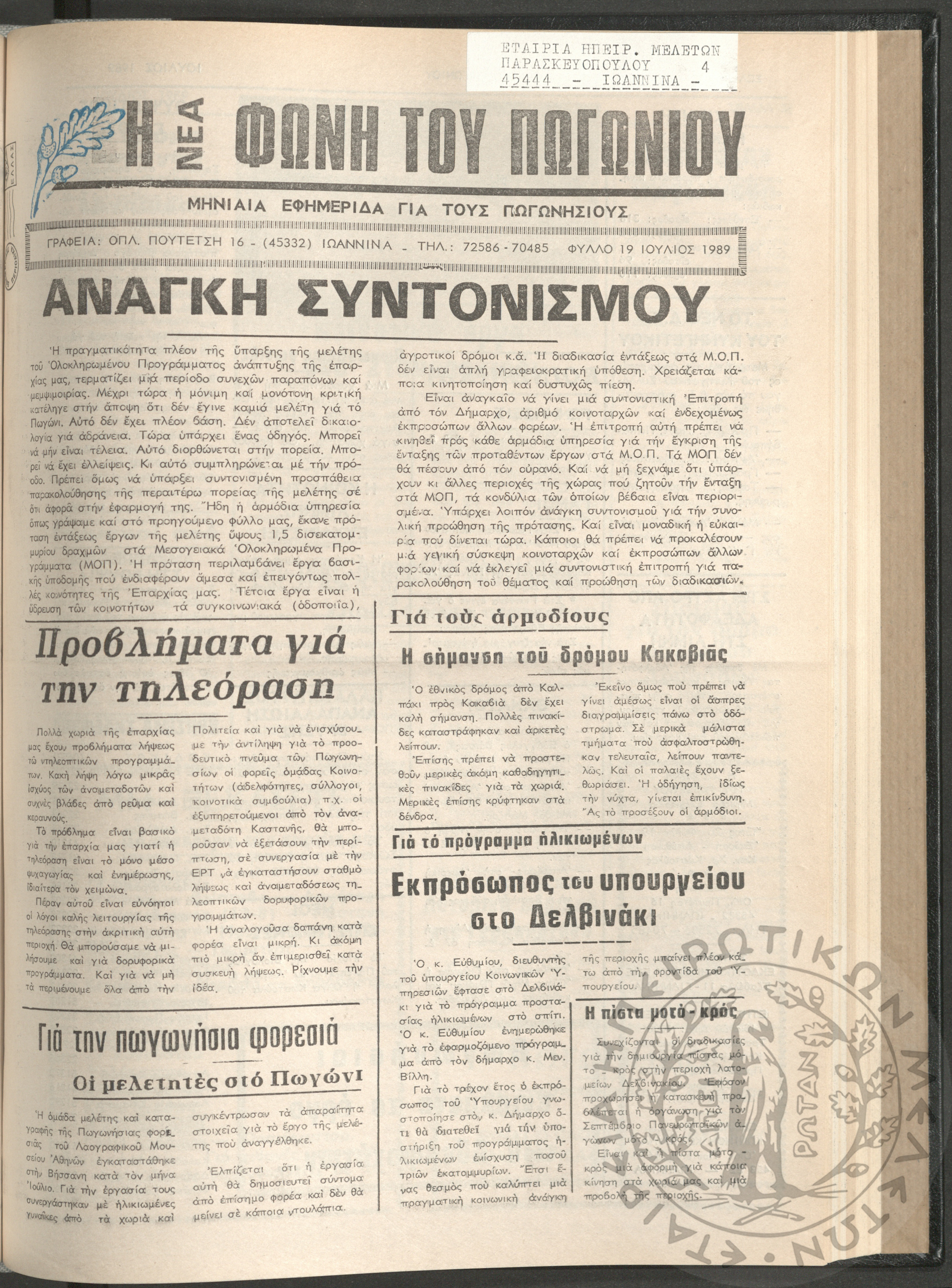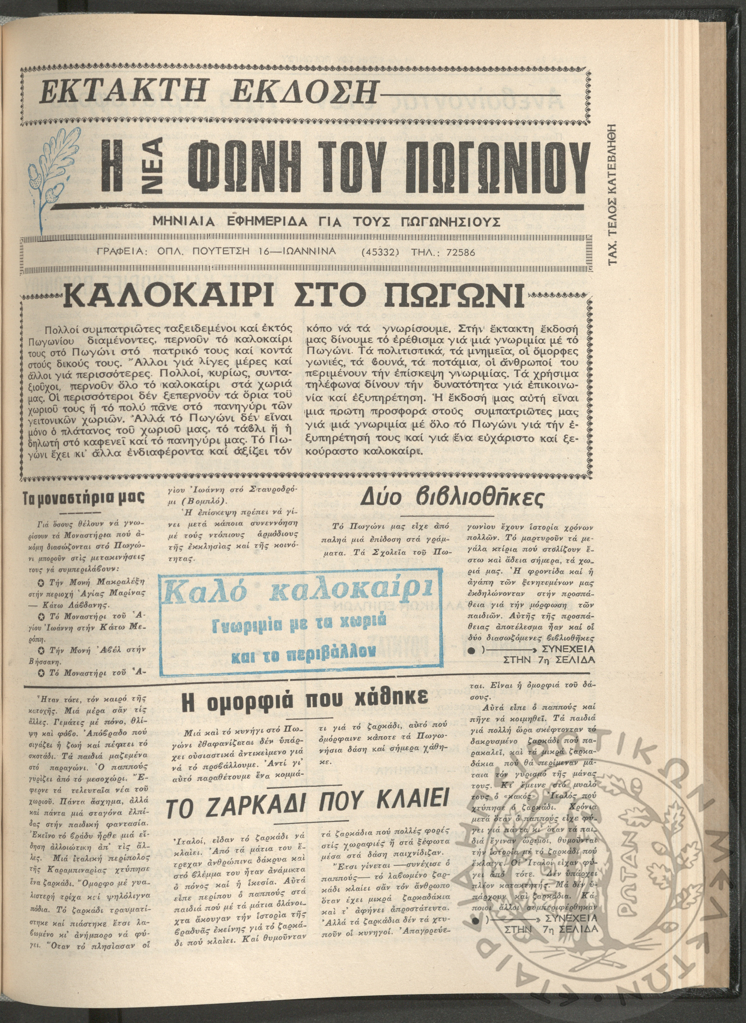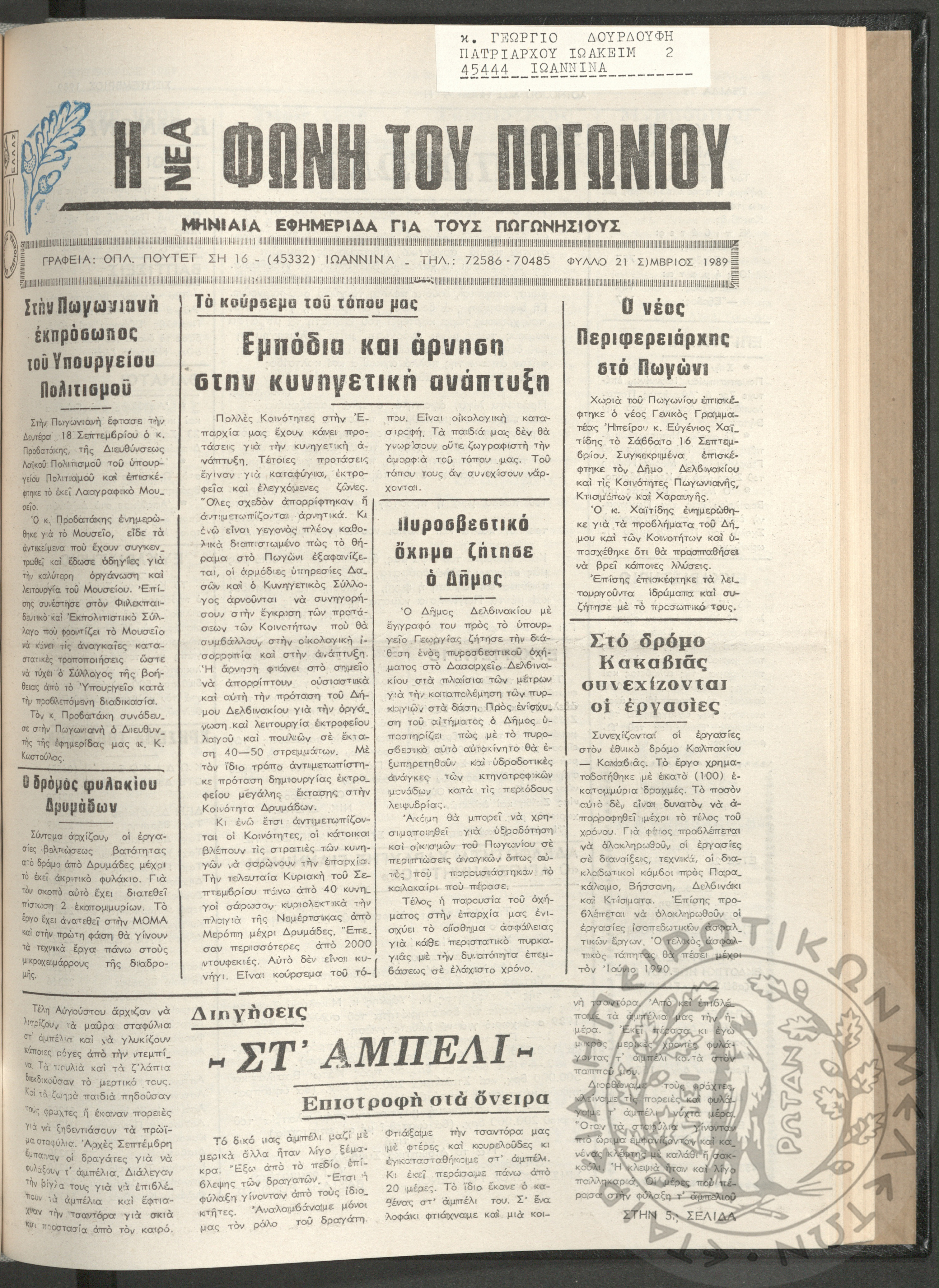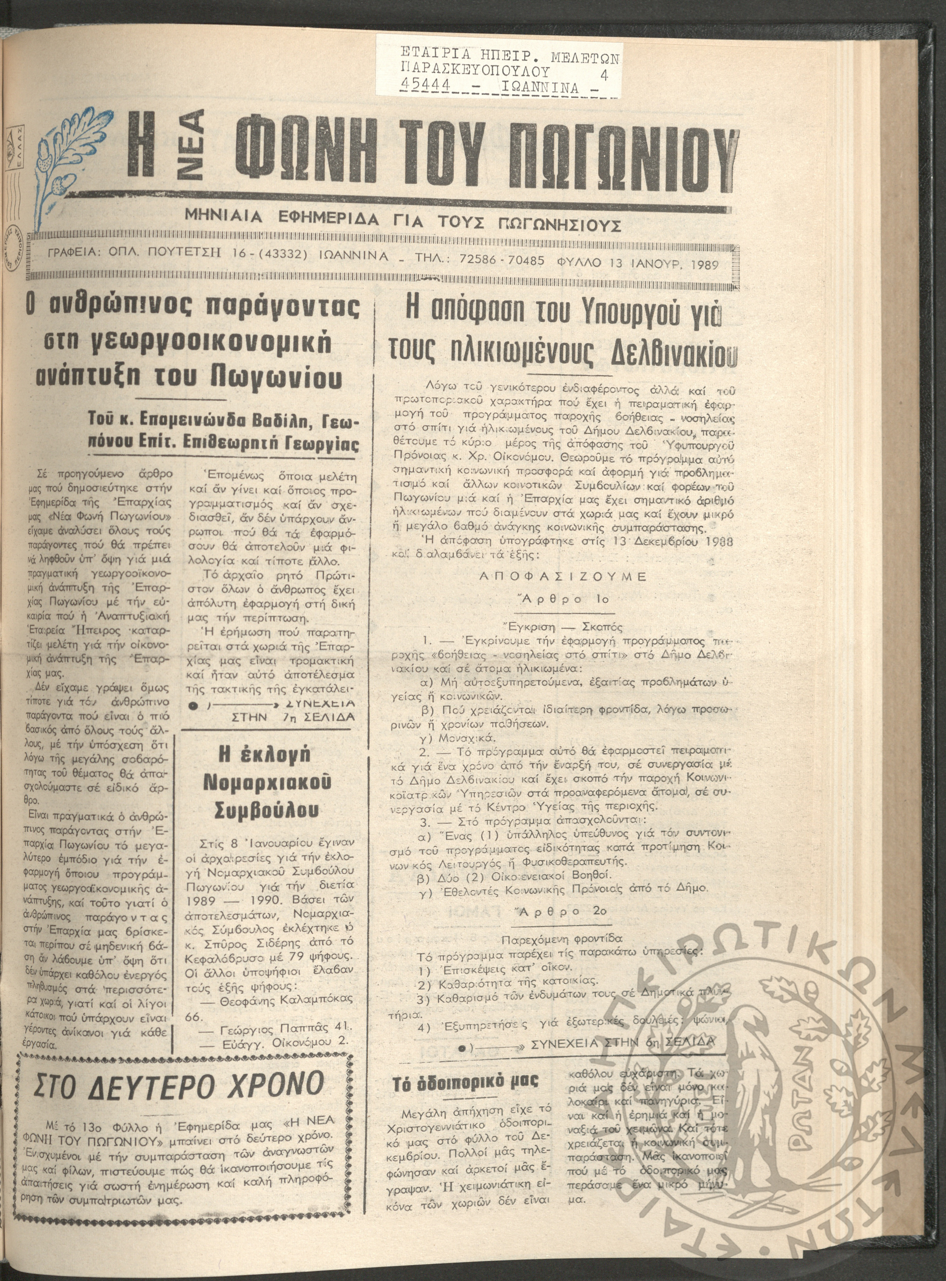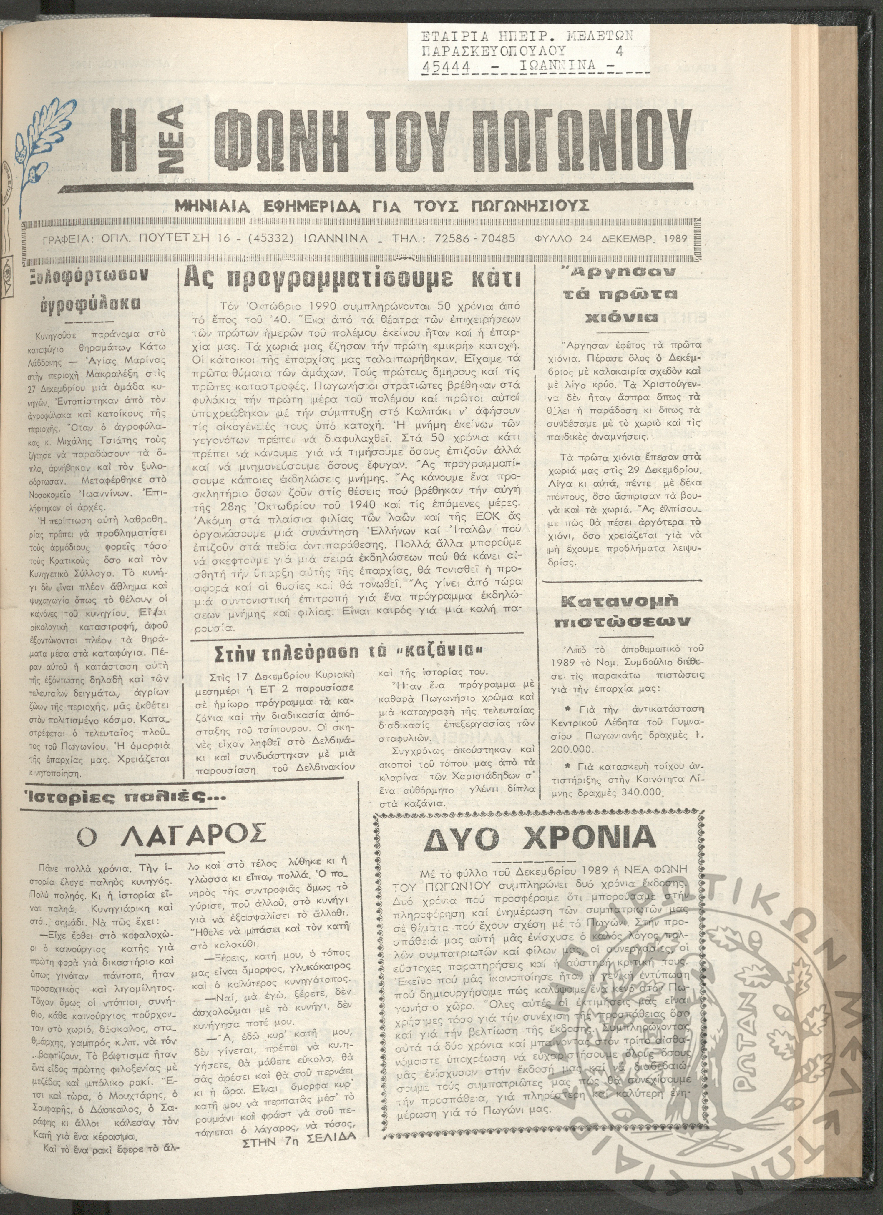 Η νέα φωνή του Πωγωνίου: μηνιαία εφημερίδα για τους Πωγωνησίους, 1990, φ. 30Κωστούλας, Κωνσταντίνος Χρ. (ε...
