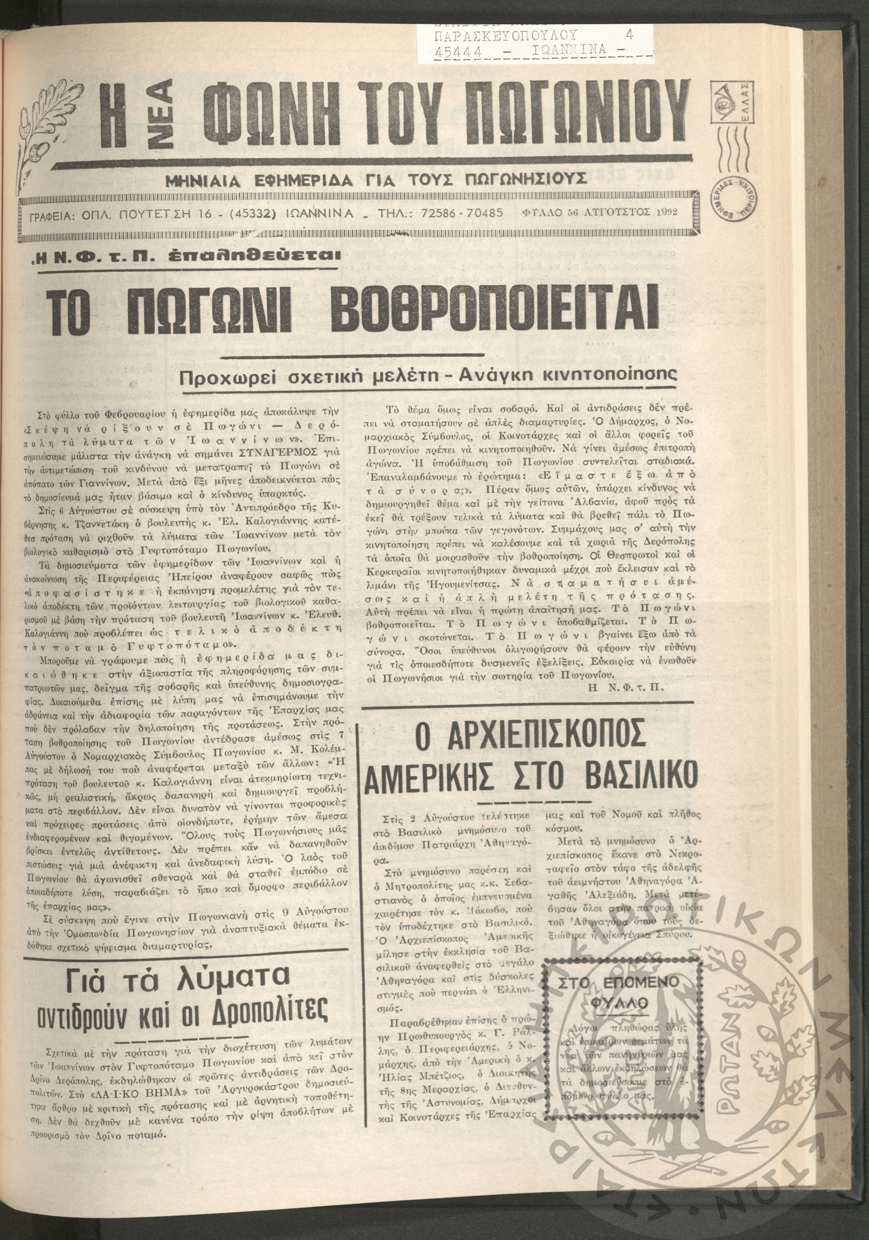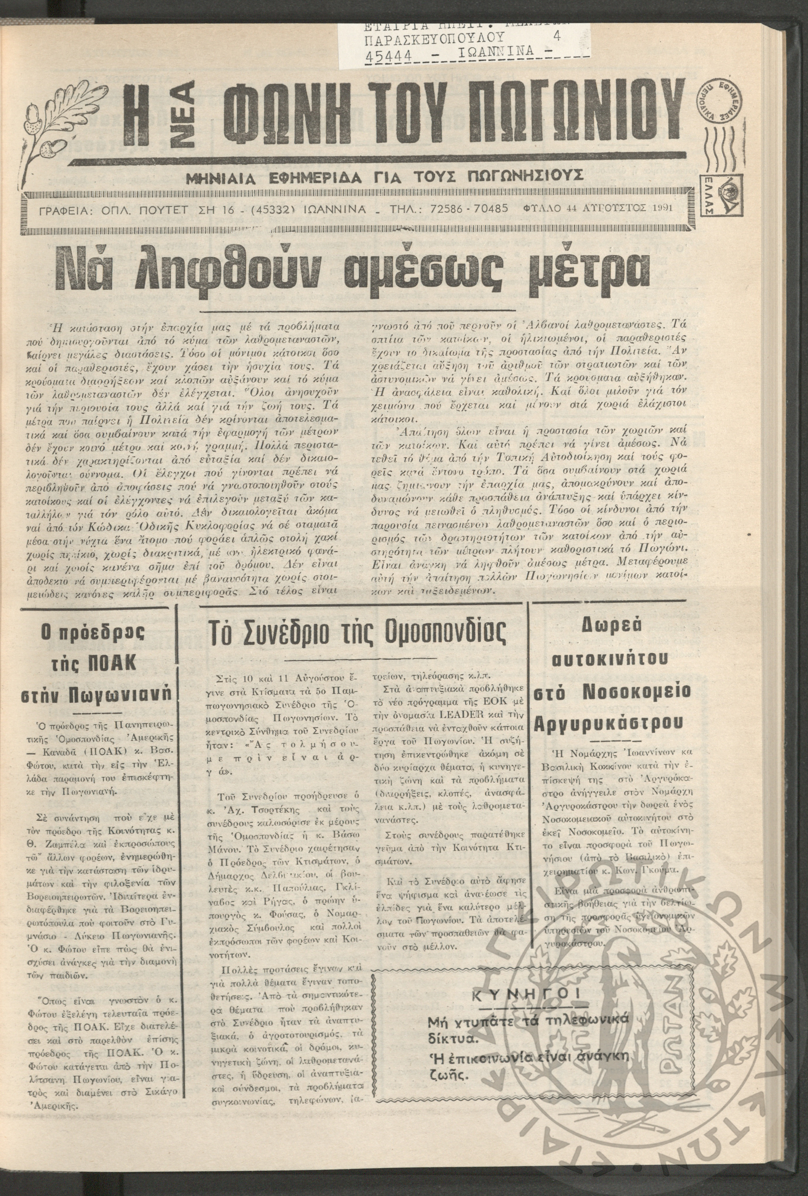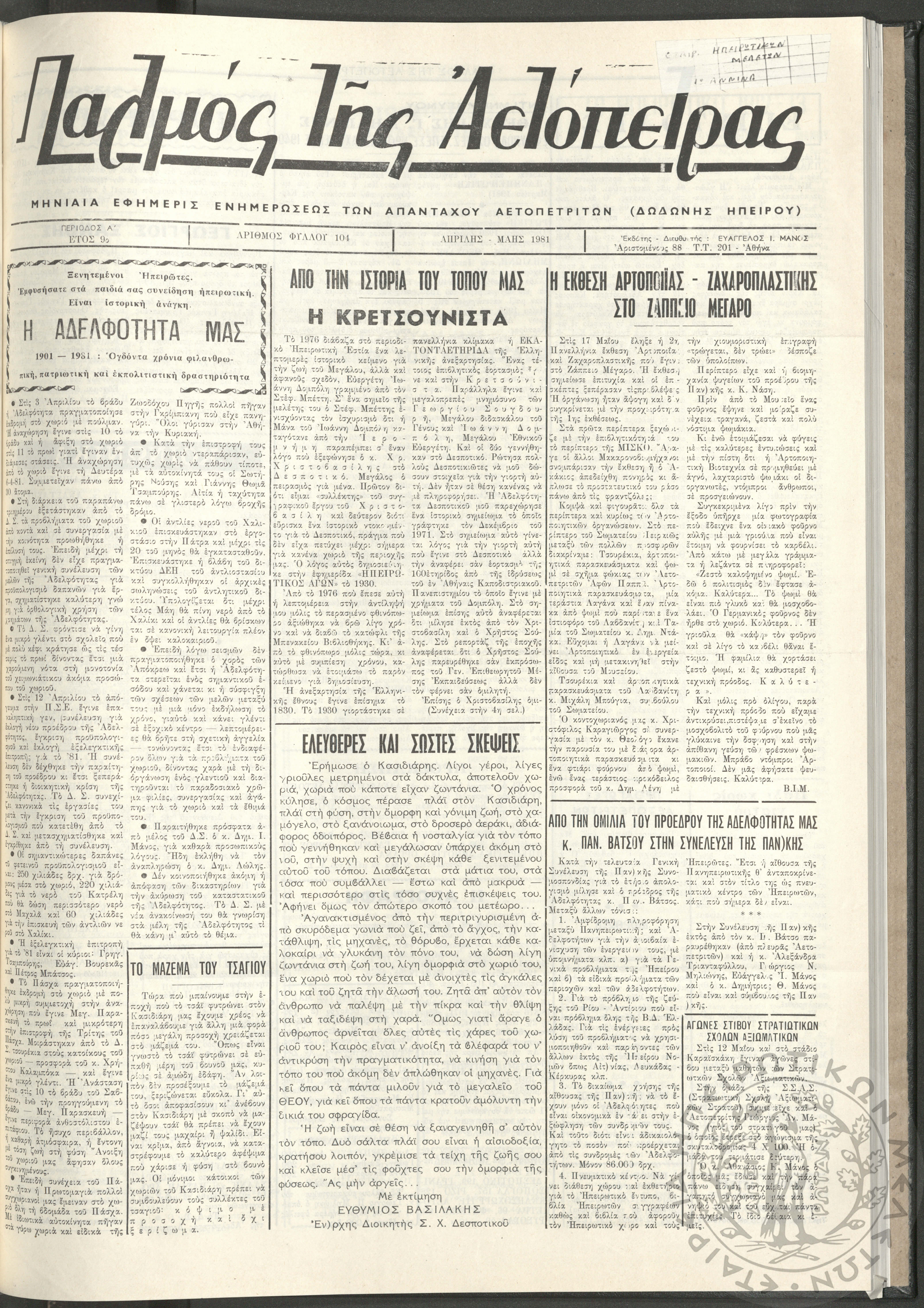 Παλμός της Αετόπετρας: Μηνιαία εφημερίς ενημερώσεως των απανταχού Αετοπετριτών (Δωδώνης Ηπείρου), 1981, φ. 104Έτος 9, φ. 104...