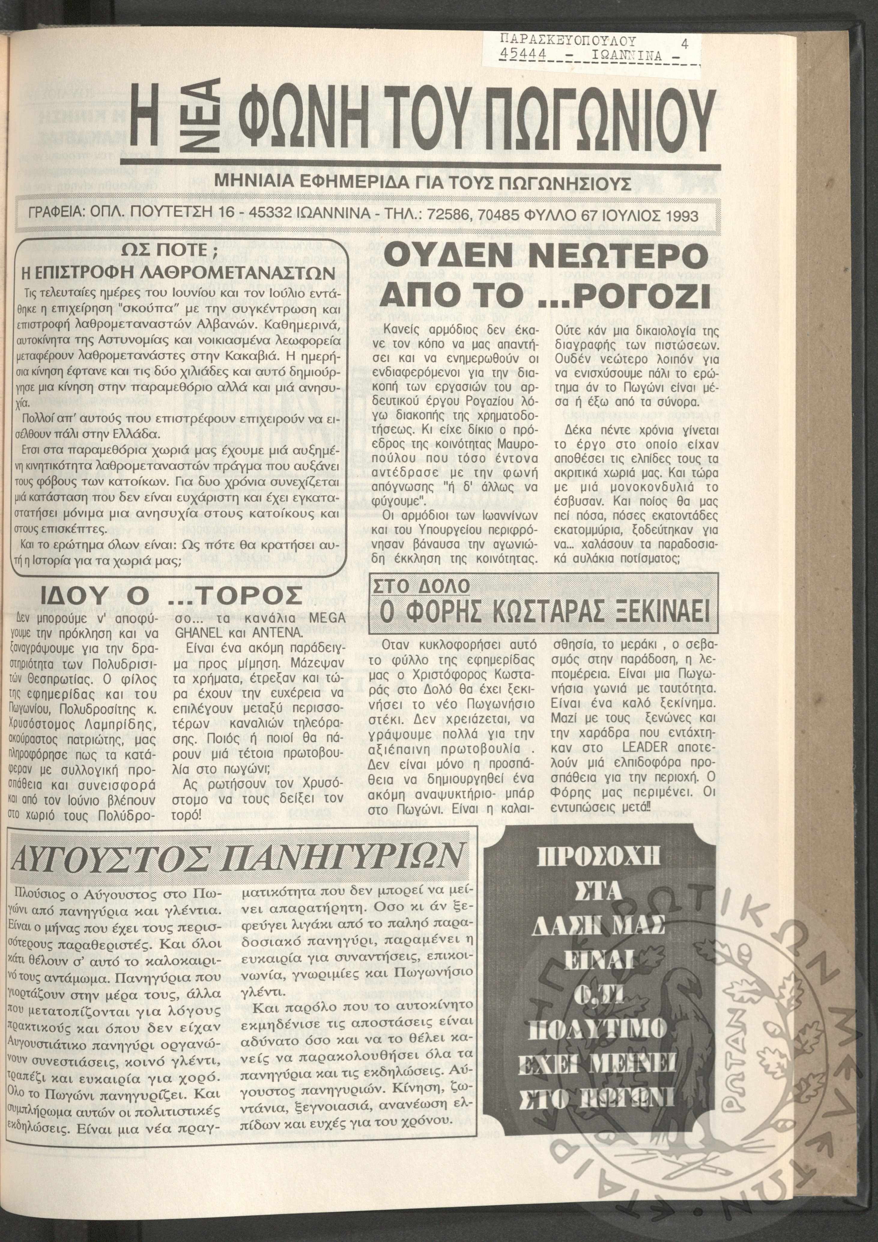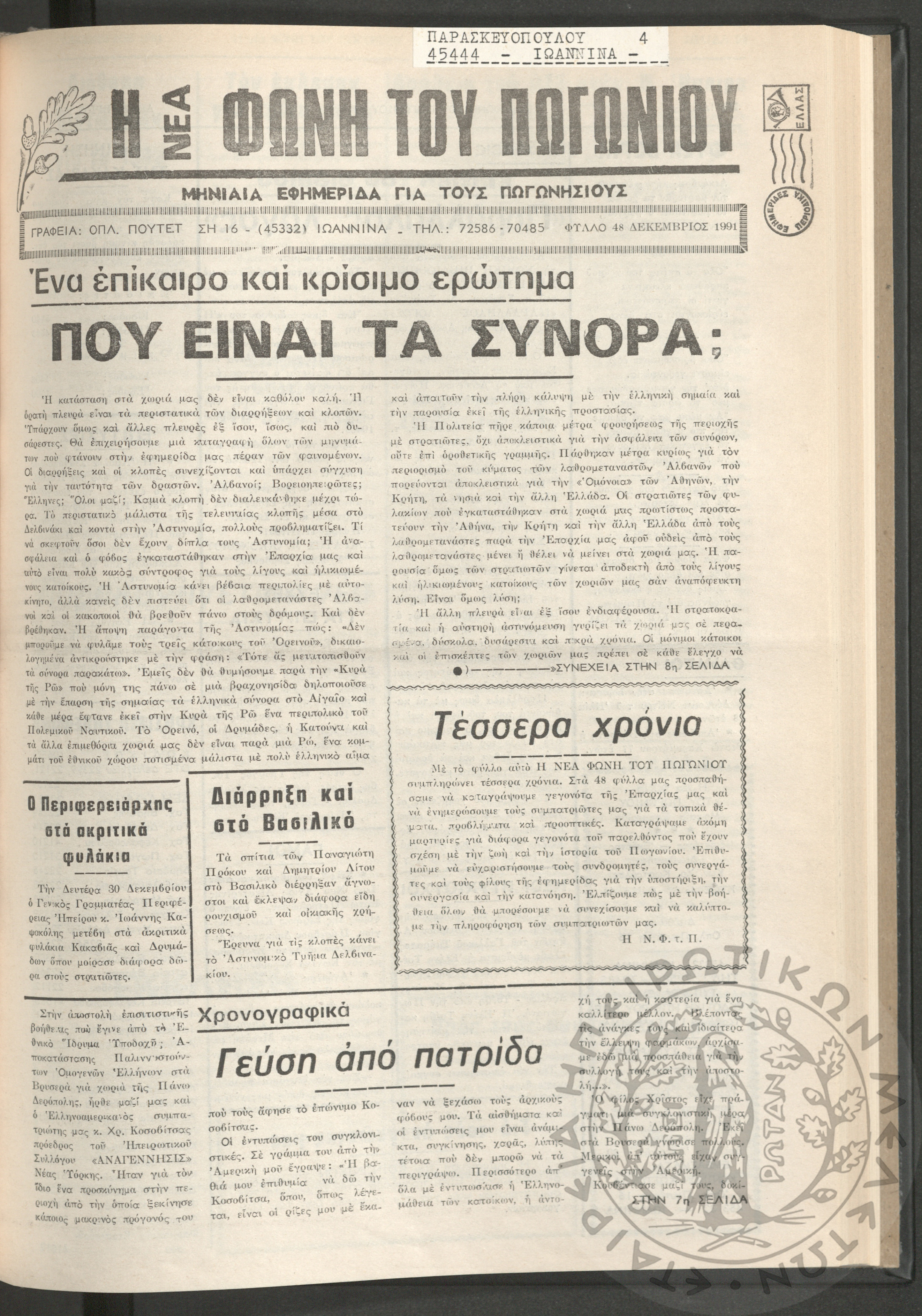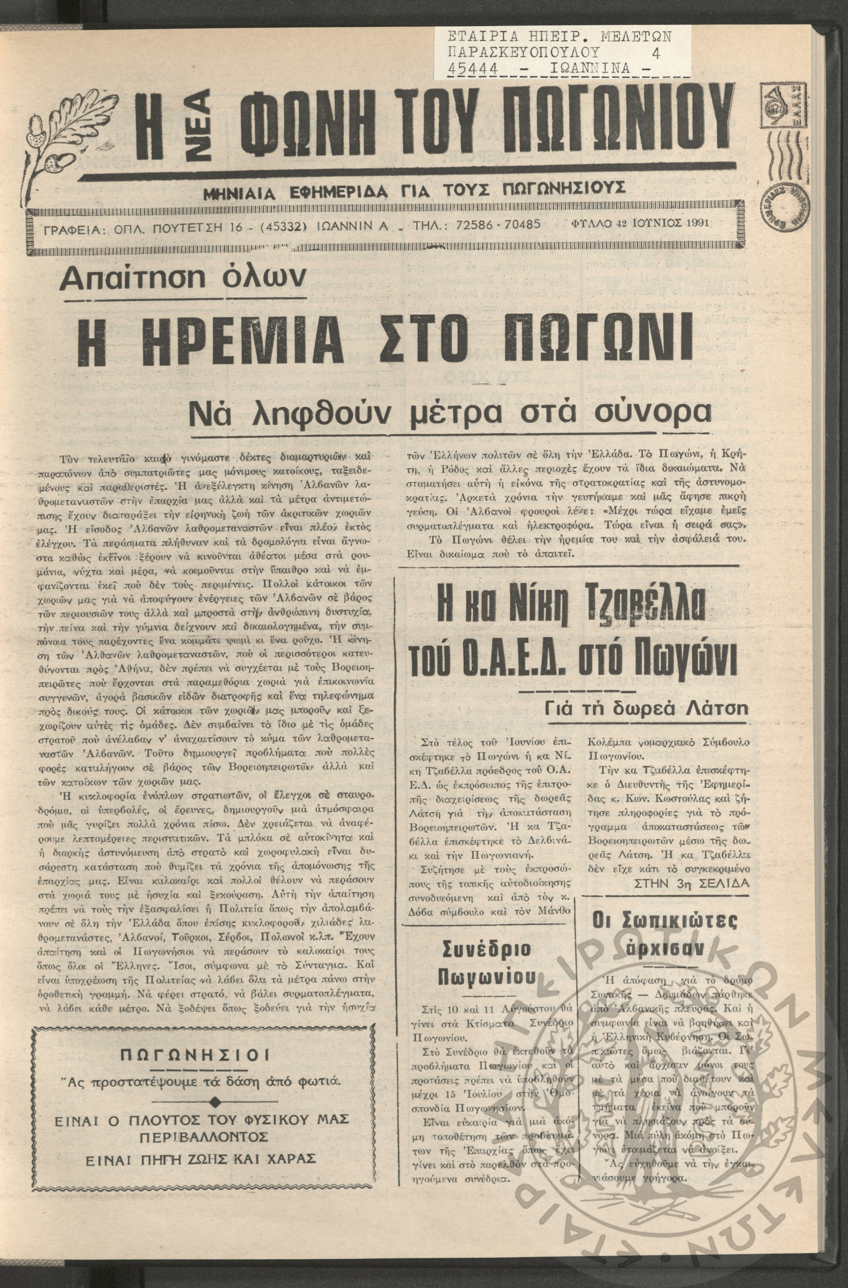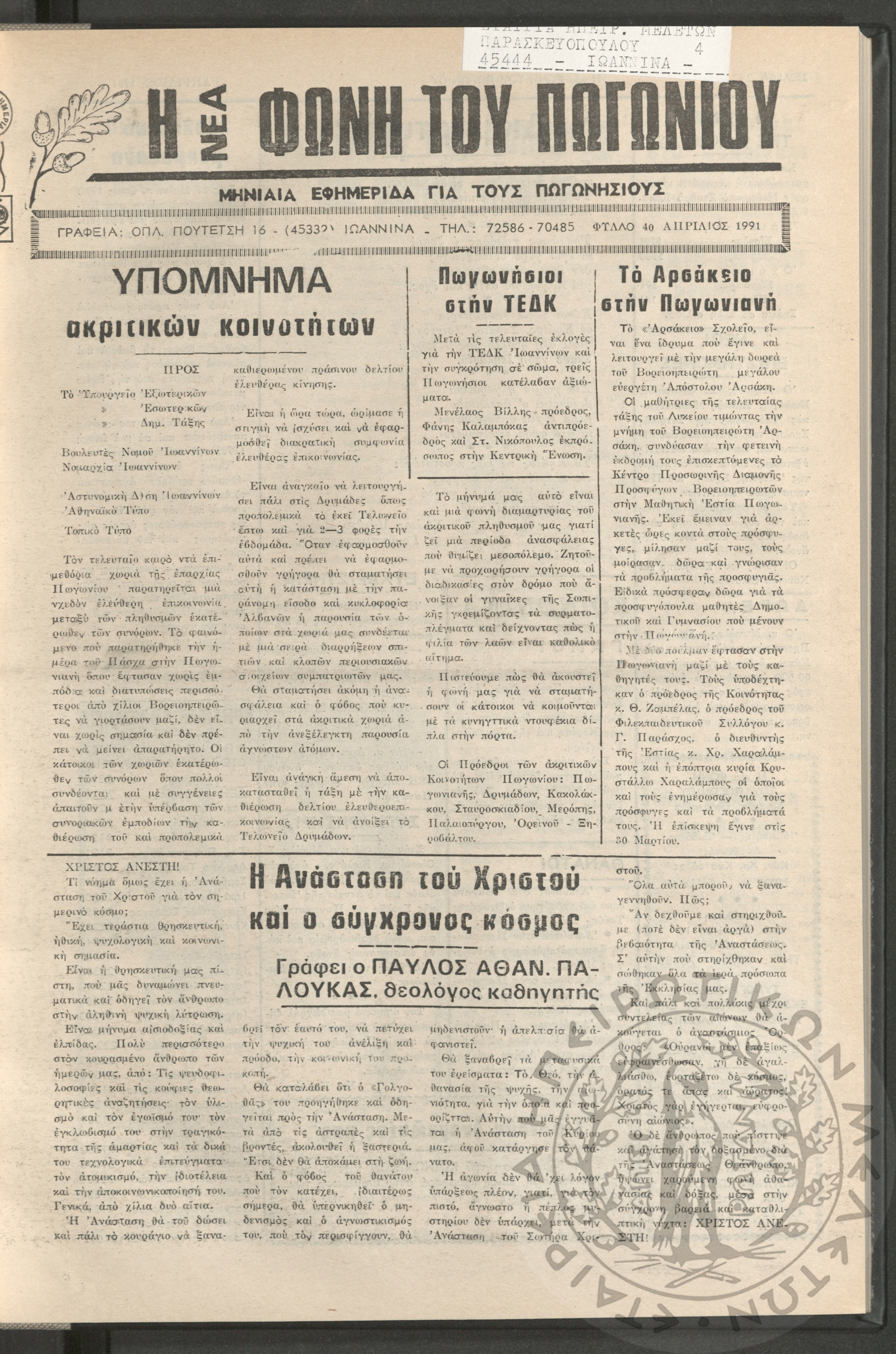 Παλμός της Αετόπετρας: Μηνιαία εφημερίς ενημερώσεως των απανταχού Αετοπετριτών (Δωδώνης Ηπείρου), 1981, φ. 104Έτος 9, φ. 104...