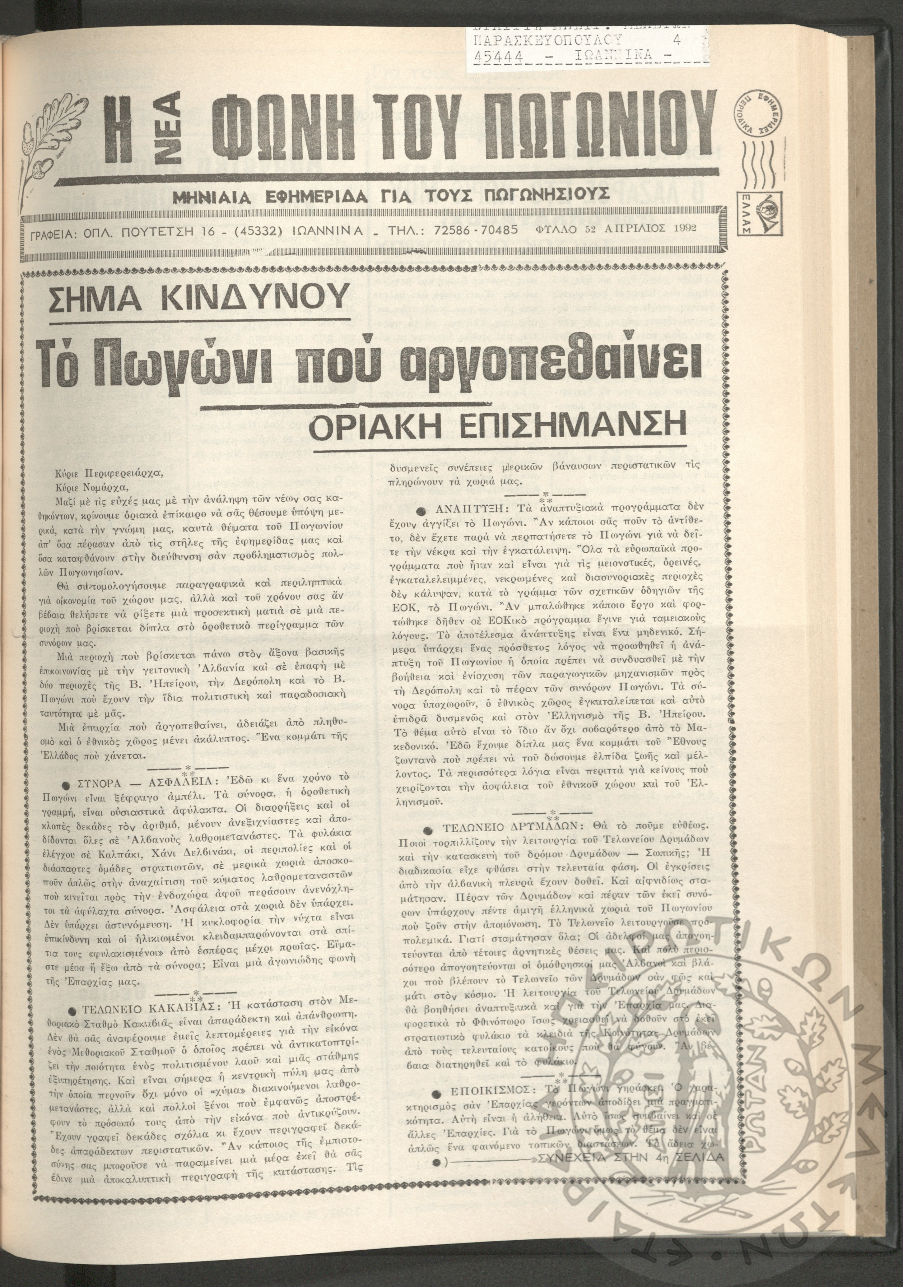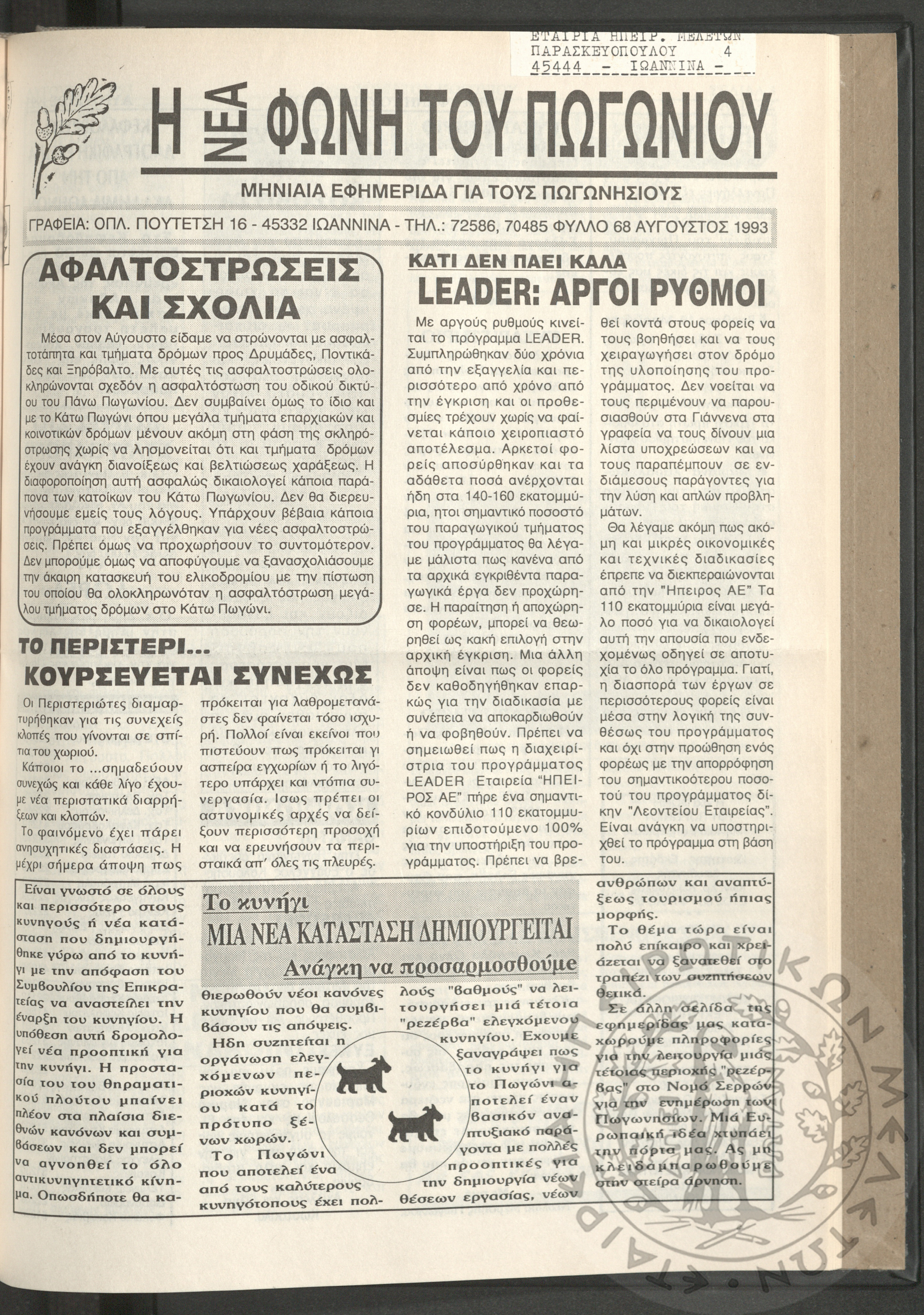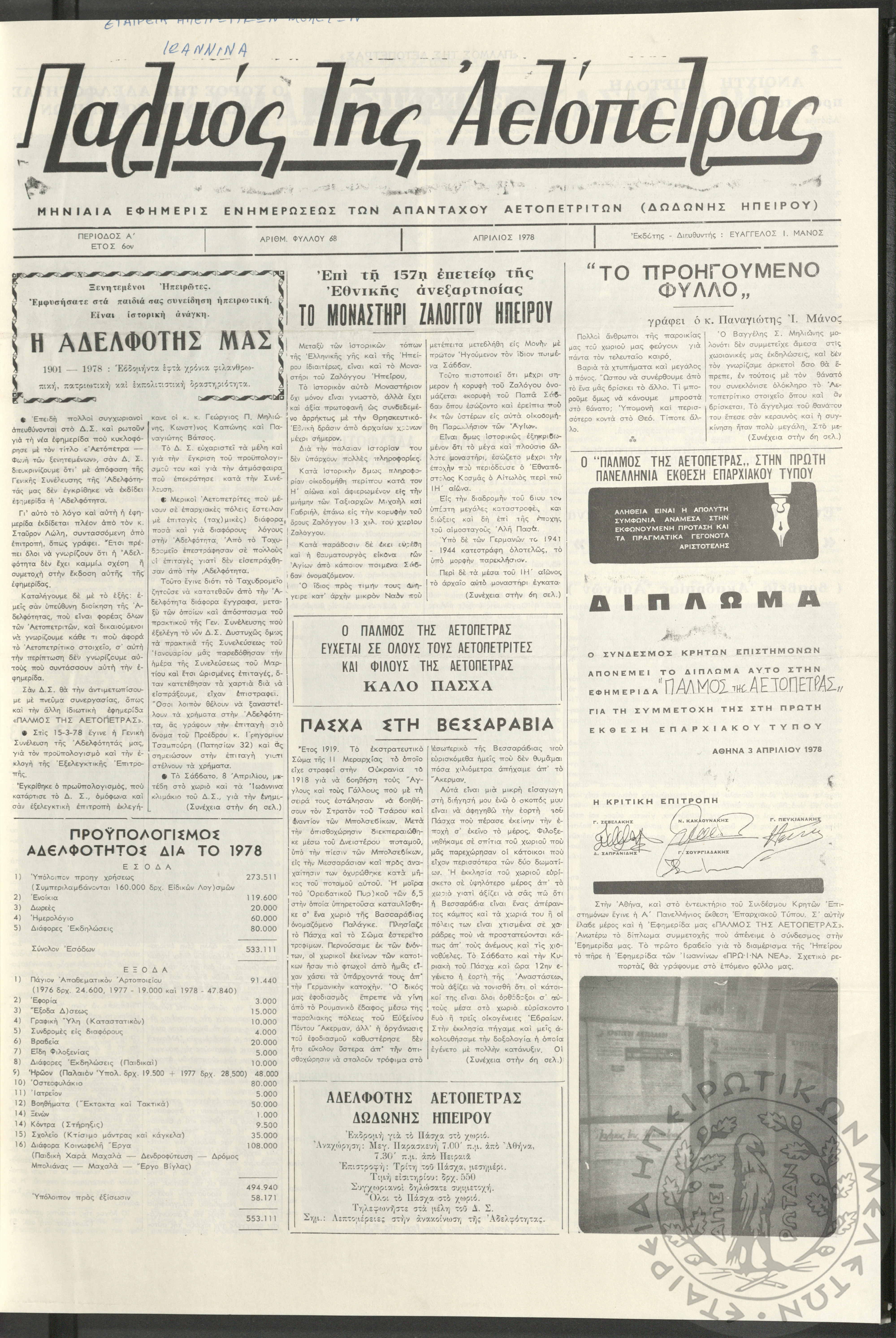 Παλμός της Αετόπετρας: Μηνιαία εφημερίς ενημερώσεως των απανταχού Αετοπετριτών (Δωδώνης Ηπείρου), 1978, φ. 68Έτος 6, φ. 68...