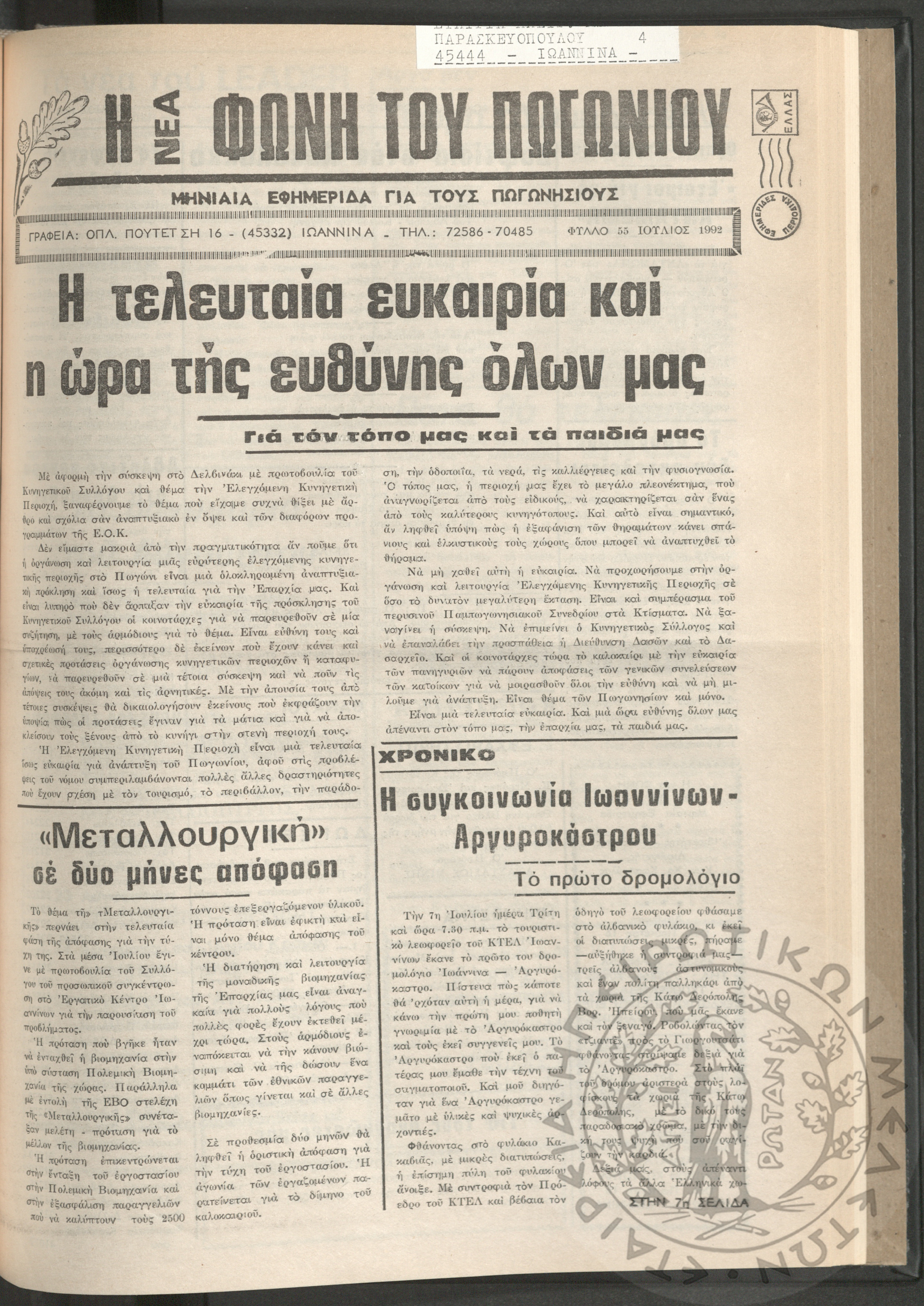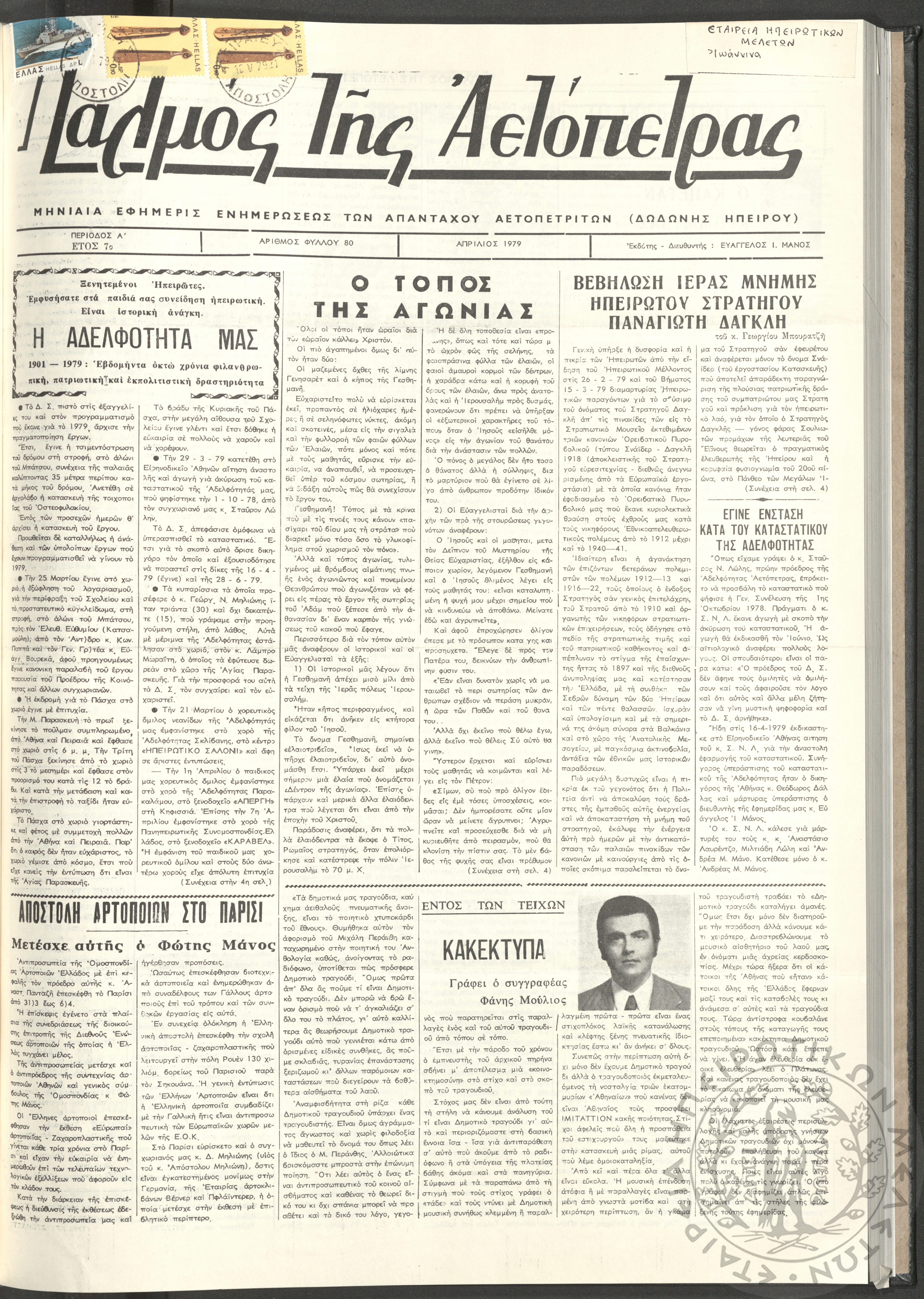Παλμός της Αετόπετρας: Μηνιαία εφημερίς ενημερώσεως των απανταχού Αετοπετριτών (Δωδώνης Ηπείρου), 1979, φ. 80Έτος 7, φ. 80...