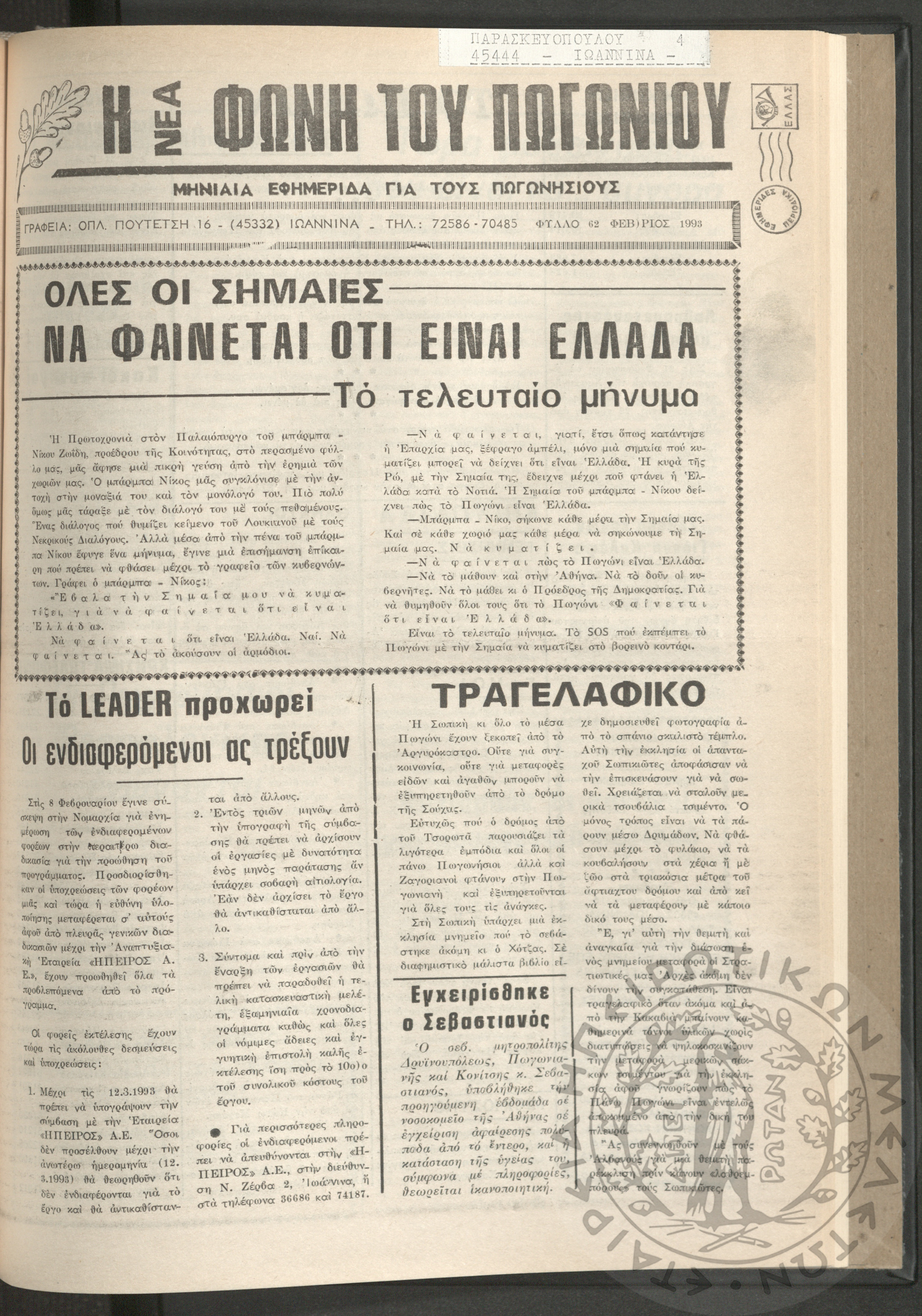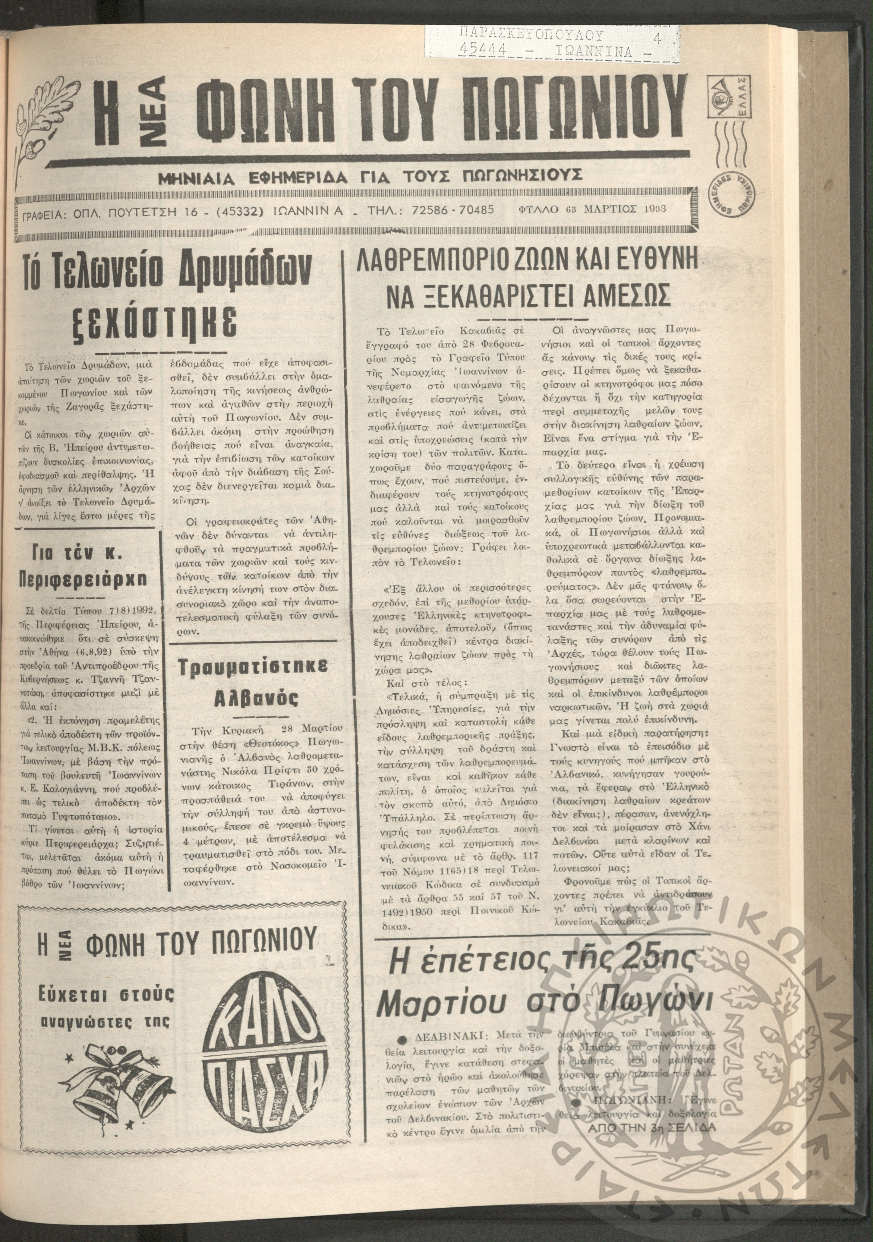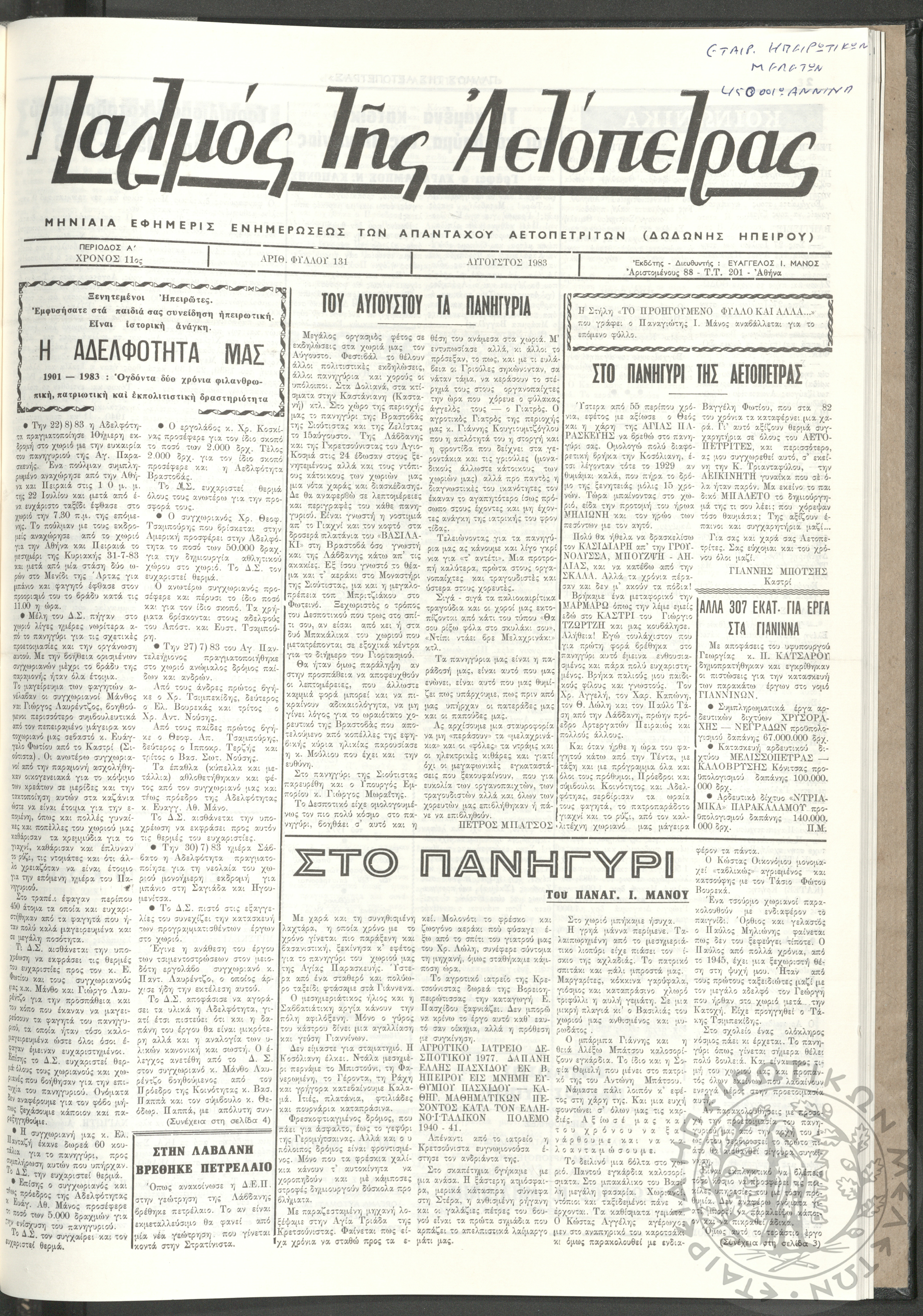 Παλμός της Αετόπετρας: Μηνιαία εφημερίς ενημερώσεως των απανταχού Αετοπετριτών (Δωδώνης Ηπείρου), 1983, φ. 131Έτος 11, φ. 131...