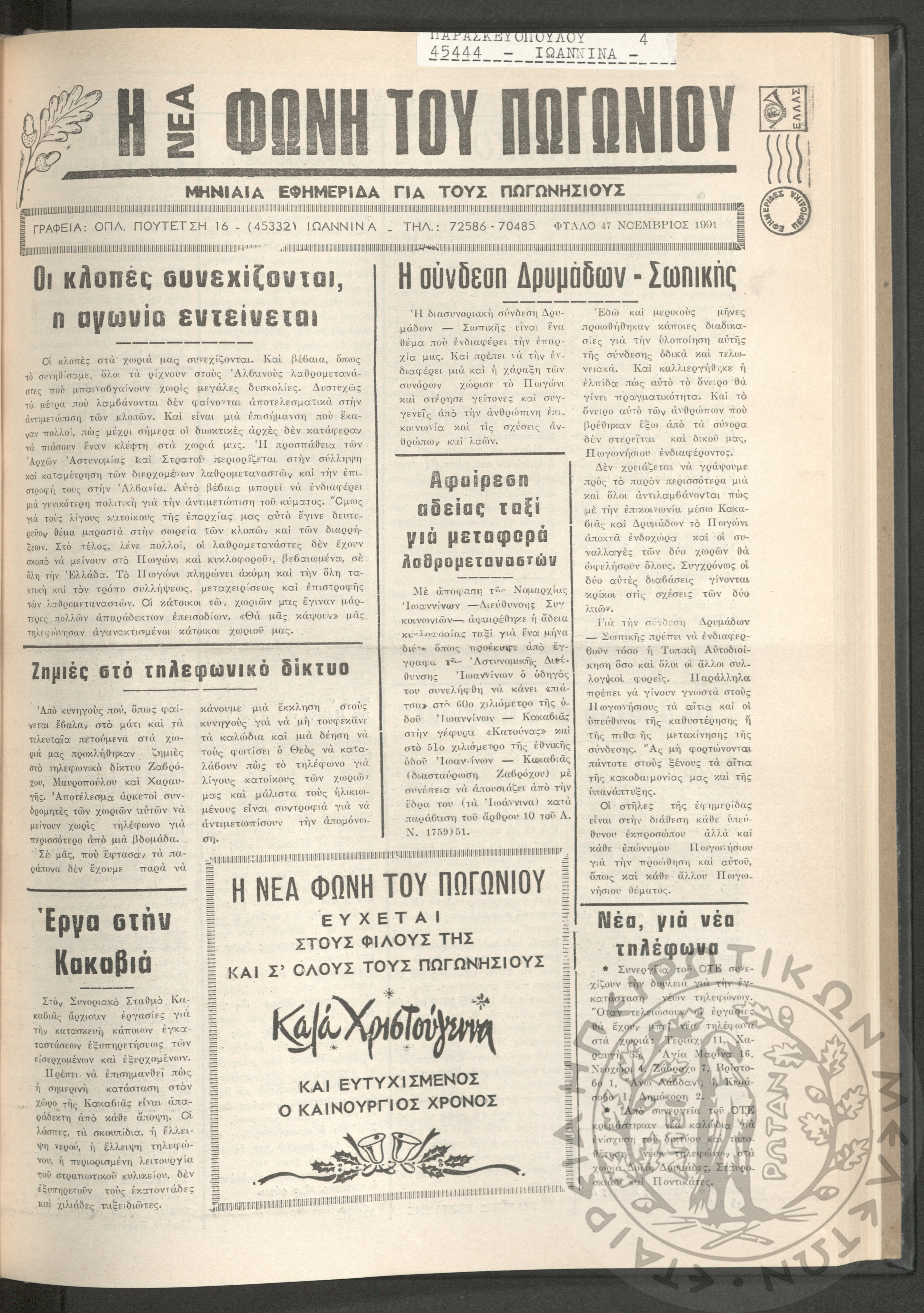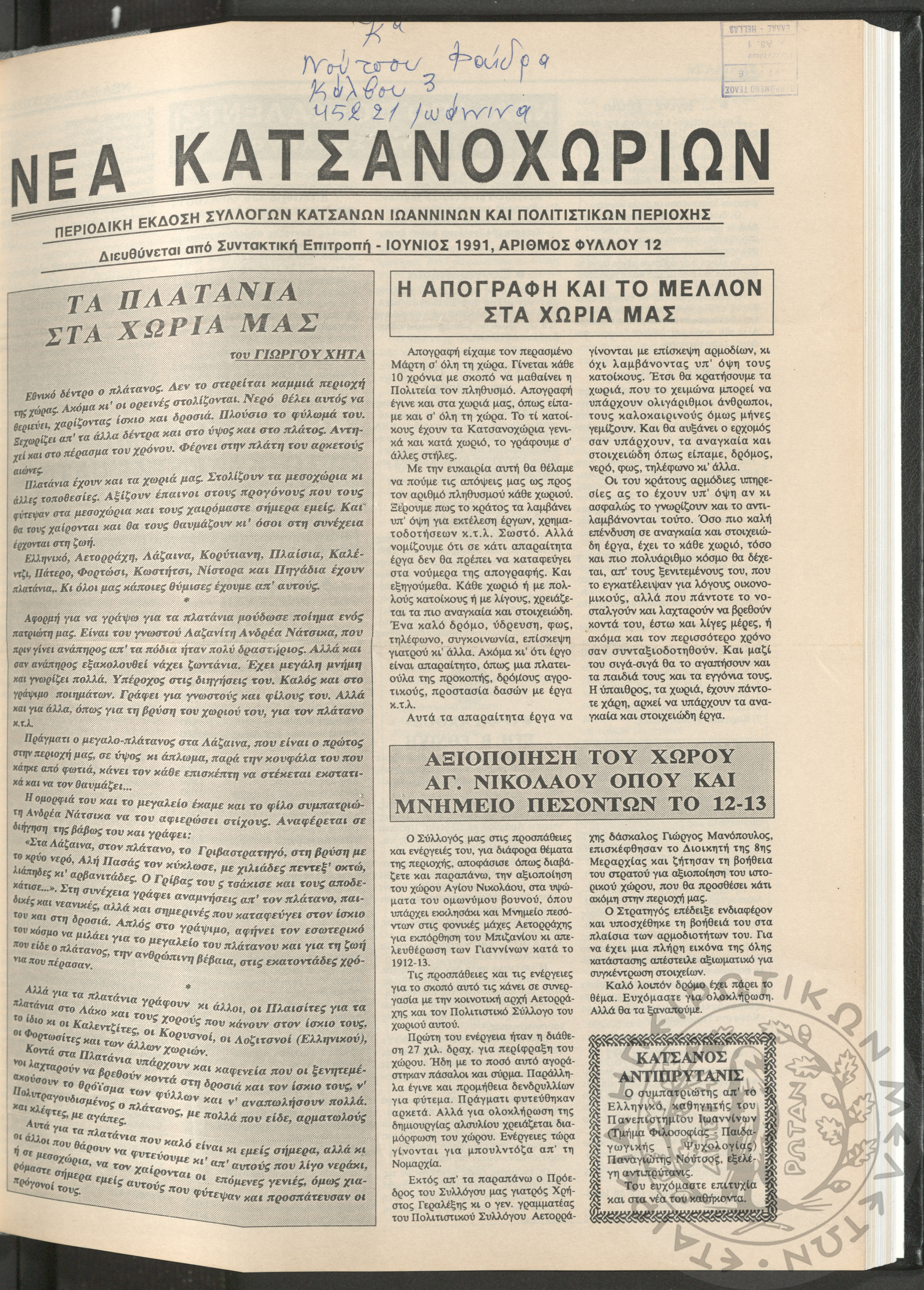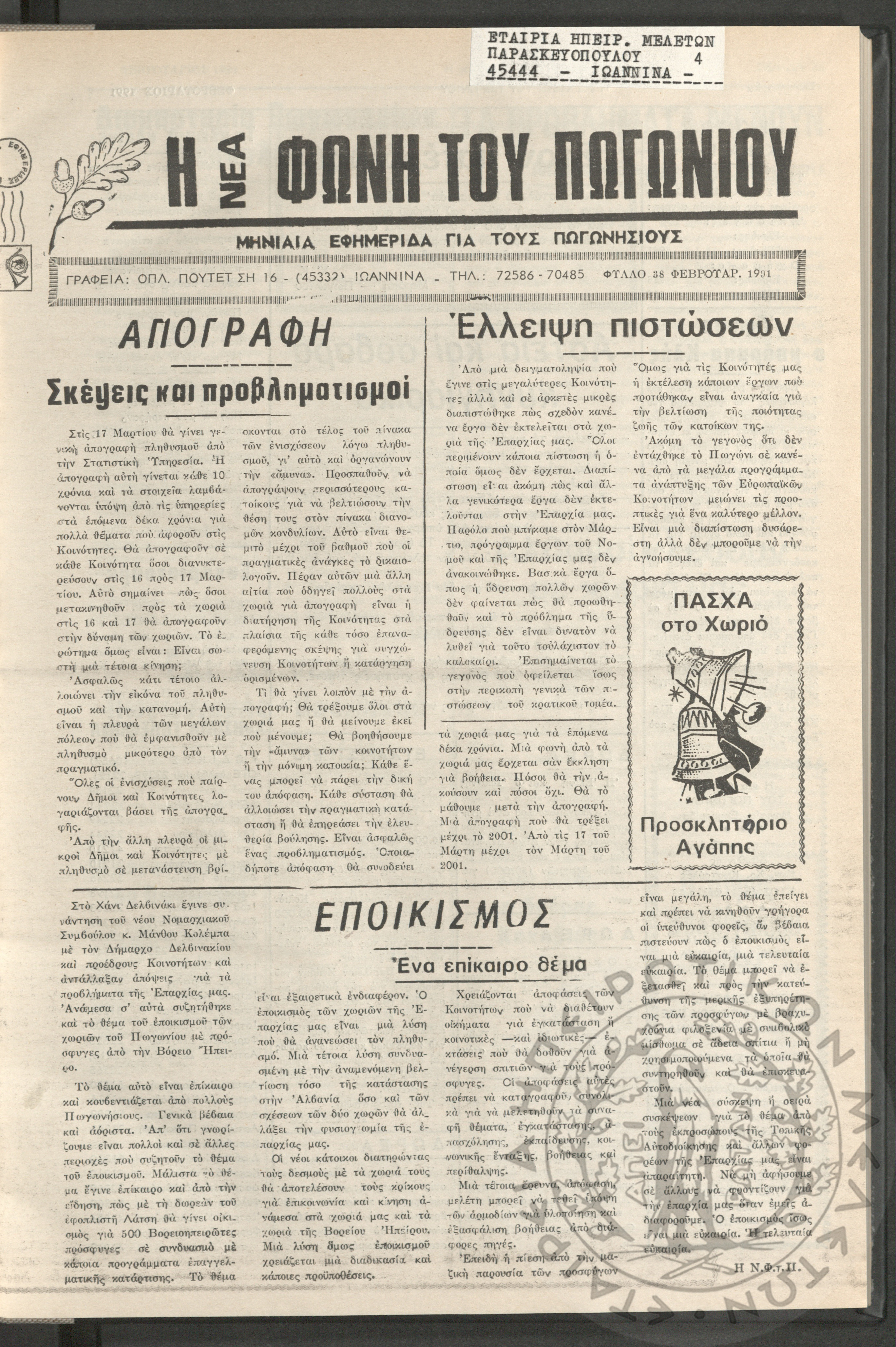 Παλμός της Αετόπετρας: Μηνιαία εφημερίς ενημερώσεως των απανταχού Αετοπετριτών (Δωδώνης Ηπείρου), 1981, φ. 111Έτος 10, φ. 111...