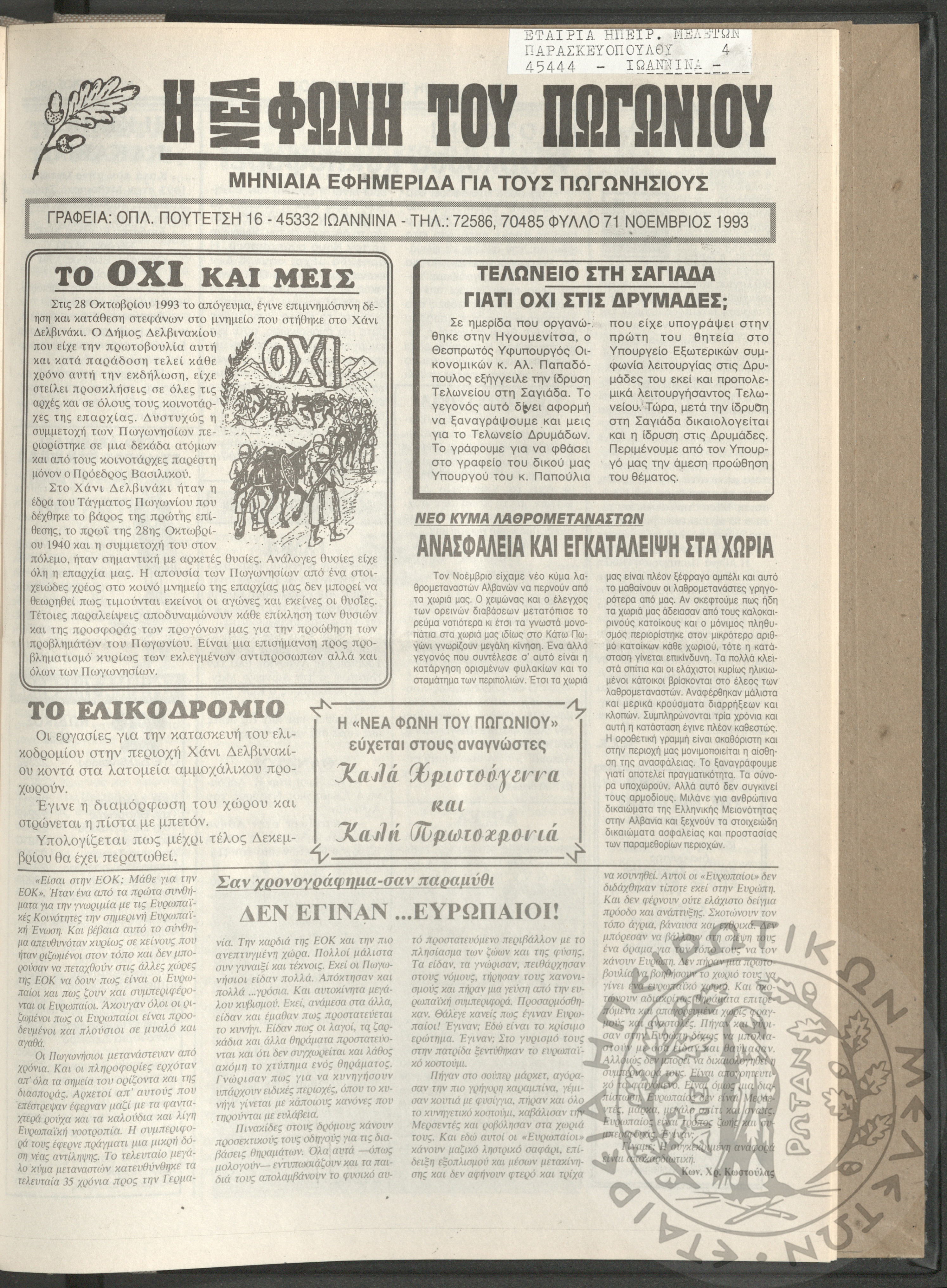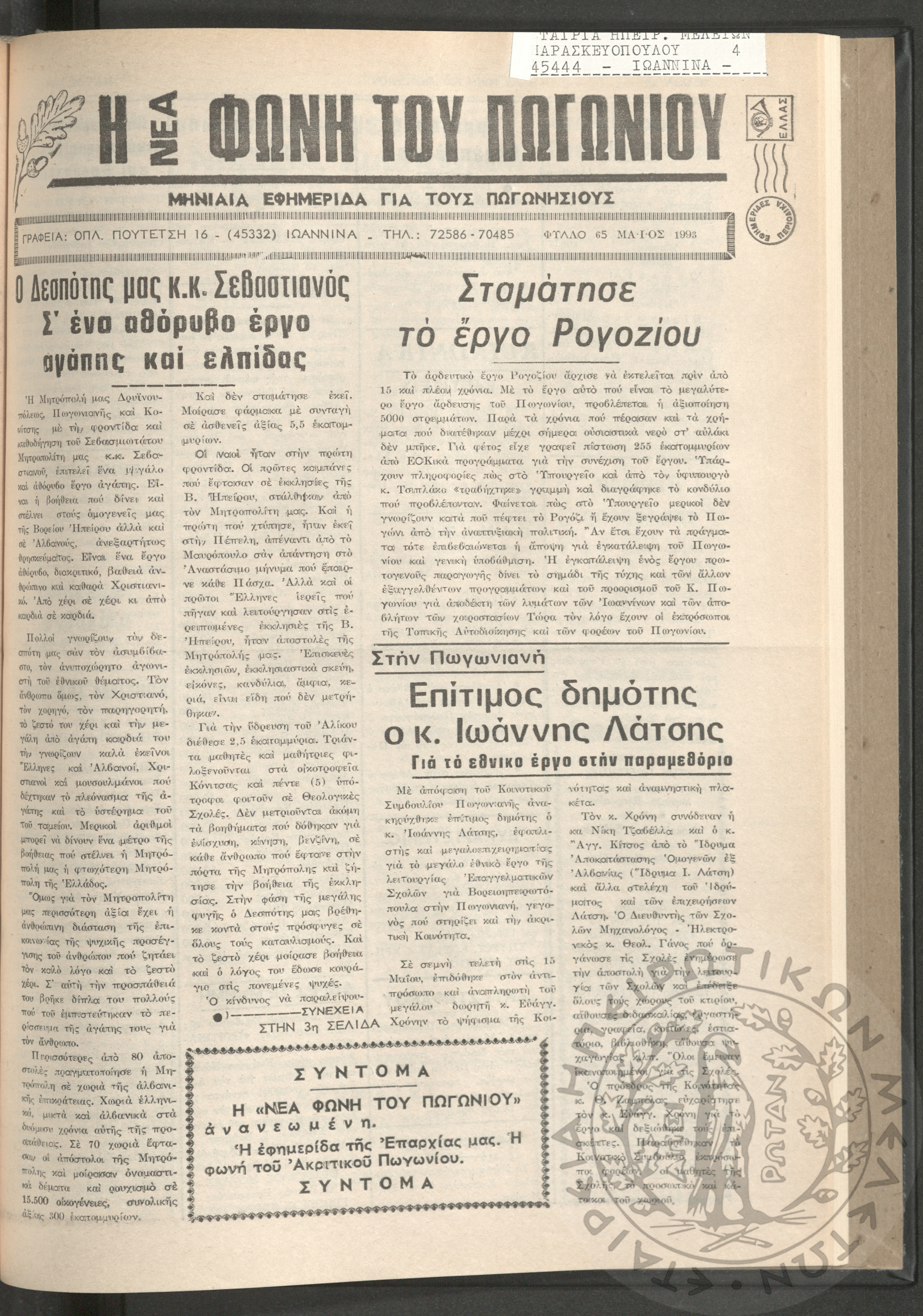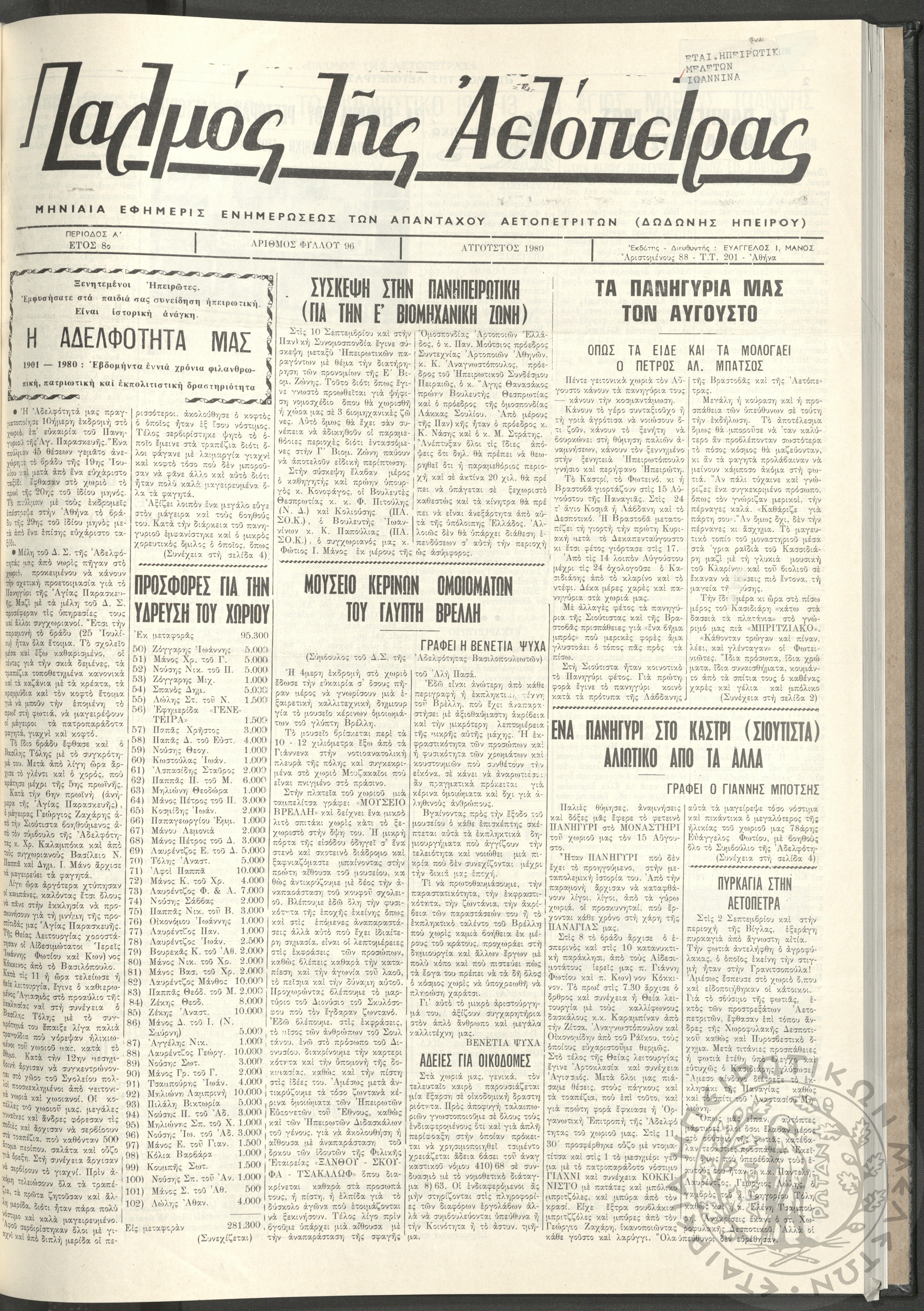 Παλμός της Αετόπετρας: Μηνιαία εφημερίς ενημερώσεως των απανταχού Αετοπετριτών (Δωδώνης Ηπείρου), 1980, φ. 96Έτος 8, φ. 96...