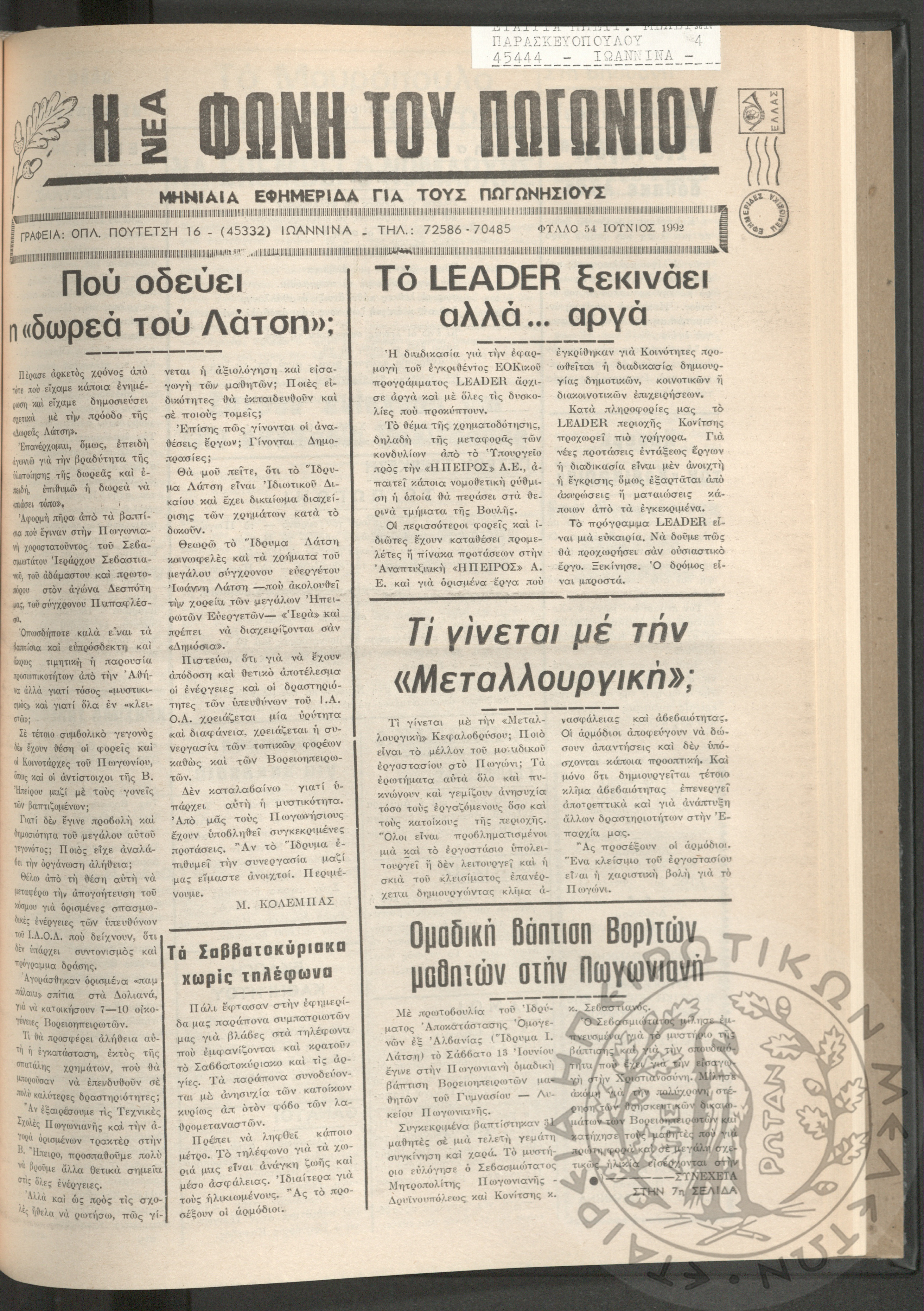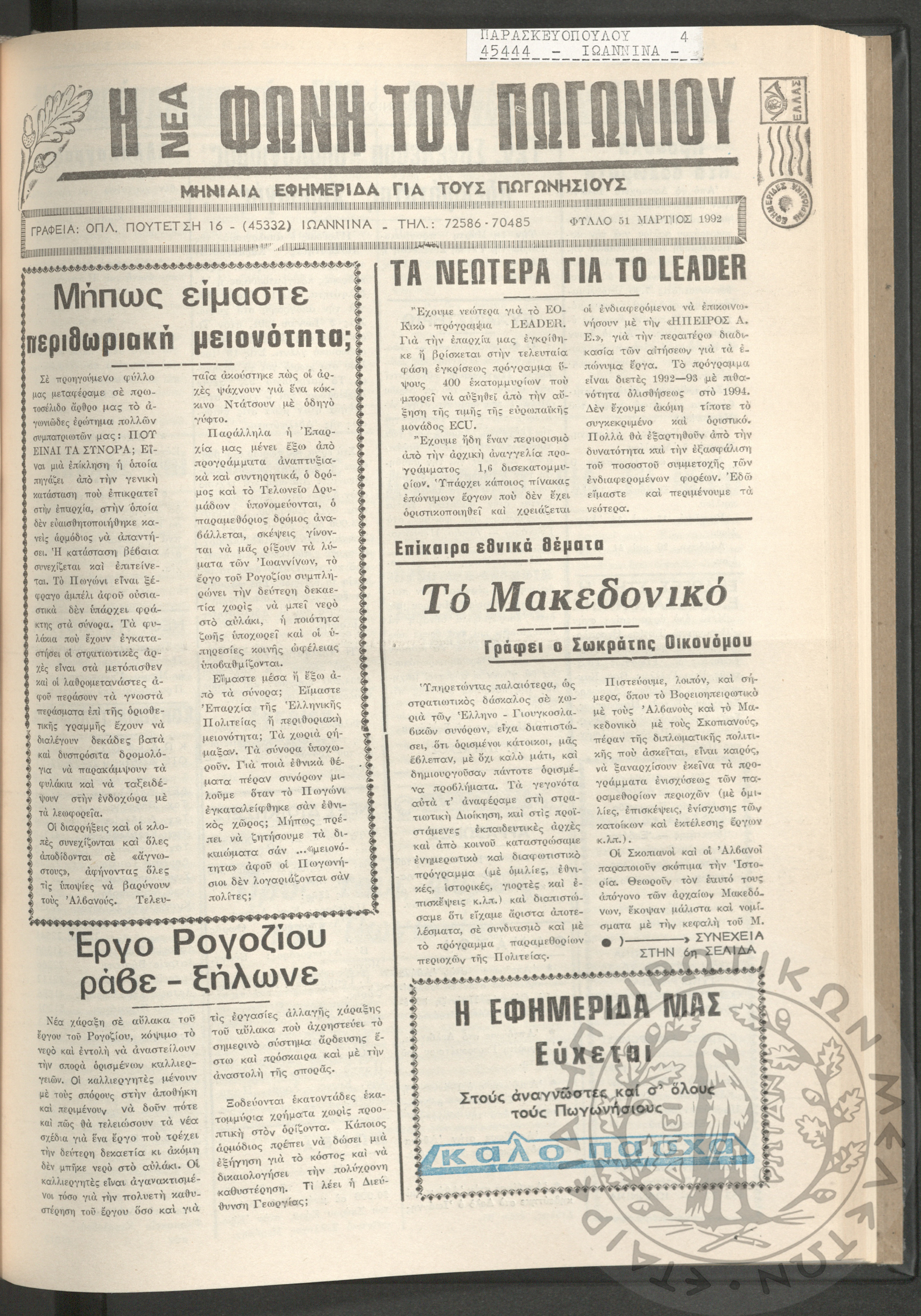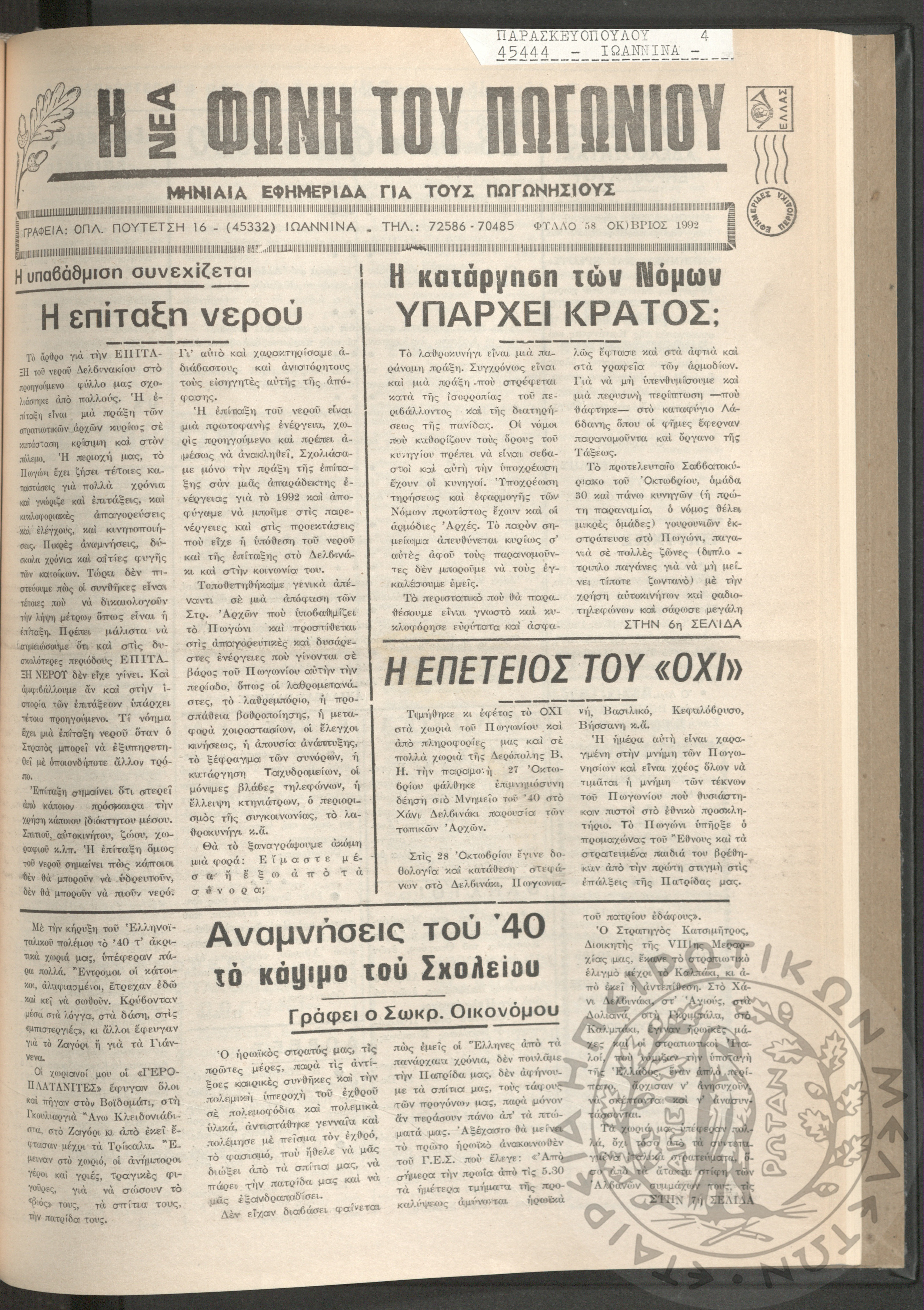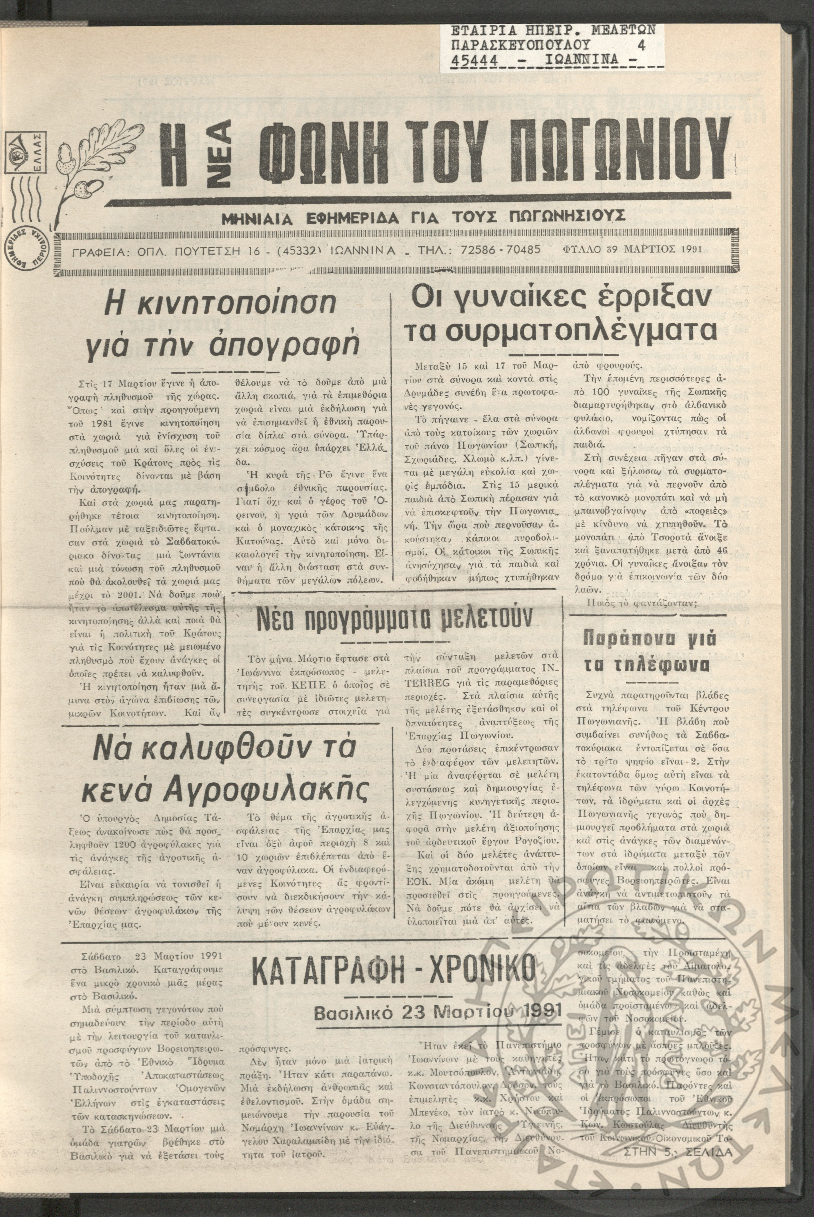 Παλμός της Αετόπετρας: Μηνιαία εφημερίς ενημερώσεως των απανταχού Αετοπετριτών (Δωδώνης Ηπείρου), 1980, φ. 96Έτος 8, φ. 96...
