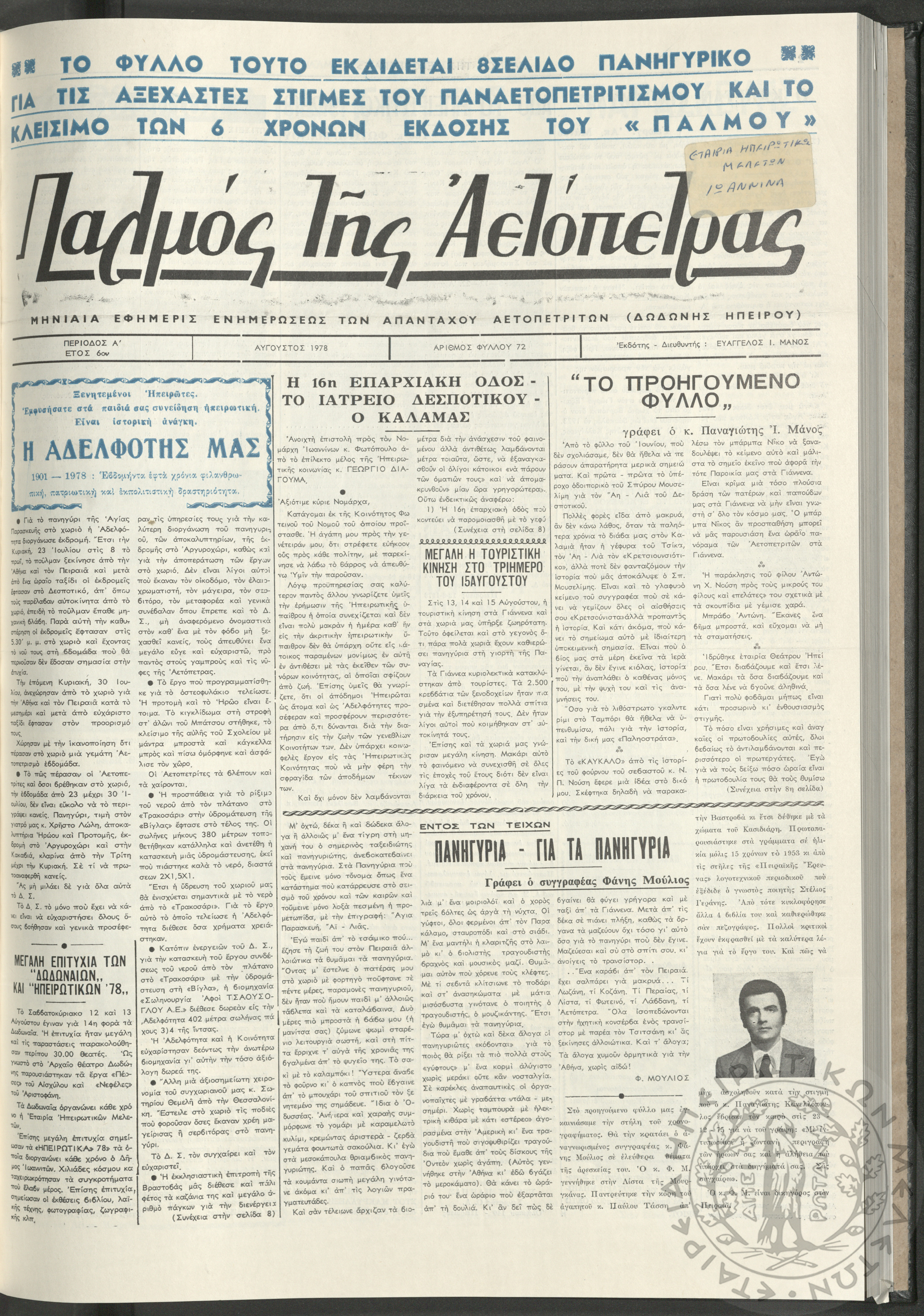 Παλμός της Αετόπετρας: Μηνιαία εφημερίς ενημερώσεως των απανταχού Αετοπετριτών (Δωδώνης Ηπείρου), 1978, φ. 72Έτος 6, φ. 72...