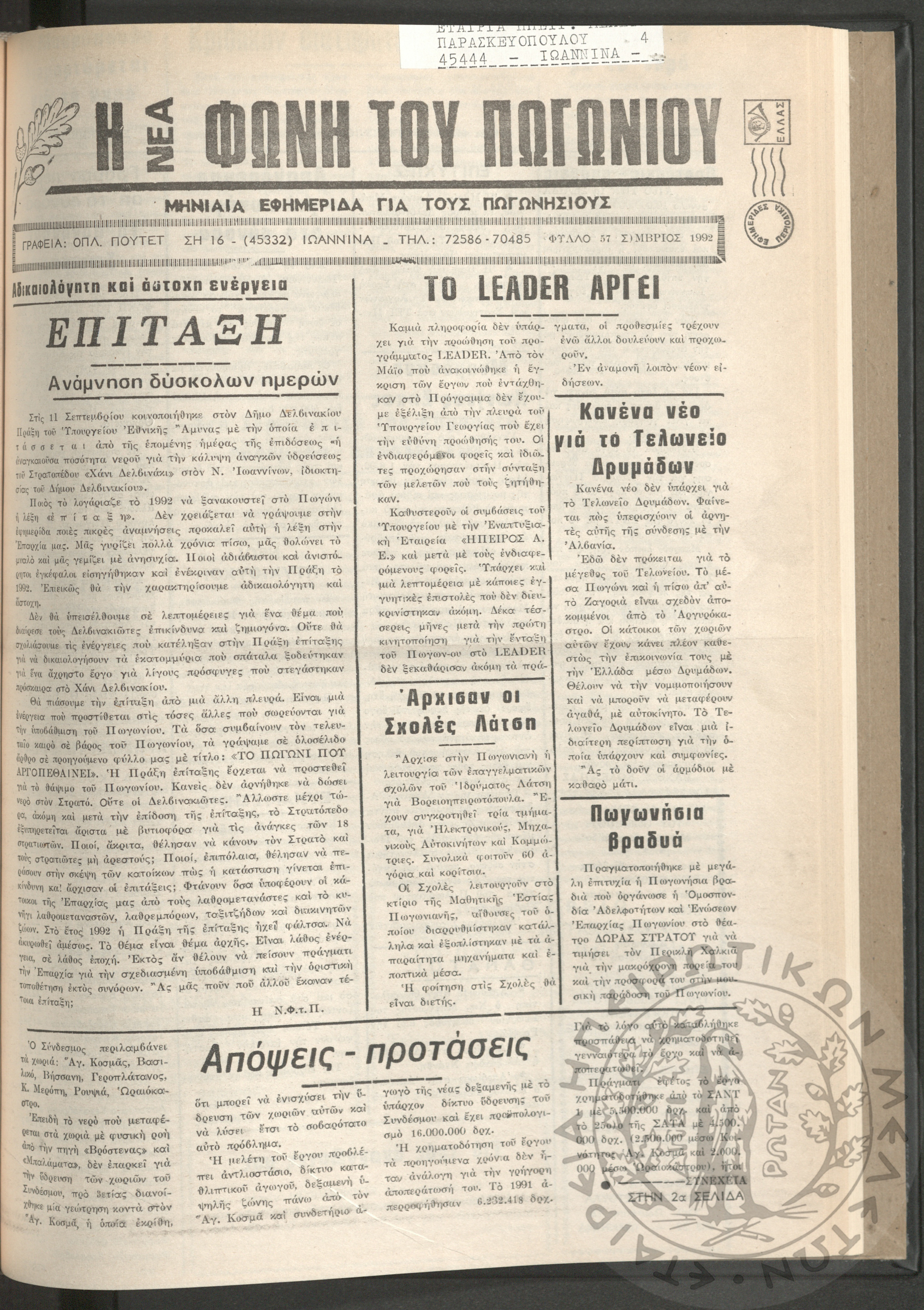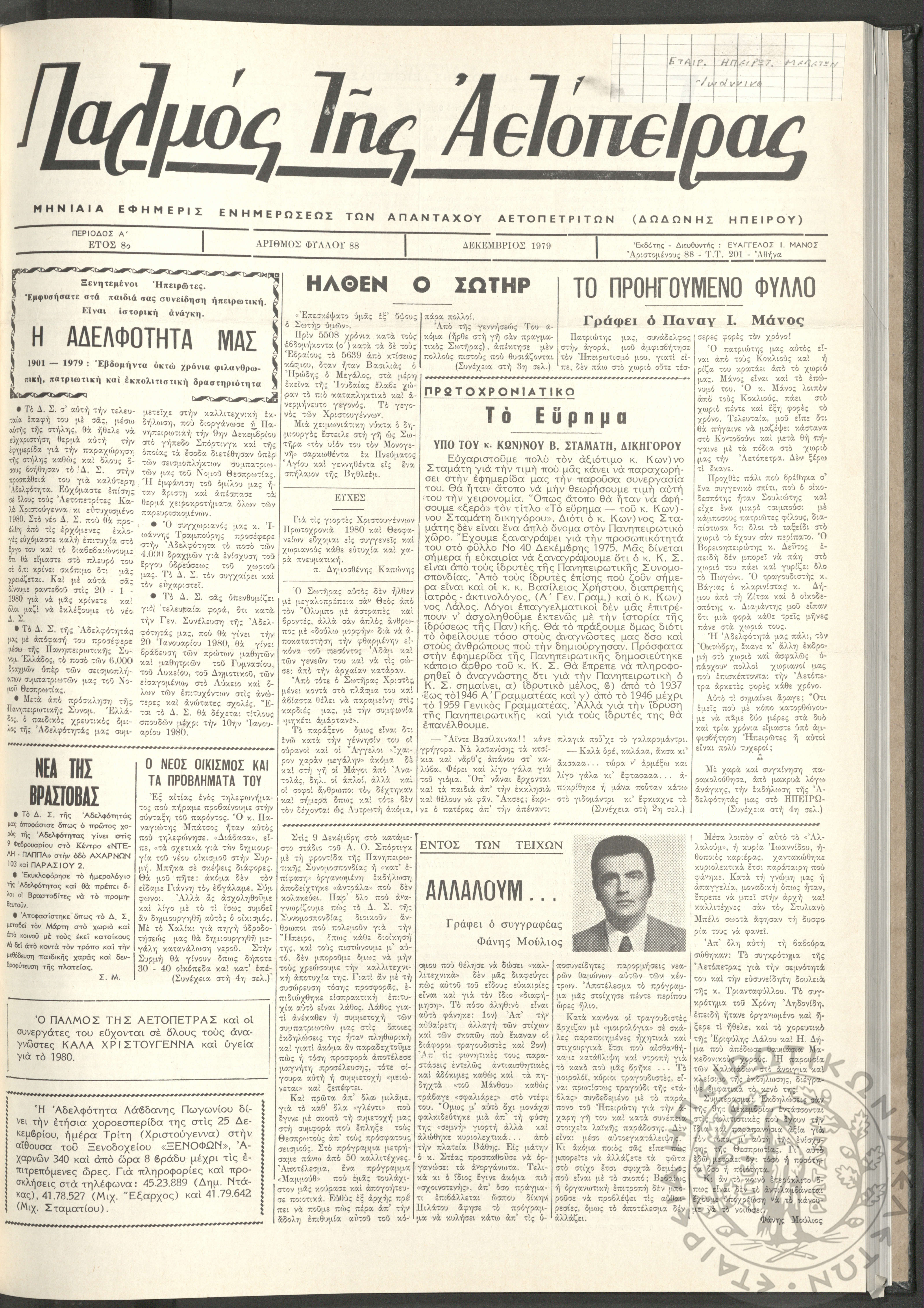Παλμός της Αετόπετρας: Μηνιαία εφημερίς ενημερώσεως των απανταχού Αετοπετριτών (Δωδώνης Ηπείρου), 1979, φ. 88Έτος 8, φ. 88...