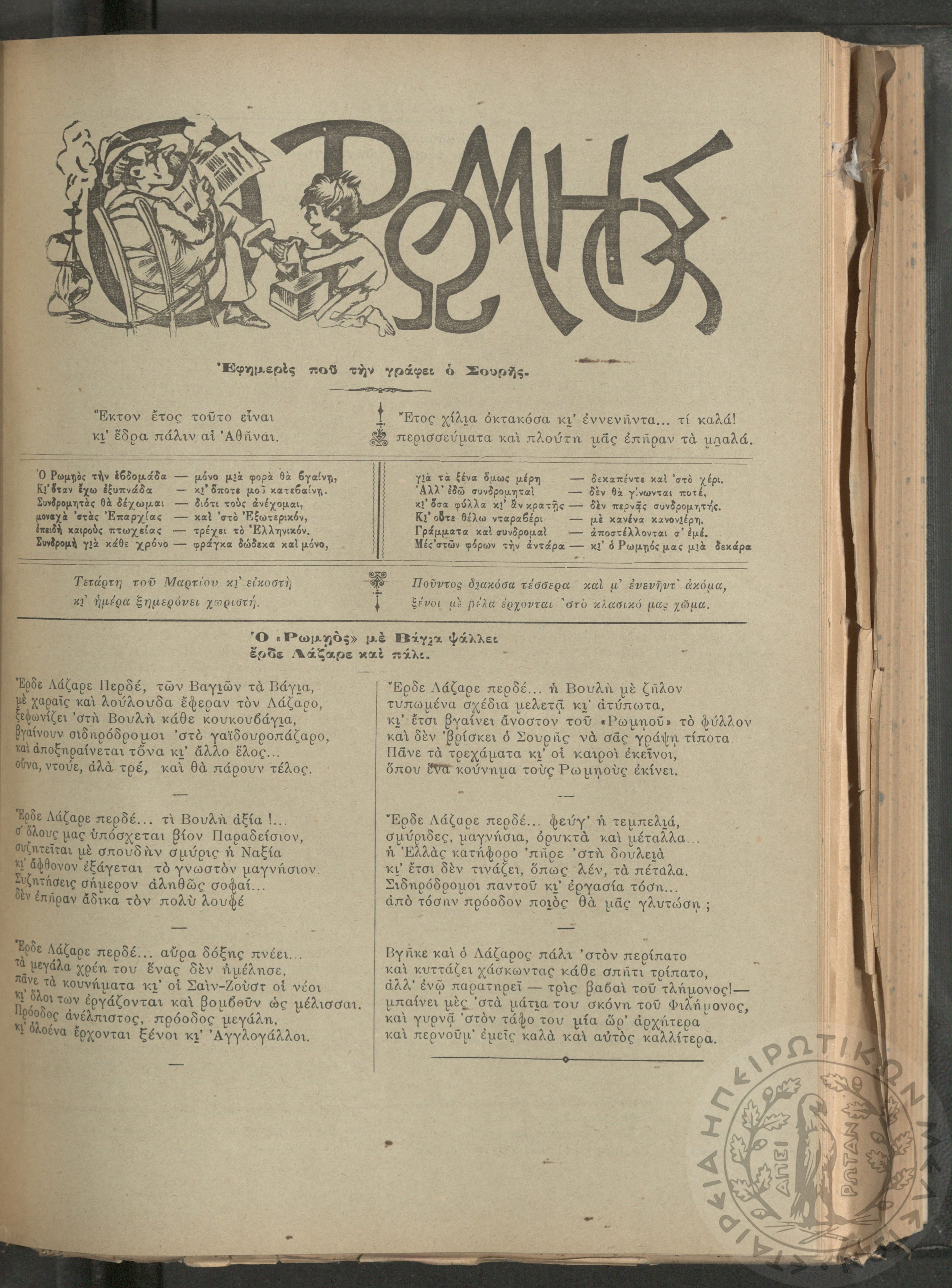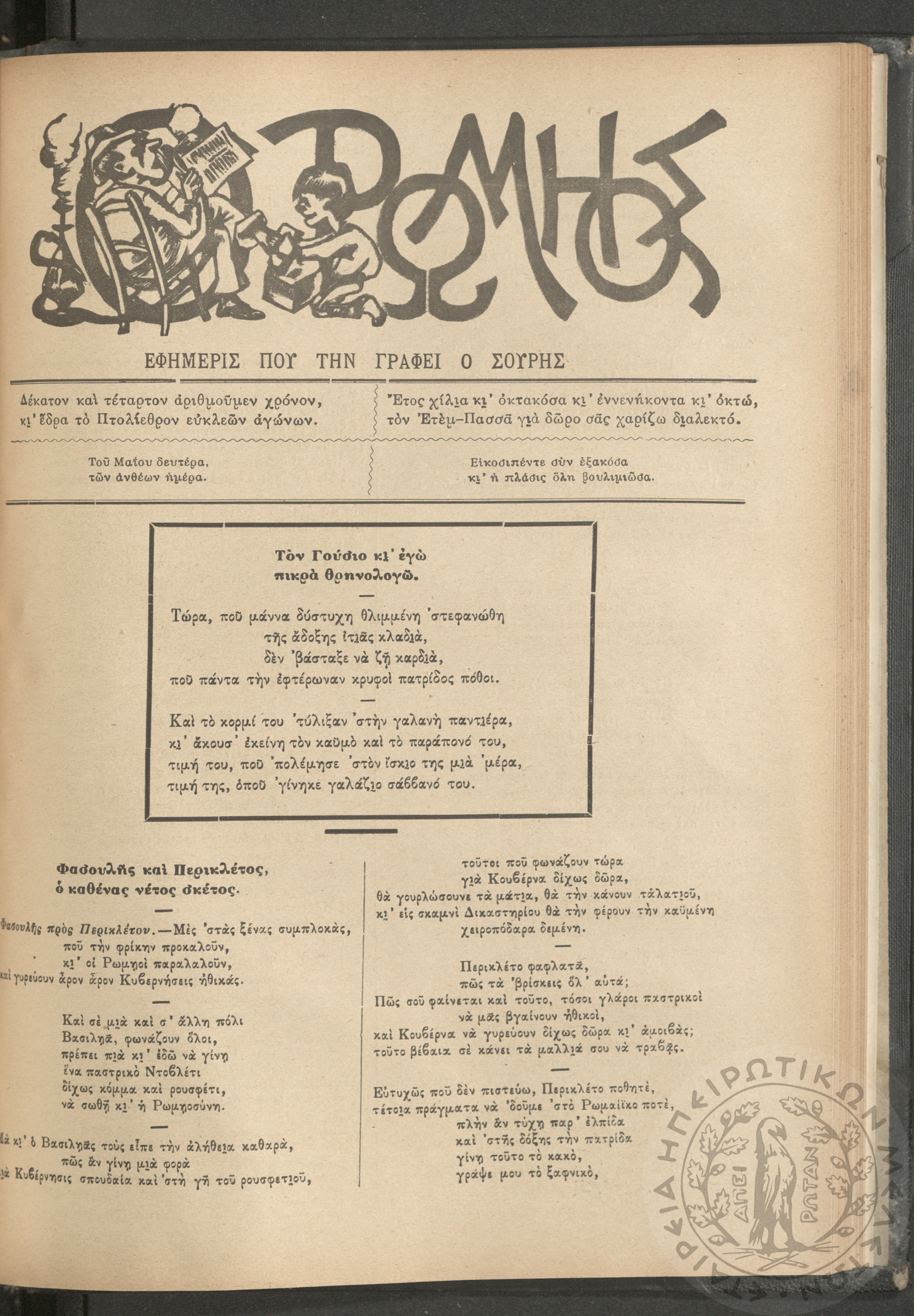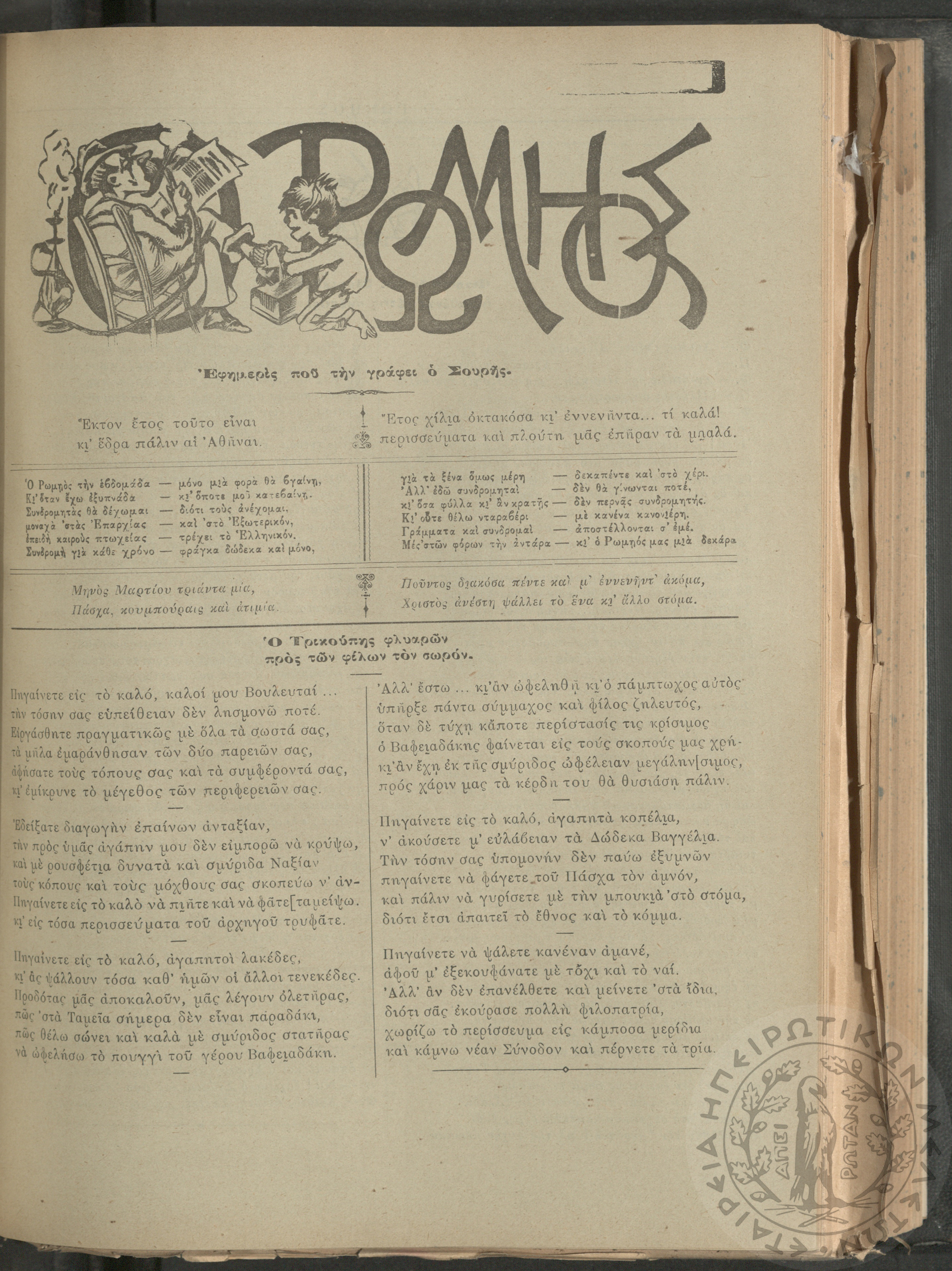 Ο Ρωμηός: Εφημερίς που την γράφει ο Σουρής, 1890, φ. 296