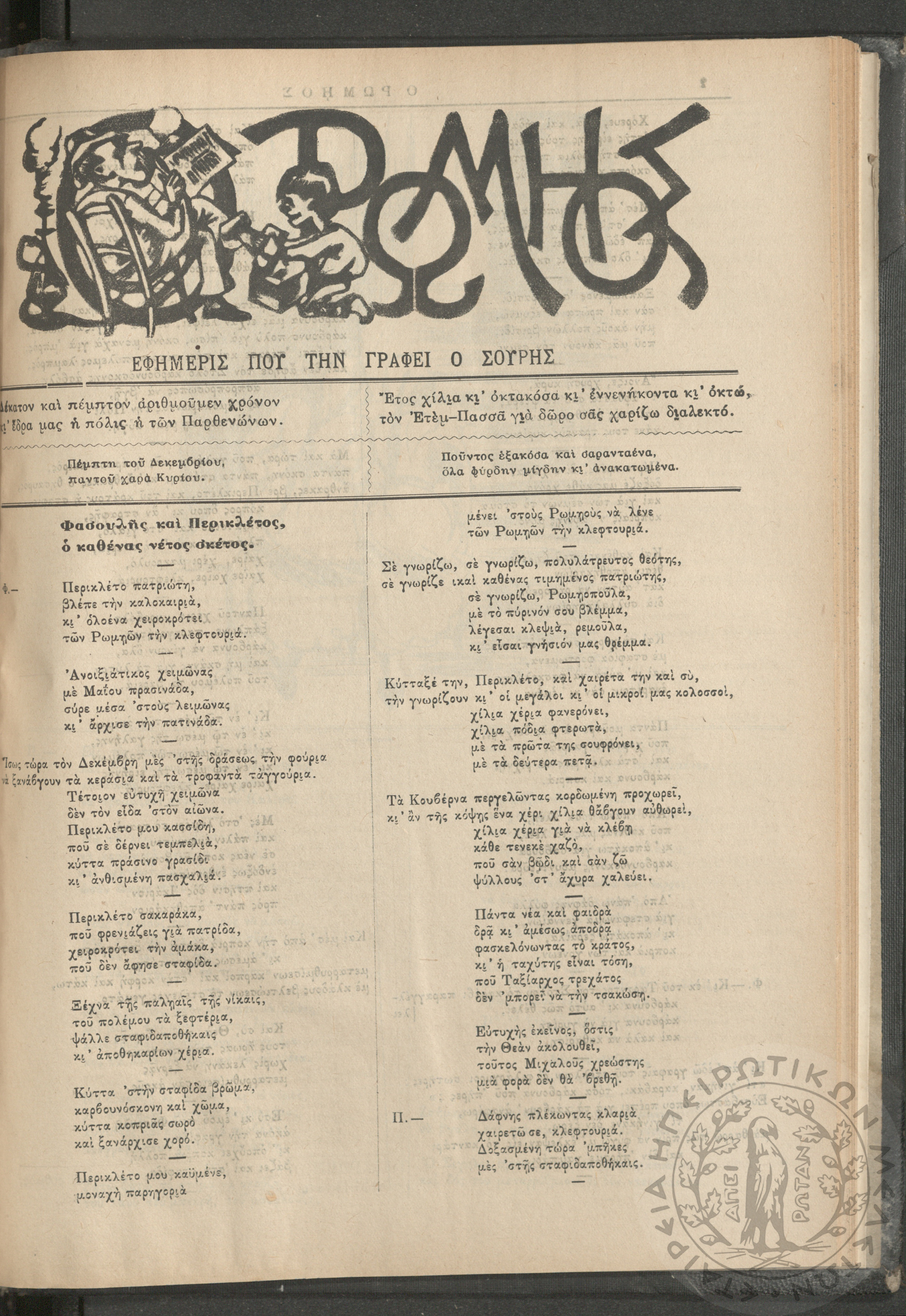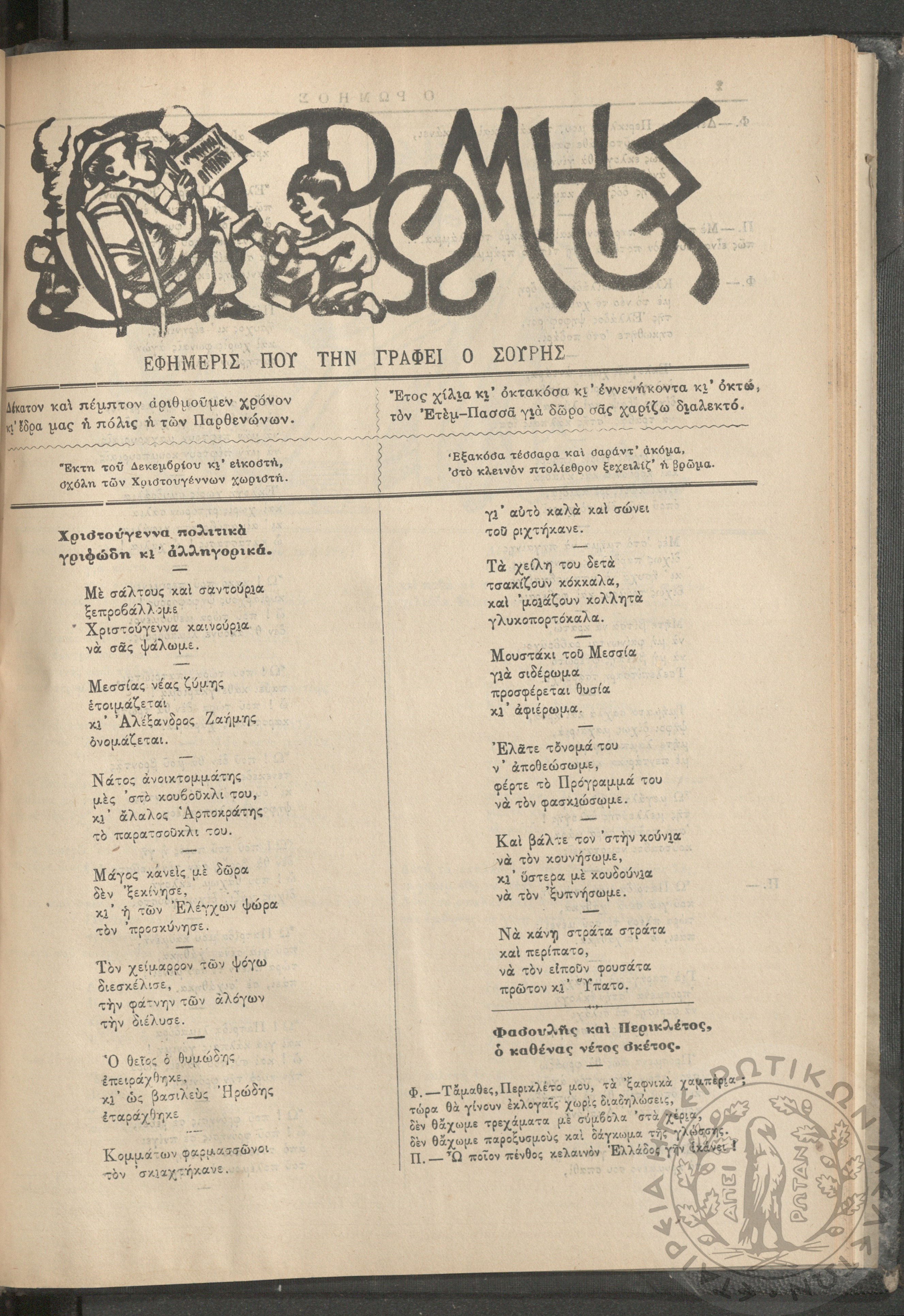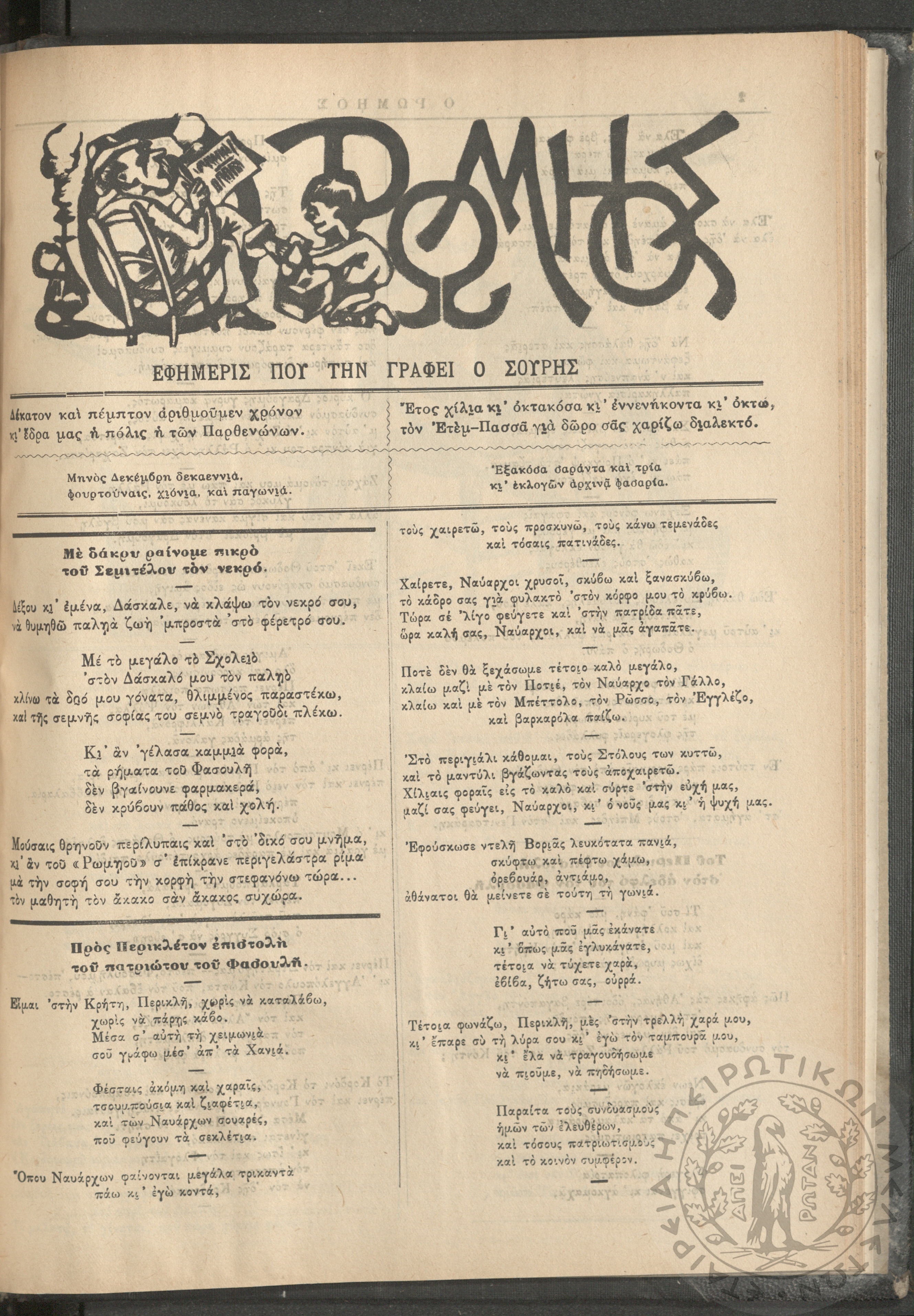 Ο Ρωμηός: Εφημερίς που την γράφει ο Σουρής, 1890, φ. 296